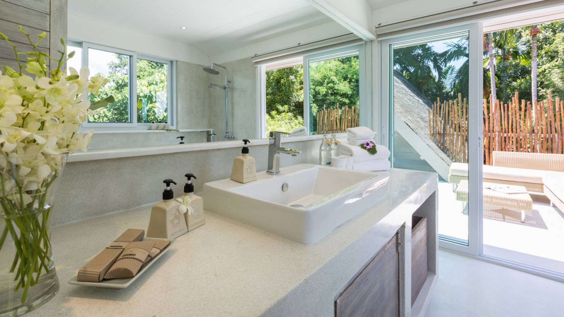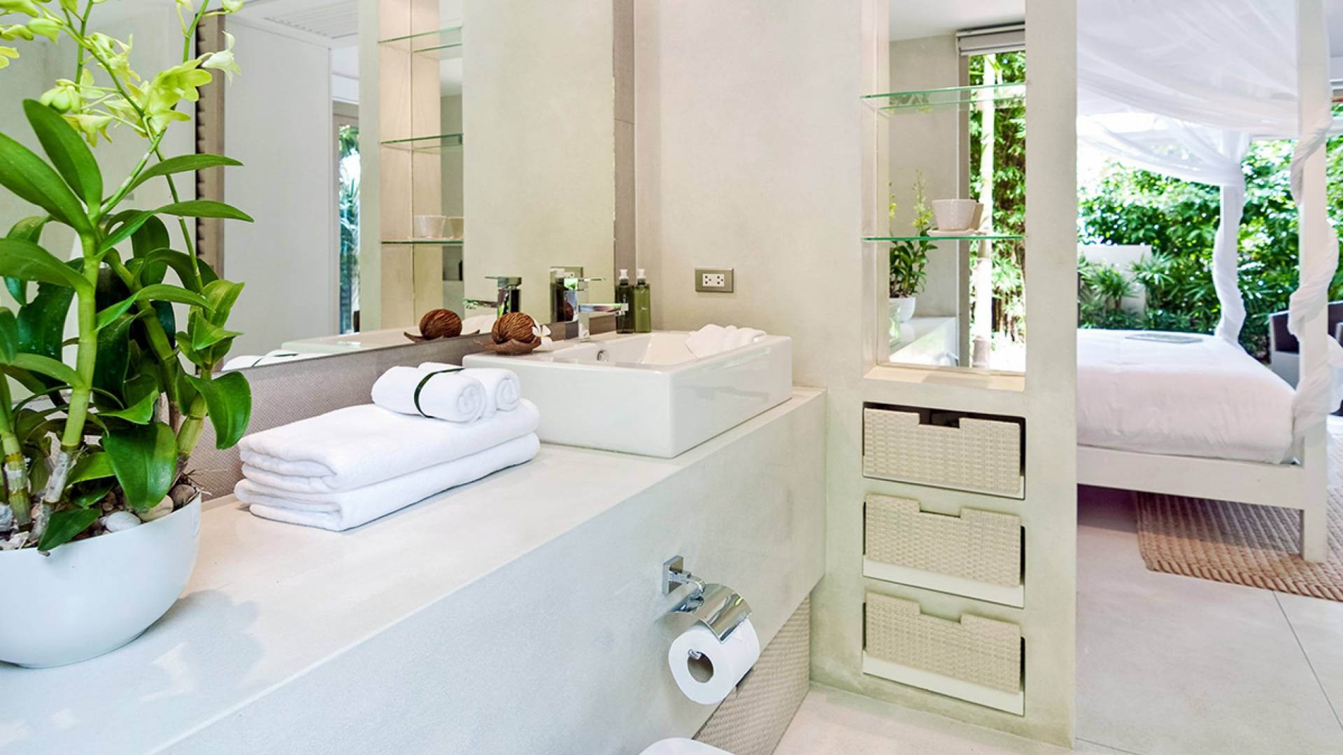Η διάταξη του The Headland Villa 4 το κάνει να ξεχωρίζει. Η υπερυψωμένη θέση προσφέρει εξαιρετική θέα και η κεντρική πισίνα είναι μοναδική στο κτήμα. Αλλά σε αυτή τη βίλα, είναι η προσοχή στη λεπτομέρεια και οι τελευταίες πινελιές όπου πραγματικά υπερέχει. Ο καθρέφτης και η καμάρα δίπλα στην πισίνα και η εξειδικευμένα επιλεγμένη εσωτερική και εξωτερική διακόσμηση προσθέτουν στη συνολική φυσική και σπιτική αίσθηση του ακινήτου.