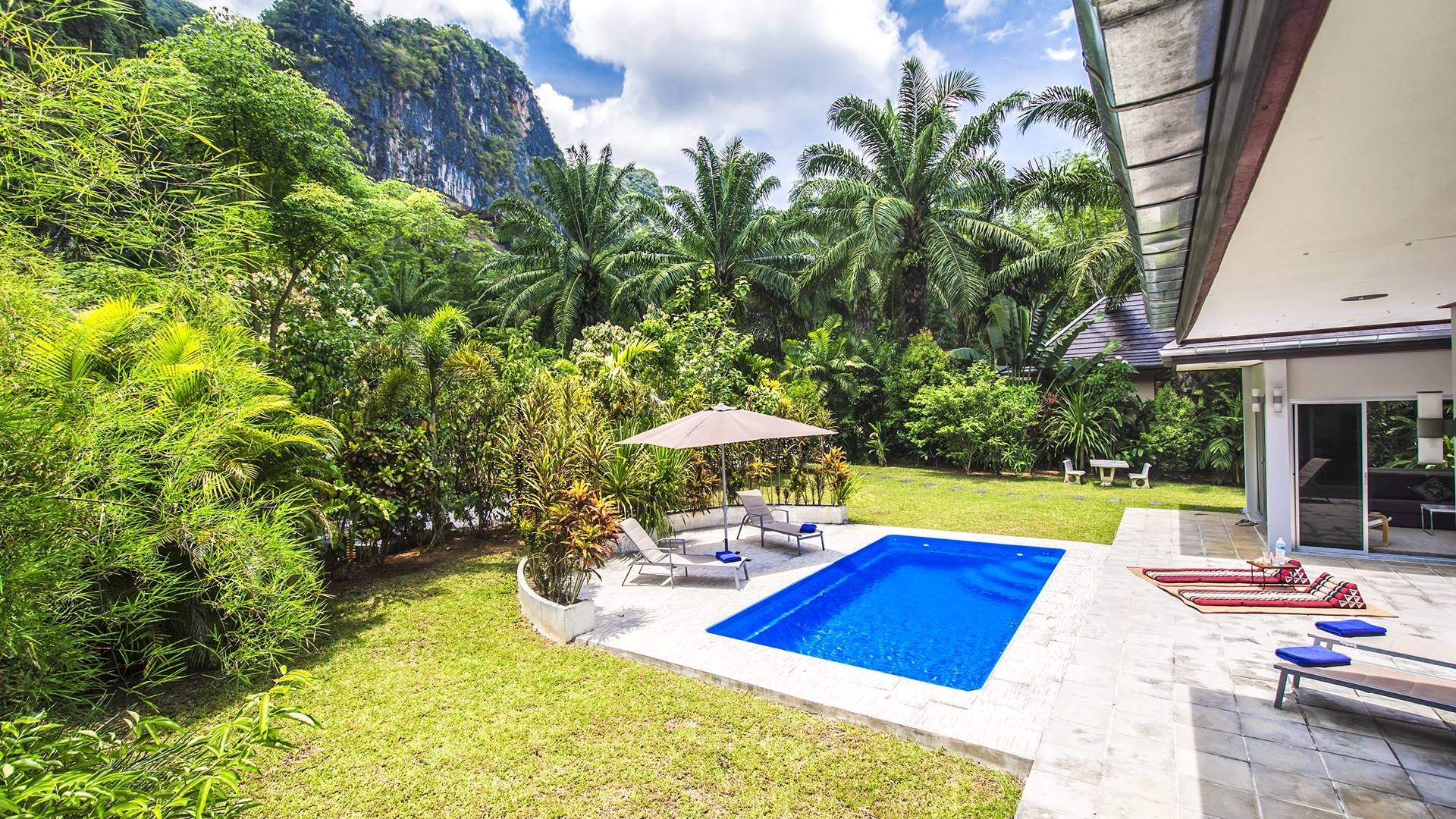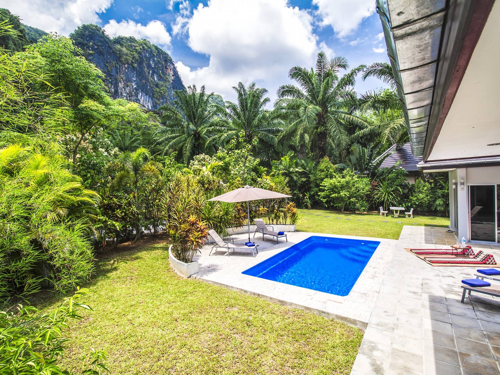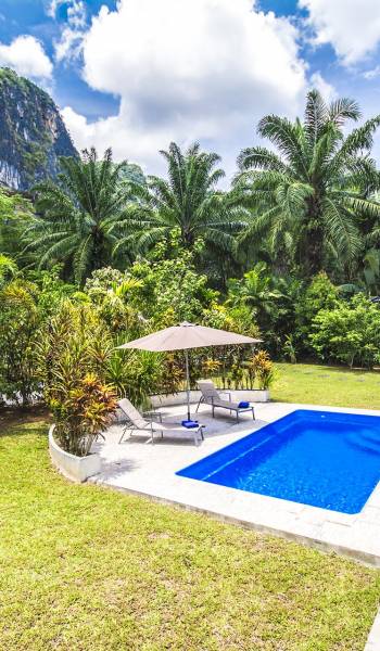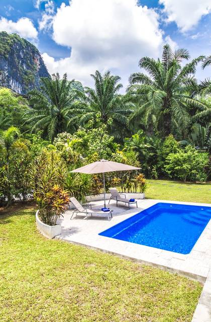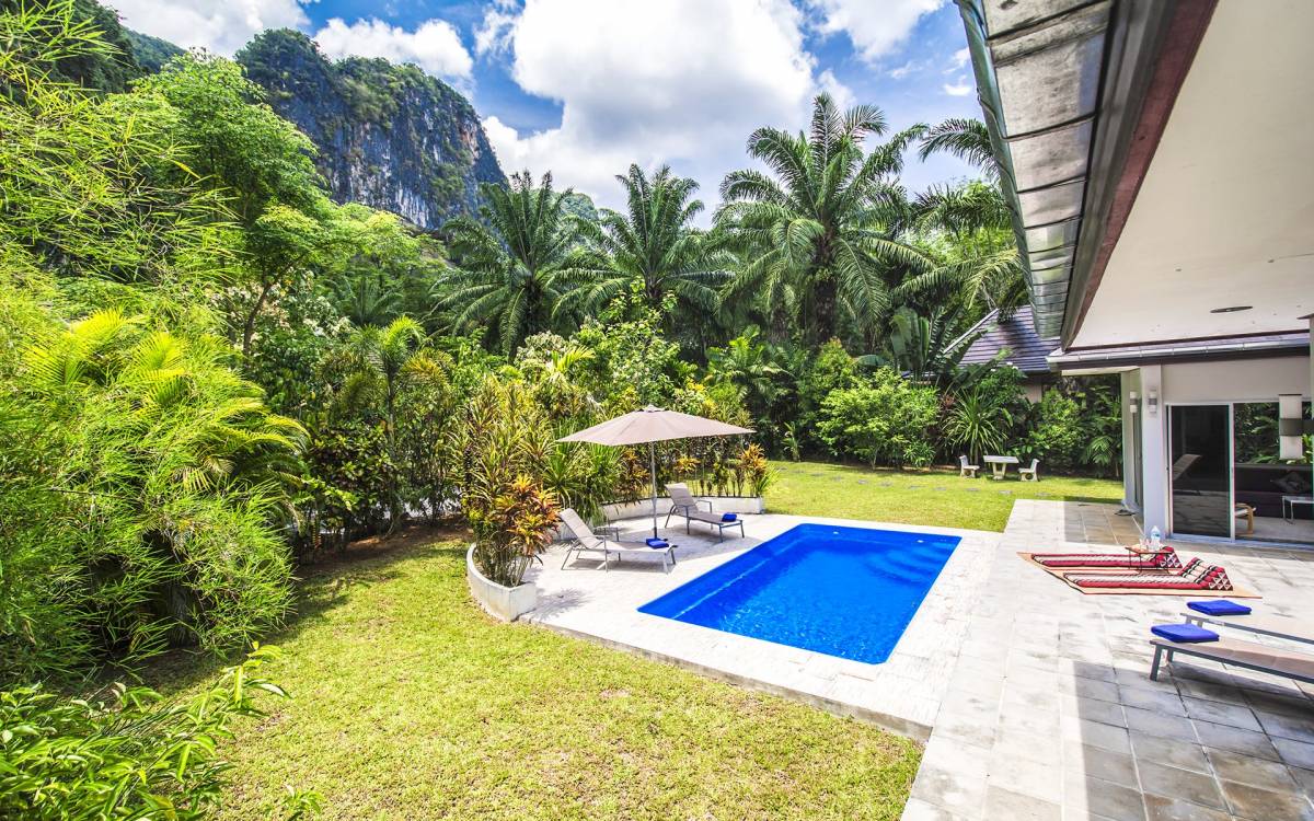 Το Eden Mountain View Villa Krabi είναι μια μοντέρνα βίλα 3 υπνοδωματίων μέσα σε τροπικούς κήπους που περιβάλλεται από τη φύση. Φιλοξενεί άνετα 6 ενήλικες επισκέπτες με εγκαταστάσεις για βρέφη και παιδιά.