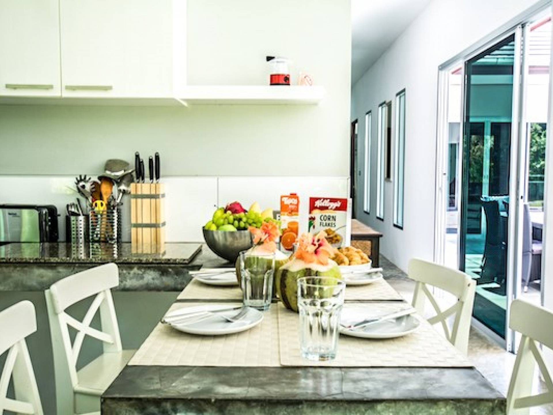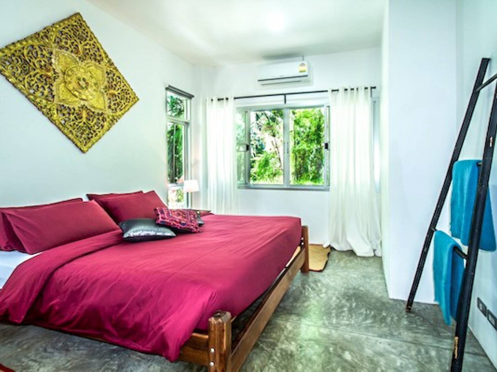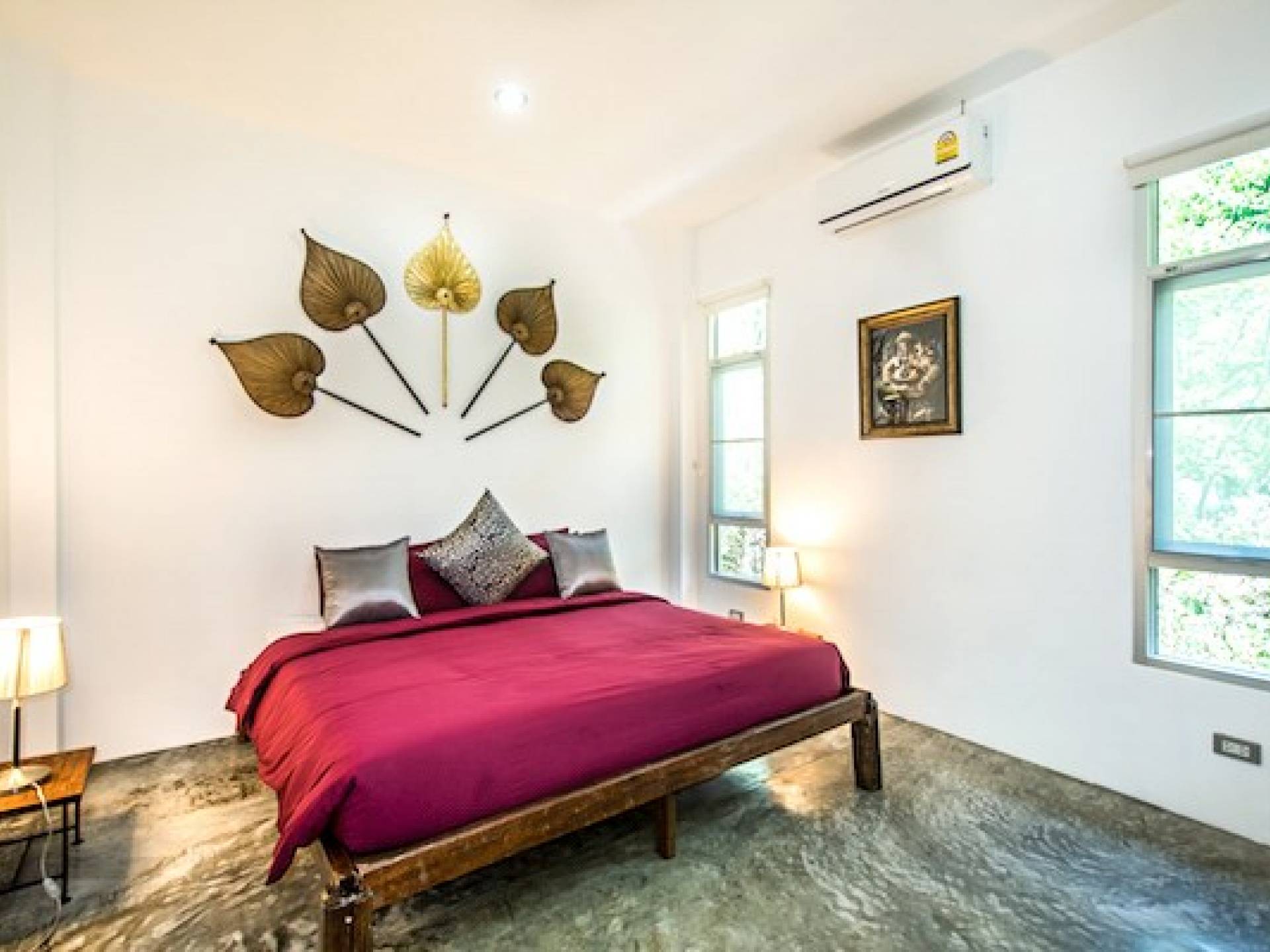 Το κατάλυμα περιλαμβάνει πλήρως εξοπλισμένη κουζίνα, τραπεζαρία και χώρους σαλονιού με όλα τα χαρακτηριστικά και τις ανέσεις που χρειάζεστε για διακοπές με πλήρη προετοιμασία γευμάτων. Η Βίλα με θέα στο Βουνό έχει 3 υπνοδωμάτια, το καθένα με κρεβάτια king size. Υπάρχουν δύο μοντέρνα μπάνια δυτικού στιλ με ντους ζεστού νερού. Σχεδιασμένο για προστασία της ιδιωτικής ζωής με μια ευρύχωρη και ευάερη αίσθηση. το κτίριο καλύπτει 270 τ.μ. και ο ιδιωτικός κήπος είναι συνολικά 650 τ.μ.
