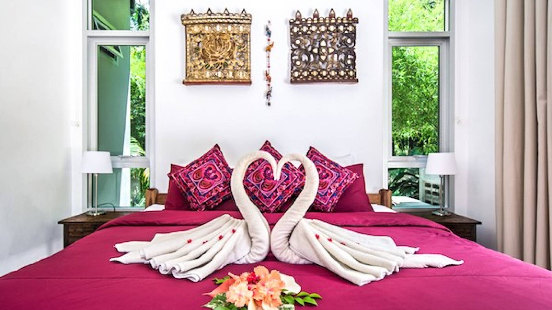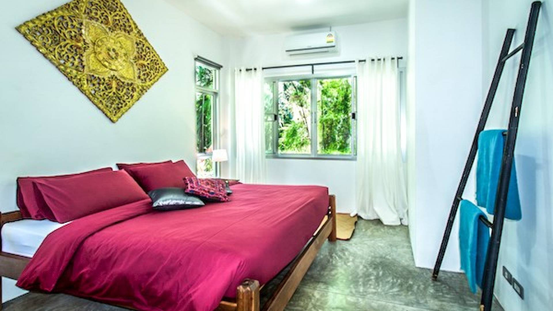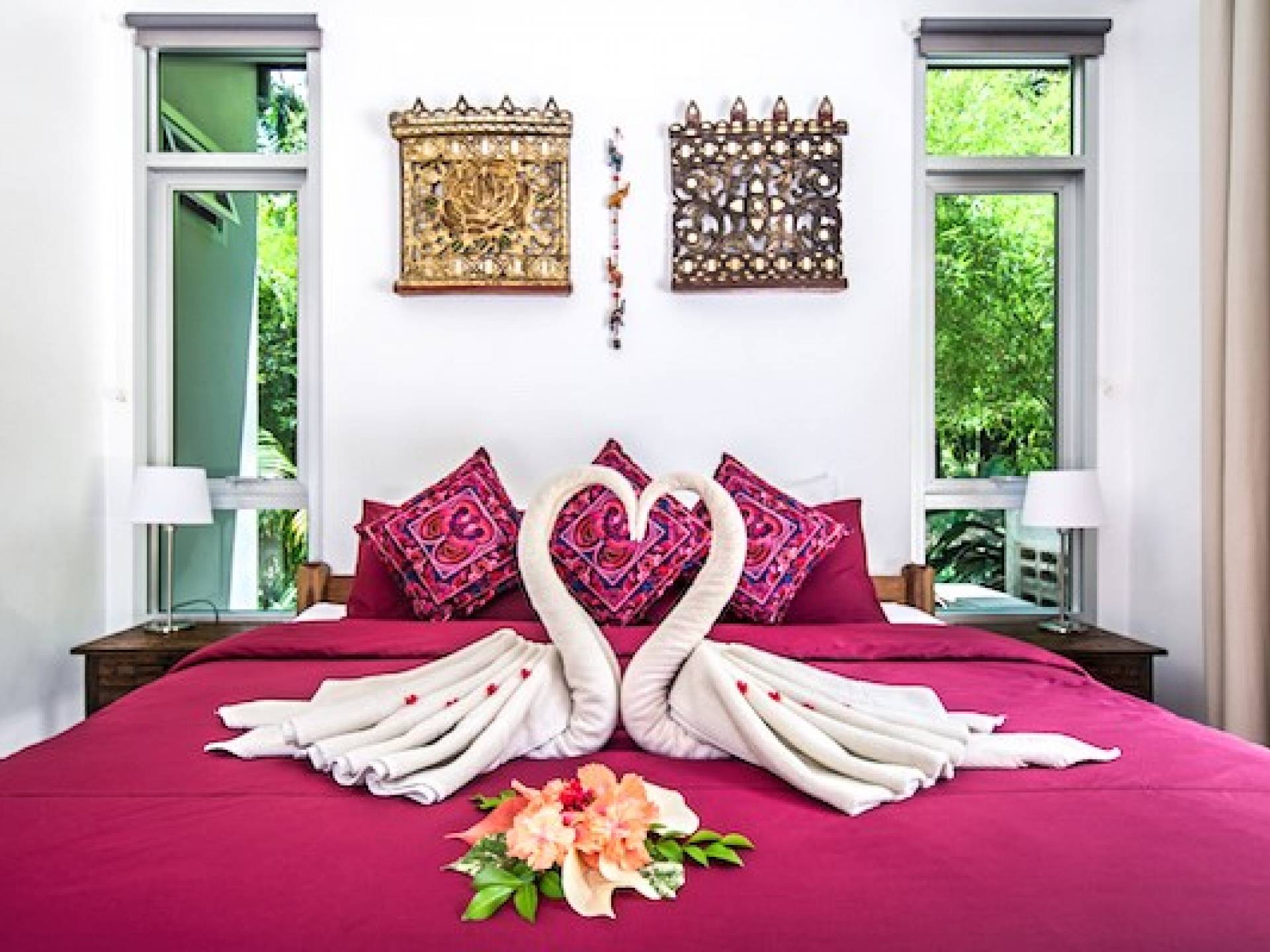 Το κατάλυμα περιλαμβάνει πλήρως εξοπλισμένη κουζίνα, τραπεζαρία και χώρους σαλονιού με όλα τα χαρακτηριστικά και τις ανέσεις που χρειάζεστε για διακοπές με πλήρη προετοιμασία γευμάτων. Η Βίλα με θέα στο Βουνό έχει 3 υπνοδωμάτια, το καθένα με κρεβάτια king size. Υπάρχουν δύο μοντέρνα μπάνια δυτικού στιλ με ντους ζεστού νερού. Σχεδιασμένο για προστασία της ιδιωτικής ζωής με μια ευρύχωρη και ευάερη αίσθηση. το κτίριο καλύπτει 270 τ.μ. και ο ιδιωτικός κήπος είναι συνολικά 650 τ.μ.
