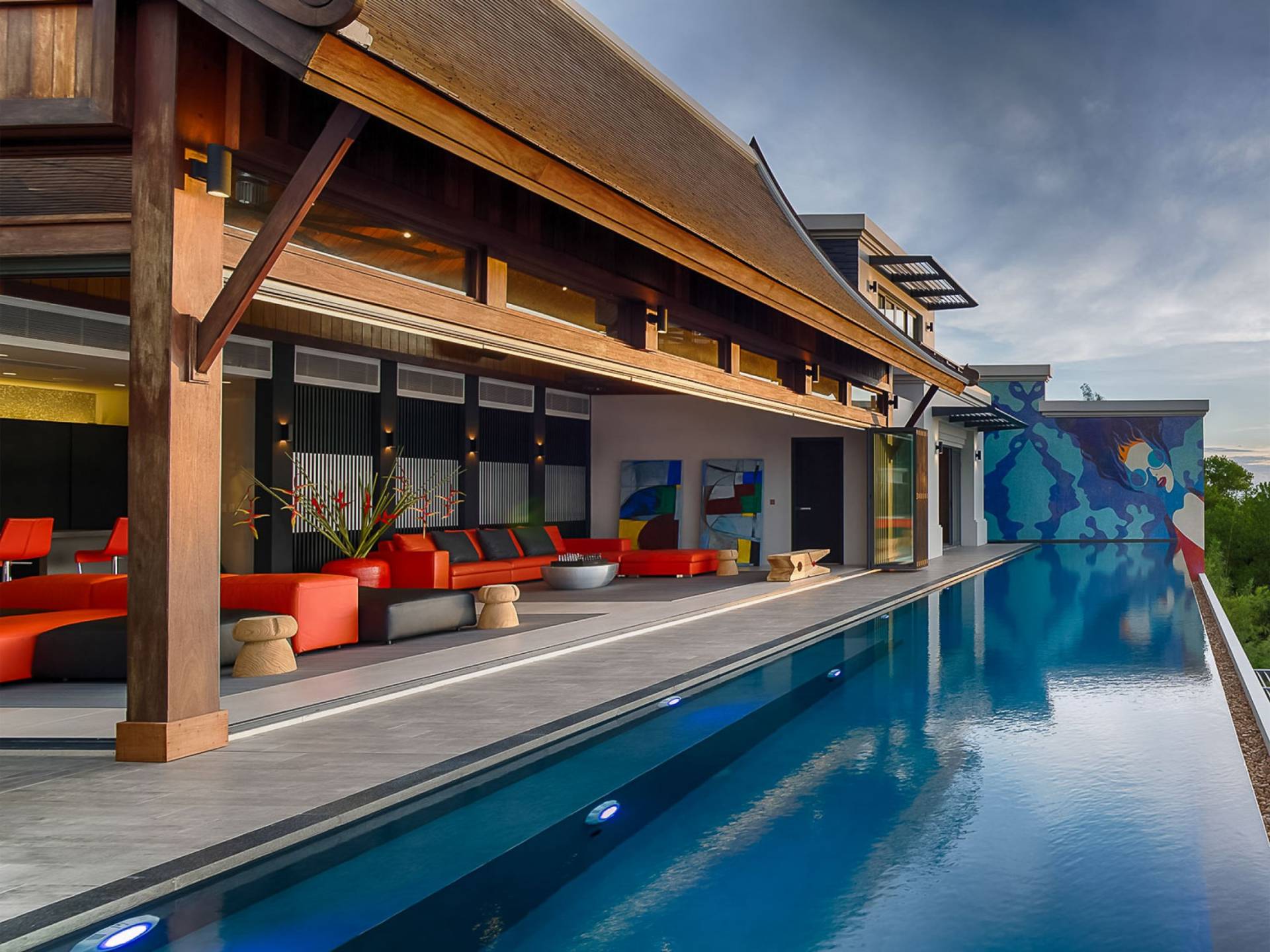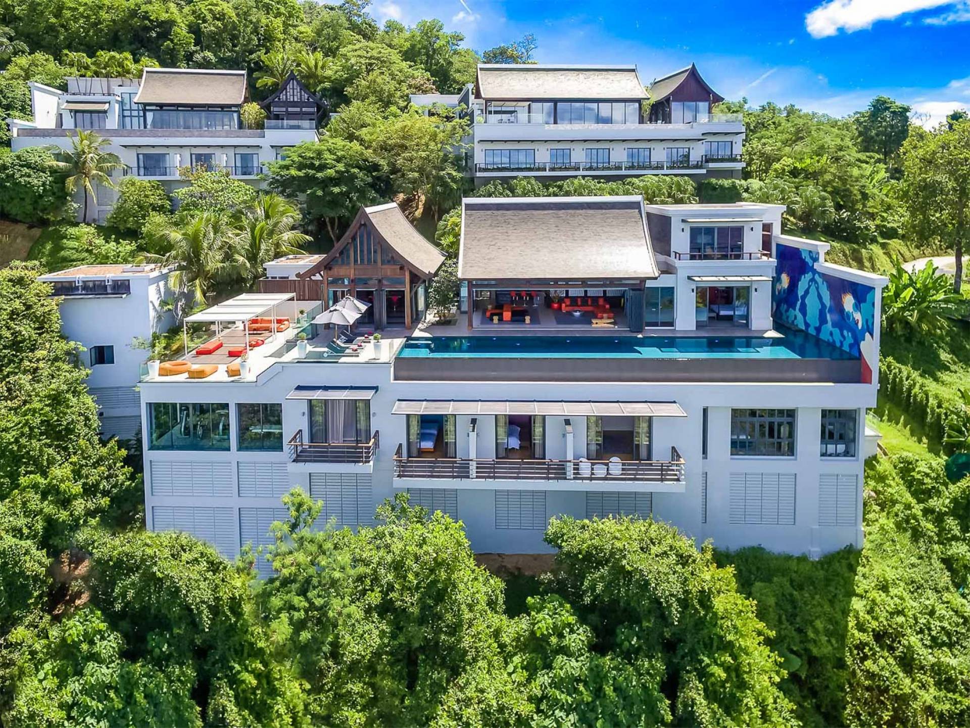 Η εκπληκτική θέα στον ωκεανό μέχρι το ηλιοβασίλεμα είναι το χαρακτηριστικό γνώρισμα της υπερπολυτελούς Villa M στο Malaiwana Villas Phuket. Η Villa M διαθέτει πέντε υπνοδωμάτια, δύο από τα οποία είναι σουίτες. ένα τεράστιο σαλόνι με θέα στην εξίσου τεράστια πισίνα υπερχείλισης και μια μεγάλη τραπεζαρία, και οι δύο με γυάλινους τοίχους που ανοίγουν για να προσκαλέσουν δροσερό αεράκι. Το γυμναστήριο και η αίθουσα ψυχαγωγίας, και τα δύο γεμάτα με τον πιο εξελιγμένο εξοπλισμό, διασφαλίζουν ότι όλοι είναι πάντα διασκεδάζει.