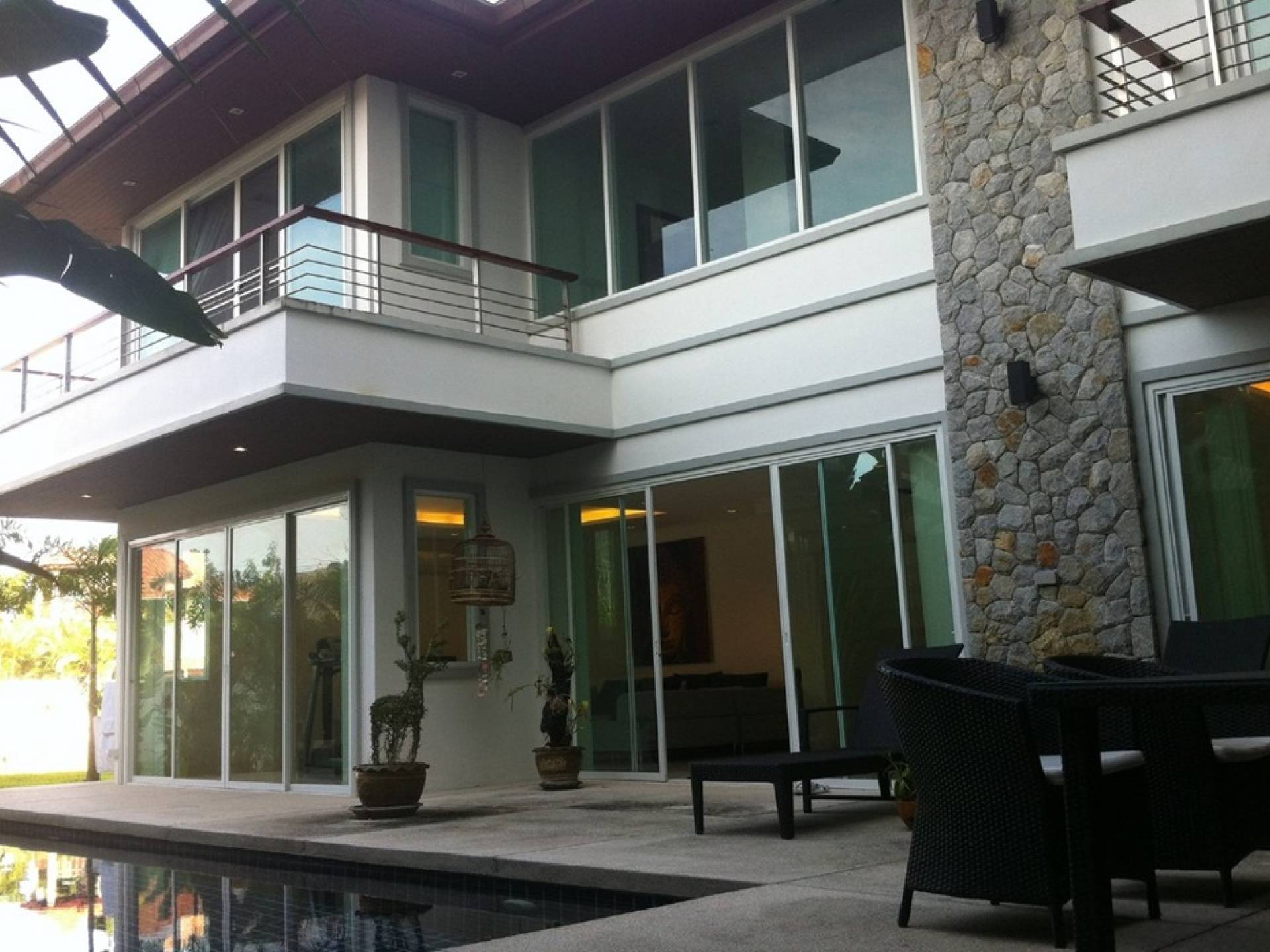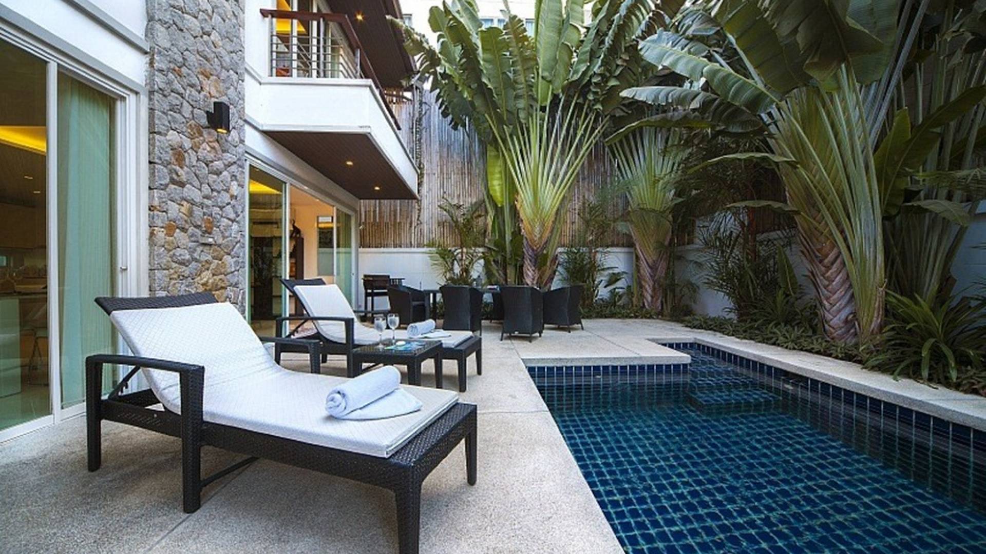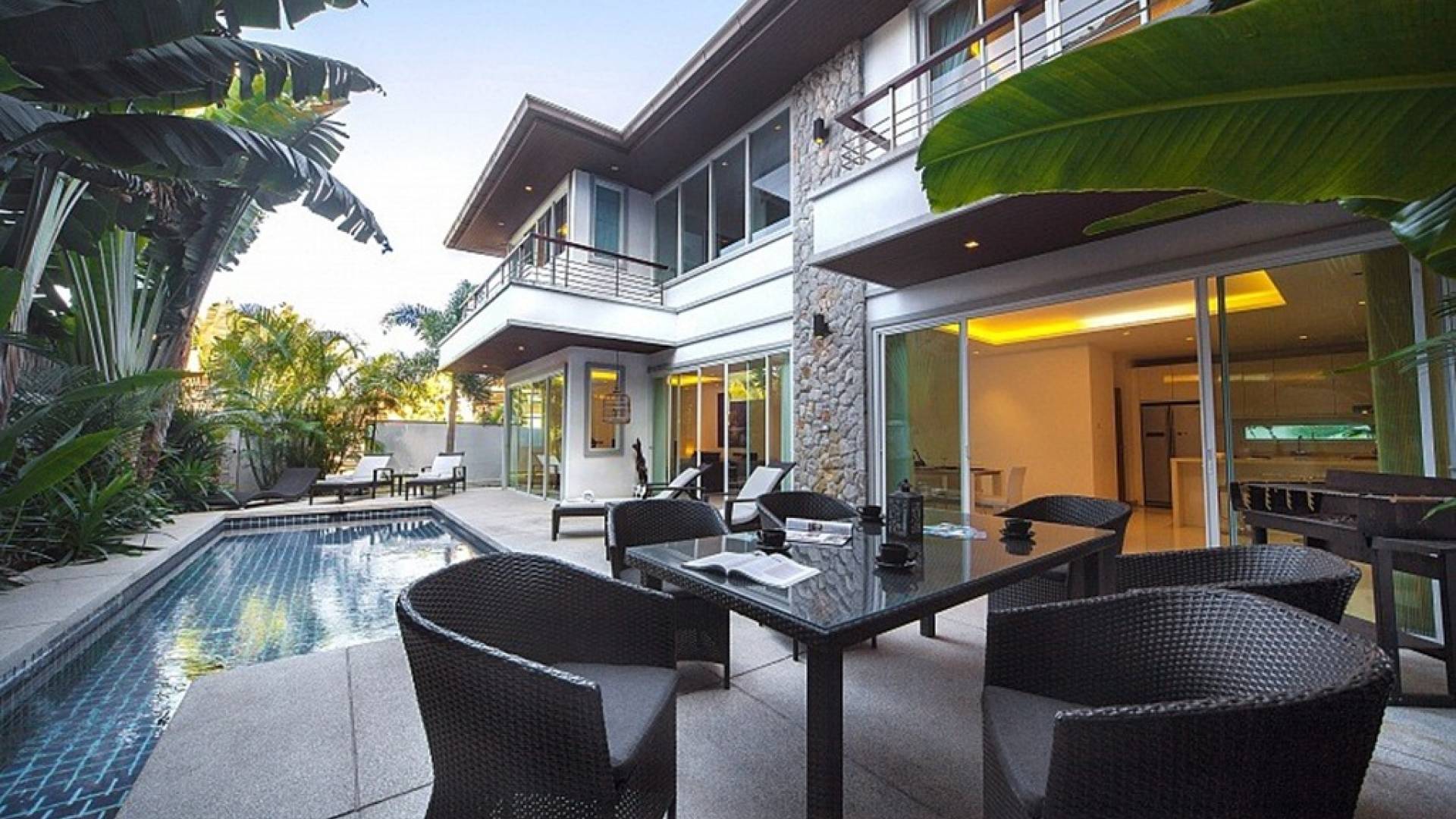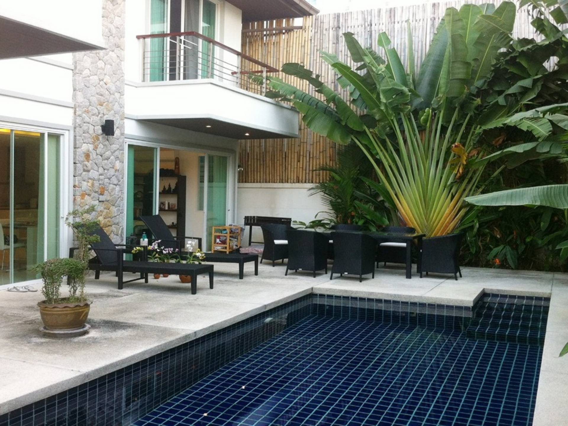 Εξωτερικά στο μπροστινό μέρος της βίλας, υπάρχει μια μεγάλη ηλεκτρική πύλη και μυστικός χώρος στάθμευσης για δύο αυτοκίνητα. Πίσω βρίσκεται ο χώρος της ιδιωτικής πισίνας. Περιβάλλεται από πλούσιο τροπικό φύλλωμα και υπάρχουν βαθιές βεράντες στις τρεις πλευρές της πισίνας που επιτρέπουν άφθονο χώρο για τις ξαπλώστρες και το σετ τραπεζαρίας για έξι άτομα.