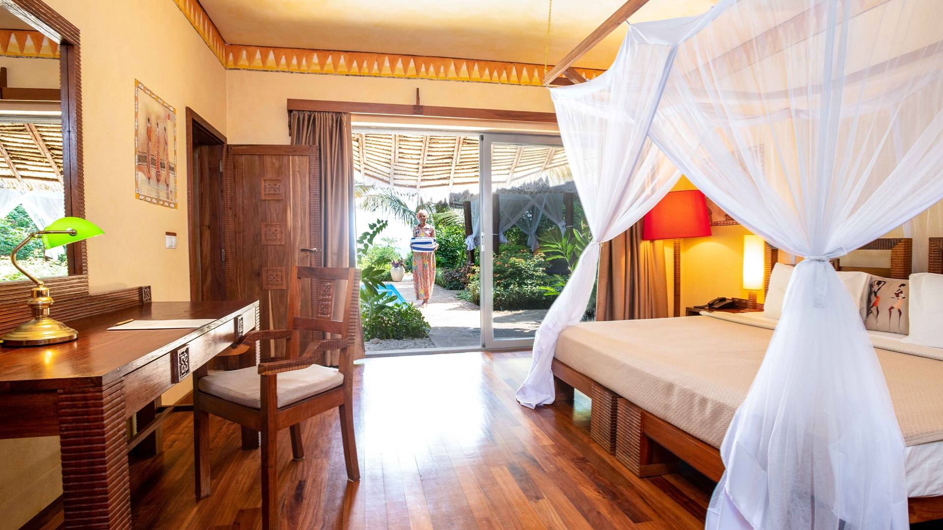 Το Zanzi Resort βρίσκεται στην άκρη του Ινδικού Ωκεανού, 15χλμ. από την ιστορική Stone Town και 30 λεπτά από το αεροδρόμιο. Δεκατρείς ευρύχωρες, καλλιτεχνικά σχεδιασμένες βίλες και μπανγκαλόου προσφέρουν ένα οικείο περιβάλλον με αίθρια, μερικά με ιδιωτικές πισίνες. Το θέρετρο, που εκτείνεται σε έξι εκτάρια καταπράσινων τροπικών κήπων, διαθέτει ένα εξαιρετικό εσωτερικό εστιατόριο και χώρο περιποίησης, που προσφέρει μασάζ δίπλα στον ωκεανό και την ιαπωνική θεραπεία με ζεστές πέτρες, gambanyoku. Η τοπική κουζίνα προετοιμάζεται για έναν διεθνή ουρανίσκο με φρέσκα θαλασσινά, βιολογικά λαχανικά και μπαχαρικά από τη δική μας οικολογική φυτεία. Οι επισκέπτες μπορούν να δειπνήσουν στο εστιατόριο, στην ιδιωτικότητα της βίλας ή του μπανγκαλόου τους ή στην παραλία. Ένας ακόλουθος σχέσεων με τους επισκέπτες είναι διαθέσιμος για να σας βοηθήσει να προγραμματίσετε ημερήσιες εκδρομές και εκδρομές.