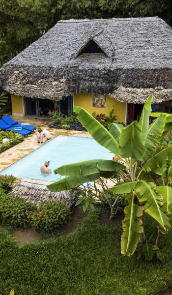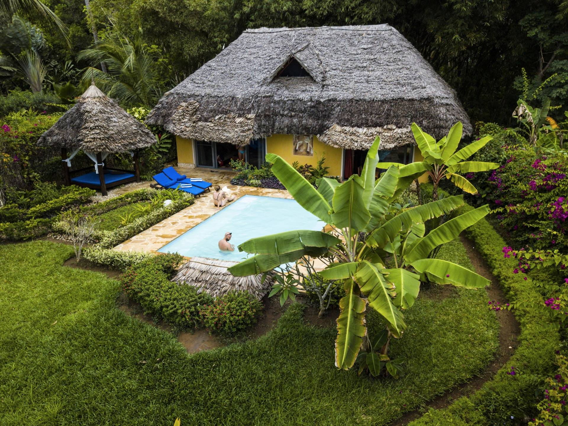 Το Zanzi Resort βρίσκεται στην άκρη του Ινδικού Ωκεανού, 15 χλμ. από την ιστορική Πέτρινη Πόλη και 30 λεπτά από το αεροδρόμιο. Δεκατρείς ευρύχωρες, καλλιτεχνικά σχεδιασμένες βίλες και μπανγκαλόου προσφέρουν ένα οικείο περιβάλλον με αίθρια, μερικά με ιδιωτικές πισίνες. Το θέρετρο, που εκτείνεται σε έξι εκτάρια βελούδινων τροπικών κήπων, διαθέτει ένα εξαιρετικό εστιατόριο και χώρο θεραπείας, προσφέροντας μασάζ ωκεανών και ιαπωνική ιαματική θεραπεία με ζεστές πέτρες, gambanyoku. Η τοπική κουζίνα προετοιμάζεται για έναν διεθνή ουρανίσκο με φρέσκα θαλασσινά, βιολογικά λαχανικά και μπαχαρικά από τη δική μας οικολογική φυτεία. Οι επισκέπτες μπορούν να δειπνήσουν στο εστιατόριο, στην ιδιωτικότητα της βίλας ή του μπανγκαλόου τους, ή στην παραλία. Ένας επισυνάπτης σχέσεων επισκεπτών είναι διαθέσιμος για να βοηθήσει στον προγραμματισμό ημερήσιων εκδρομών και εκδρομών