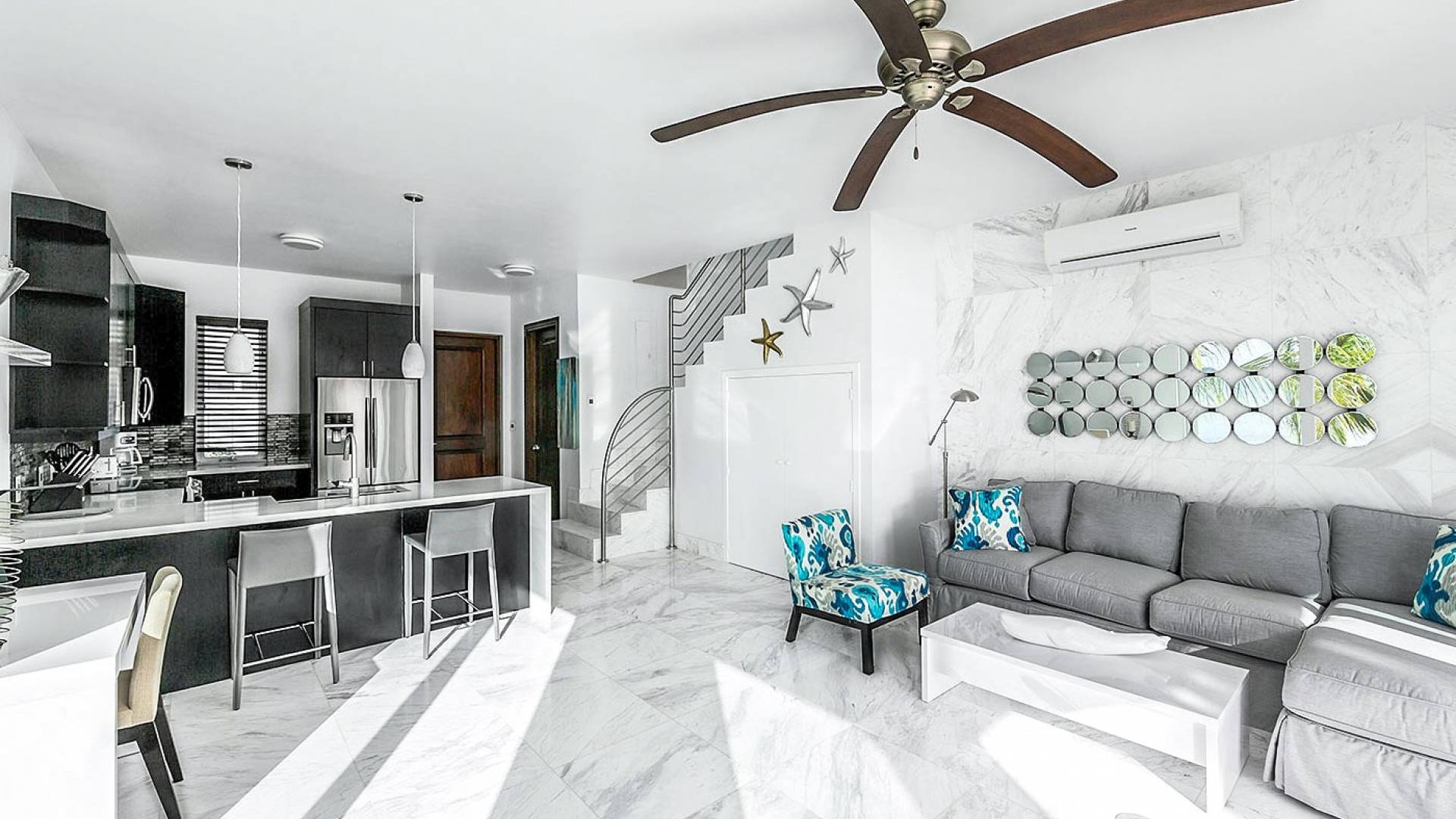Το Villa Positano διαθέτει δύο επίπεδα χώρου διαβίωσης, και οι δύο όροφοι κυριαρχούνται από την εκπληκτική θέα στο τιρκουάζ νερό και τον ουρανό. Το καλλιτεχνικά διακοσμημένο σαλόνι σε επίπεδο παραλίας διαθέτει δάπεδα από μάρμαρο Carrera, μοντέρνα και άνετα έπιπλα και τηλεόραση Google 40 ιντσών με δυνατότητες ιστού. Η όμορφη κουζίνα μαόνι είναι πλήρως επιπλωμένη και συμπληρώνεται από ψησταριά BBQ στο αίθριο. Το δραματικό master υπνοδωμάτιο στον επάνω όροφο διαθέτει κρεβάτι king size, ιδιωτικό μπάνιο, μεγάλη μπανιέρα, ψηλή οροφή με ψηλό ξύλο σε στιλ Μπαλί και έπιπλα κατά παραγγελία. Το μπαλκόνι του δεύτερου ορόφου έξω από την κρεβατοκάμαρα είναι το ιδανικό σημείο για να απολαύσετε τον πρωινό σας καφέ, απολαμβάνοντας την εκπληκτική θέα ή για να χαλαρώσετε στο τέλος της ημέρας με ένα ποτό, απολαμβάνοντας τα καλύτερα ηλιοβασιλέματα στο νησί.