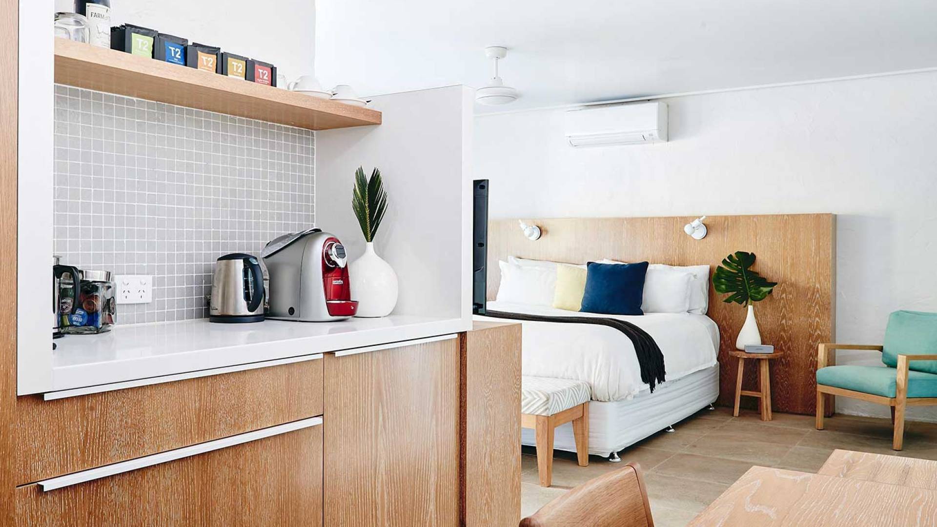 With sweeping views of the Coral Sea, the North Beachfront room is the stunning entry-level accommodation. Perfect for couples or people travelling as a twosome, these rooms are the epitome of laid-back luxury and can be booked with one king bed or twin beds.