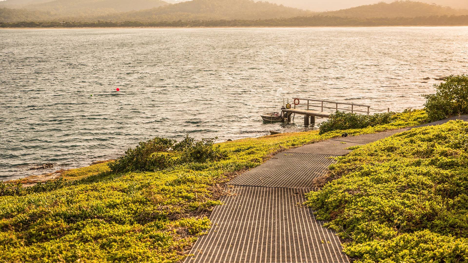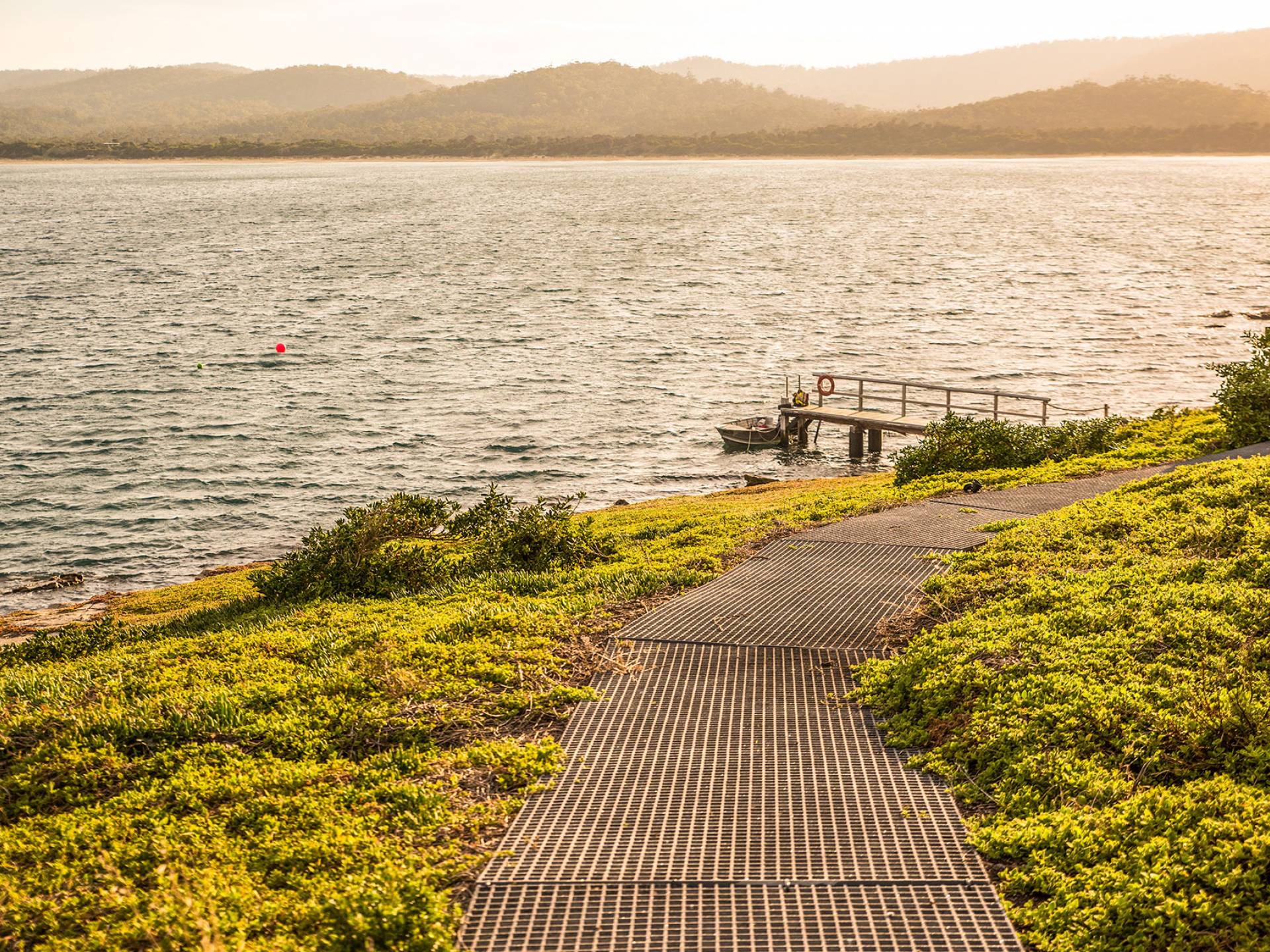 For an excellent half-day trek, continue on from the Wineglass Bay lookout down to the beautiful, perfectly curved beach and back to the park entrance via the Hazards Range for amazing views of Great Oyster Bay and the coastline surrounding the sleepy seaside village of Swansea. The Hazards look their best at sunrise and sunset when the pink granite glows brightly.