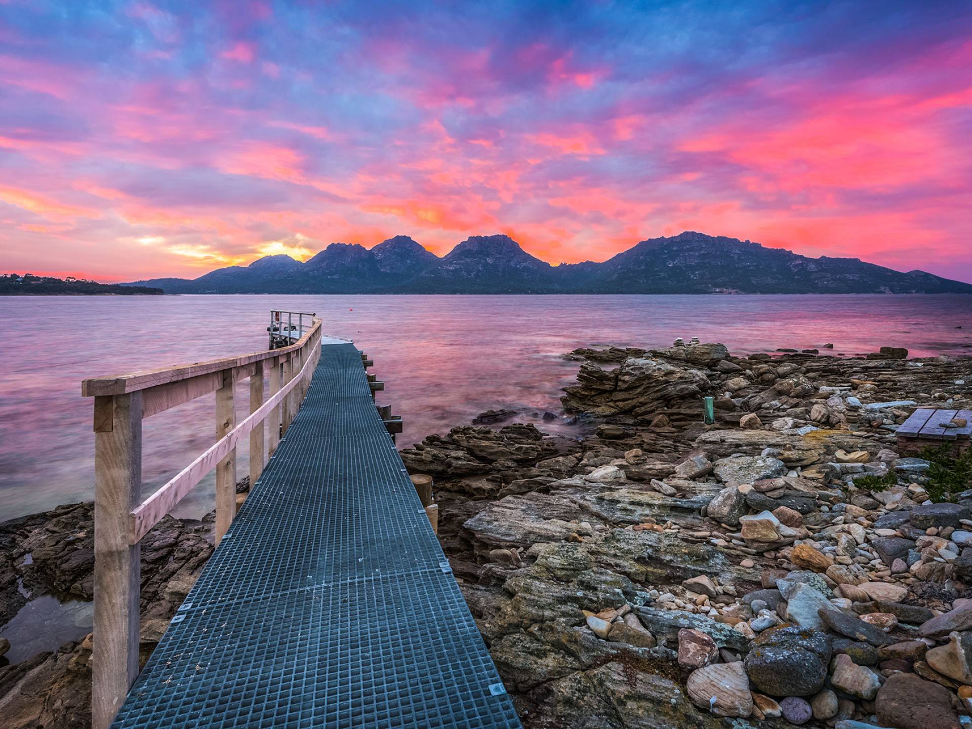 Freycinet National Park is a unique combination of dramatic pink granite peaks, secluded bays, sugar sandy beaches and abundant birdlife. Situated on Tasmania's dreamy east coast, the park occupies most of the Freycinet Peninsula and looks out to the Tasman Sea from the eastern side and towards the Tasmanian coastline from the west.