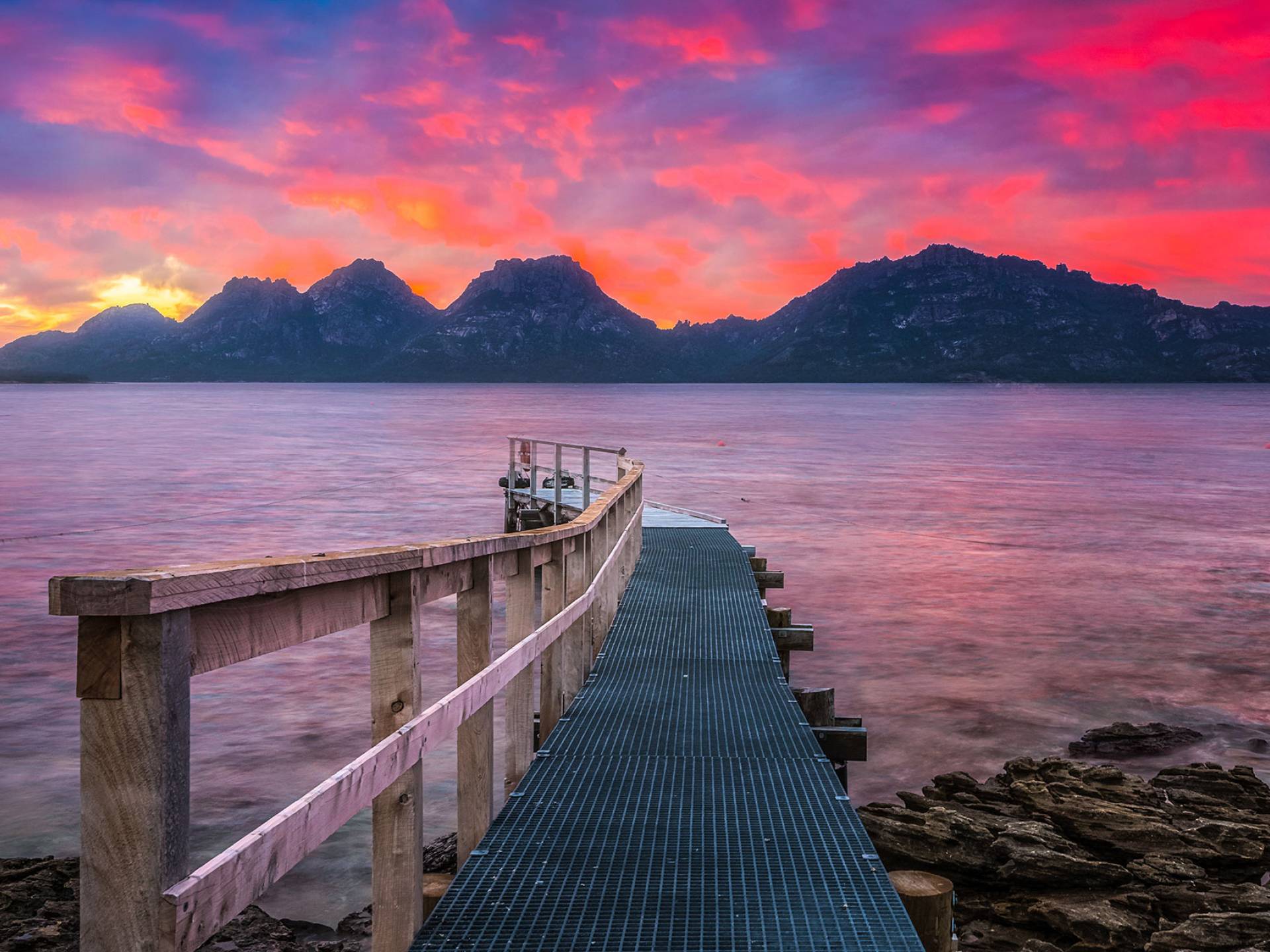 show more detailsFreycinet National Park is a unique combination of dramatic pink granite peaks, secluded bays, sugar sandy beaches and abundant birdlife. Situated on Tasmania's dreamy east coast, the park occupies most of the Freycinet Peninsula and looks out to the Tasman Sea from the eastern side and towards the Tasmanian coastline from the west.