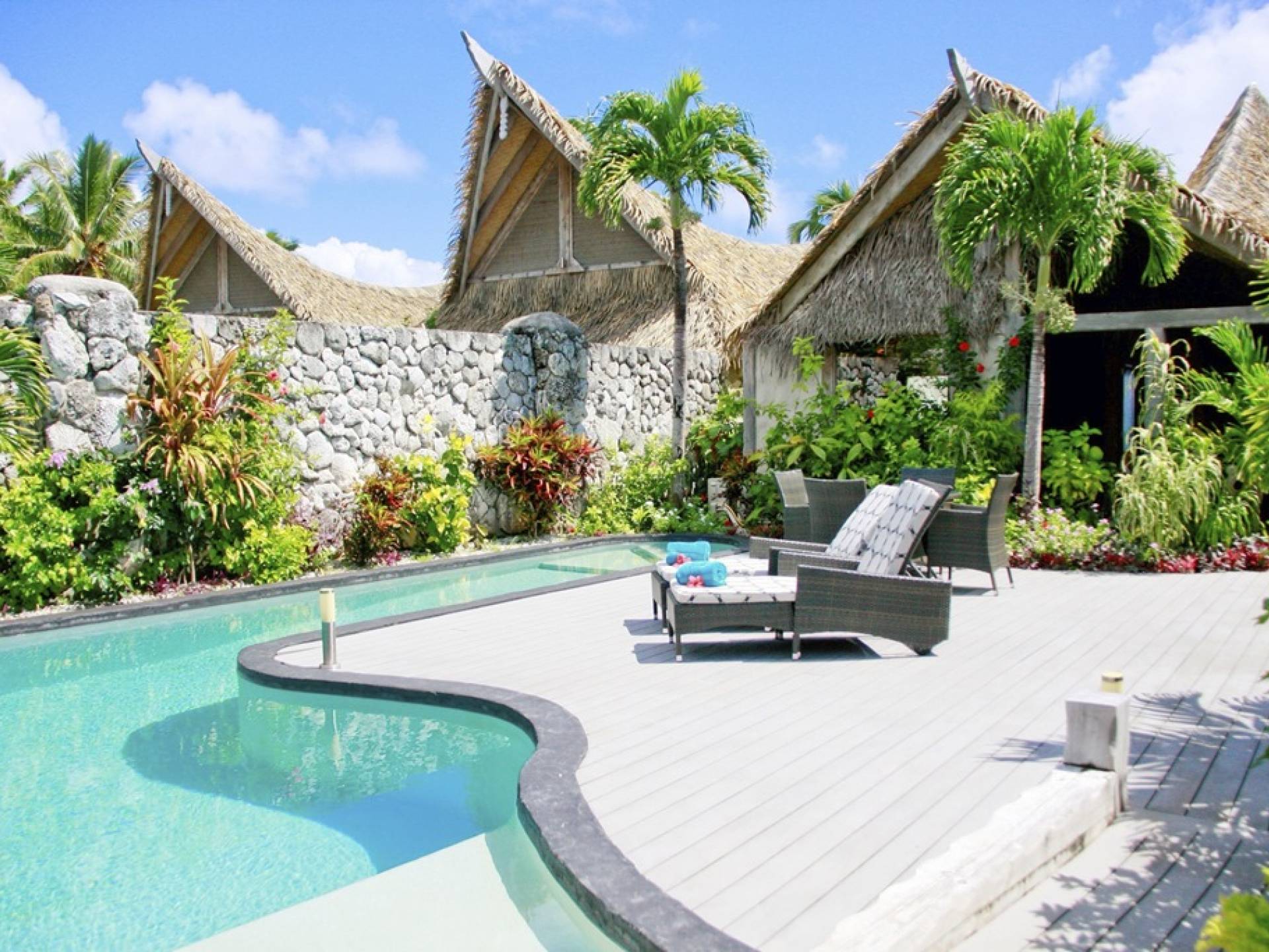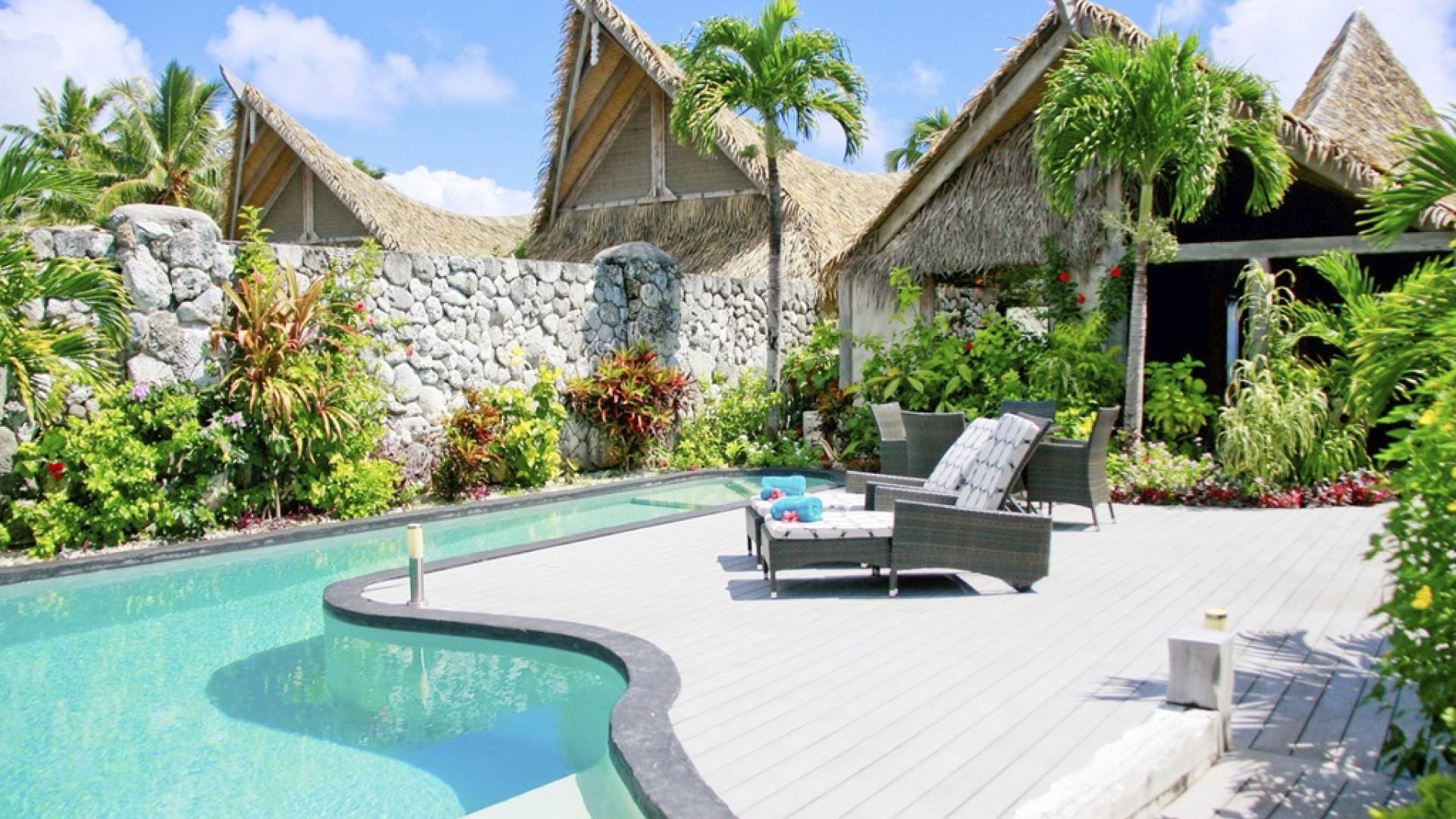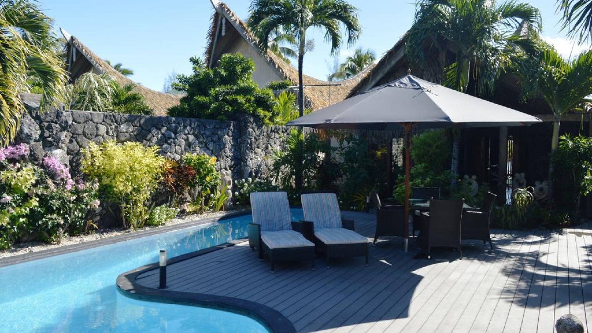 Create new memories as you take a refreshing dip in your own private swimming pool, watch the sunset on the stunning Aitutaki Lagoon, and the sunrise from your luxurious master bedroom suite with a beachfront view. Whilst this Villa is considered the “honeymoon” villa because the Master suite as well as living area have a stunning view of the lagoon, it is also perfect for friends and family getaways, as a second bedroom suite has a view of the gardens and private swimming pool area. Immerse yourself in the Luxury of this tranquil atmosphere, cooled by gentle South Pacific sea breezes, and let all your tensions melt away as you relax with your cherished ones, just surrender to the breathtaking view beyond.