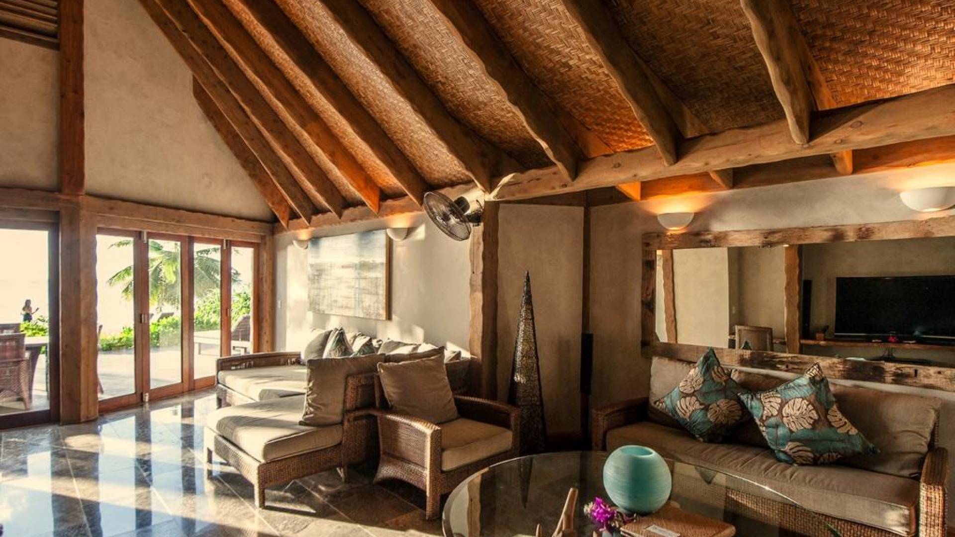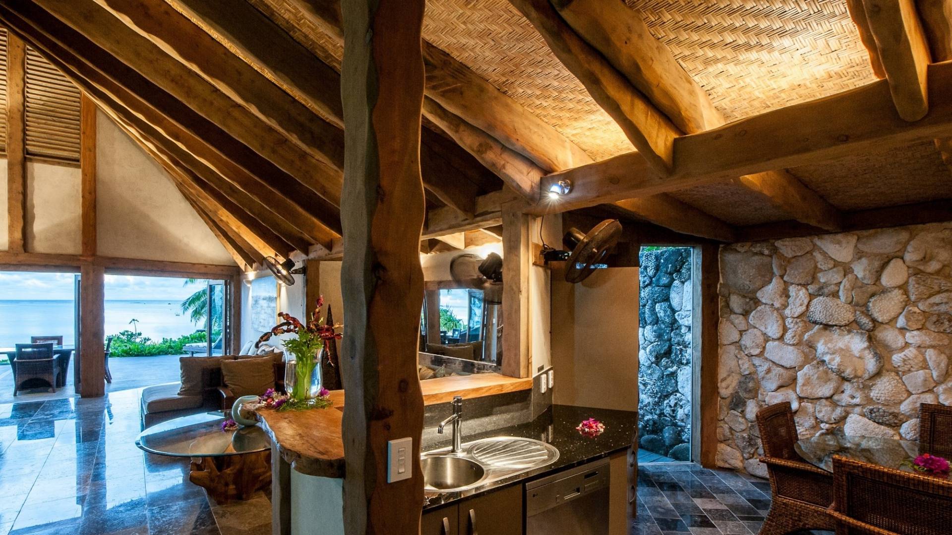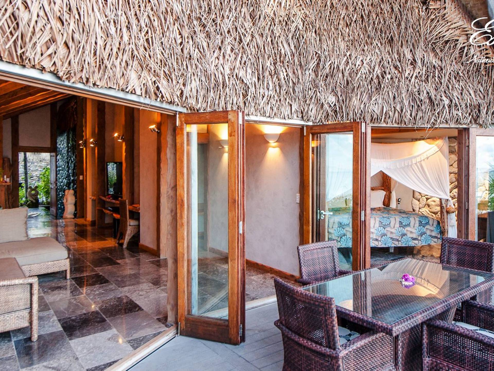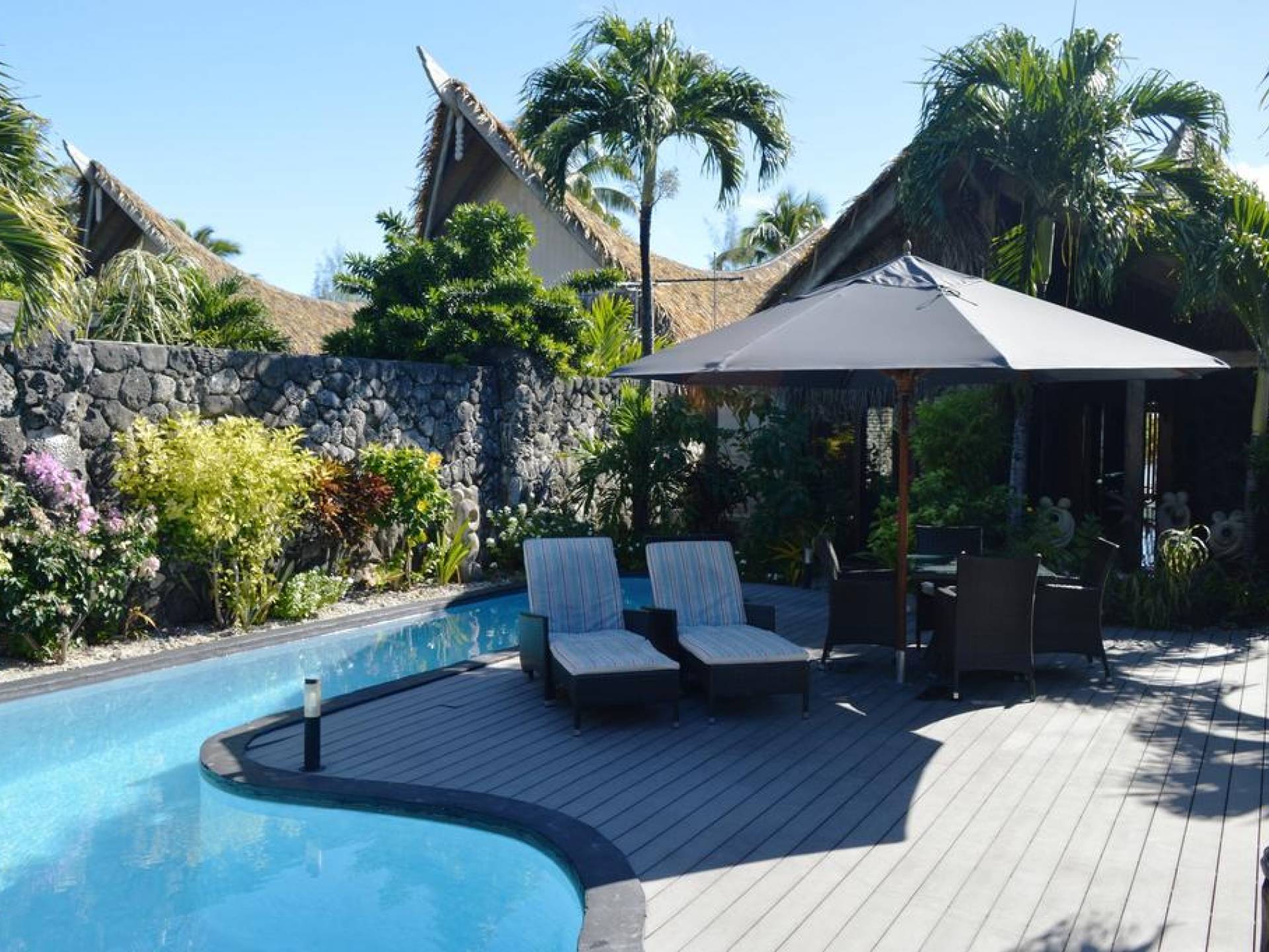 Create new memories as you take a refreshing dip in your own private swimming pool, watch the sunset on the stunning Aitutaki Lagoon, and the sunrise from your luxurious master bedroom suite with a beachfront view. Whilst this Villa is considered the “honeymoon” villa because the Master suite as well as living area have a stunning view of the lagoon, it is also perfect for friends and family getaways, as a second bedroom suite has a view of the gardens and private swimming pool area. Immerse yourself in the Luxury of this tranquil atmosphere, cooled by gentle South Pacific sea breezes, and let all your tensions melt away as you relax with your cherished ones, just surrender to the breathtaking view beyond.
