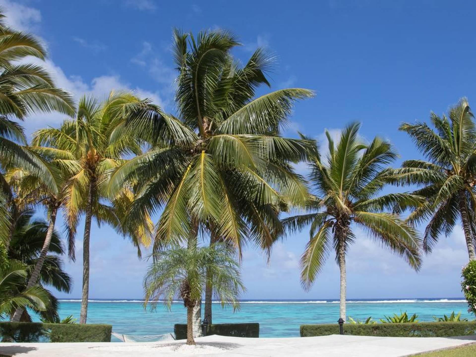 Palm-studded white sandy beaches fringe most of the island, and there is a popular cross-island walk that connects Avatiu valley with the south side of the island. It passes the Te Rua Manga, the prominent needle-shaped rock visible from the air and some coastal areas. Hikes can also be taken to the Raemaru or flat-top mountain. Other attractions include Wigmore Falls and the ancient marae, Arai te Tonga.