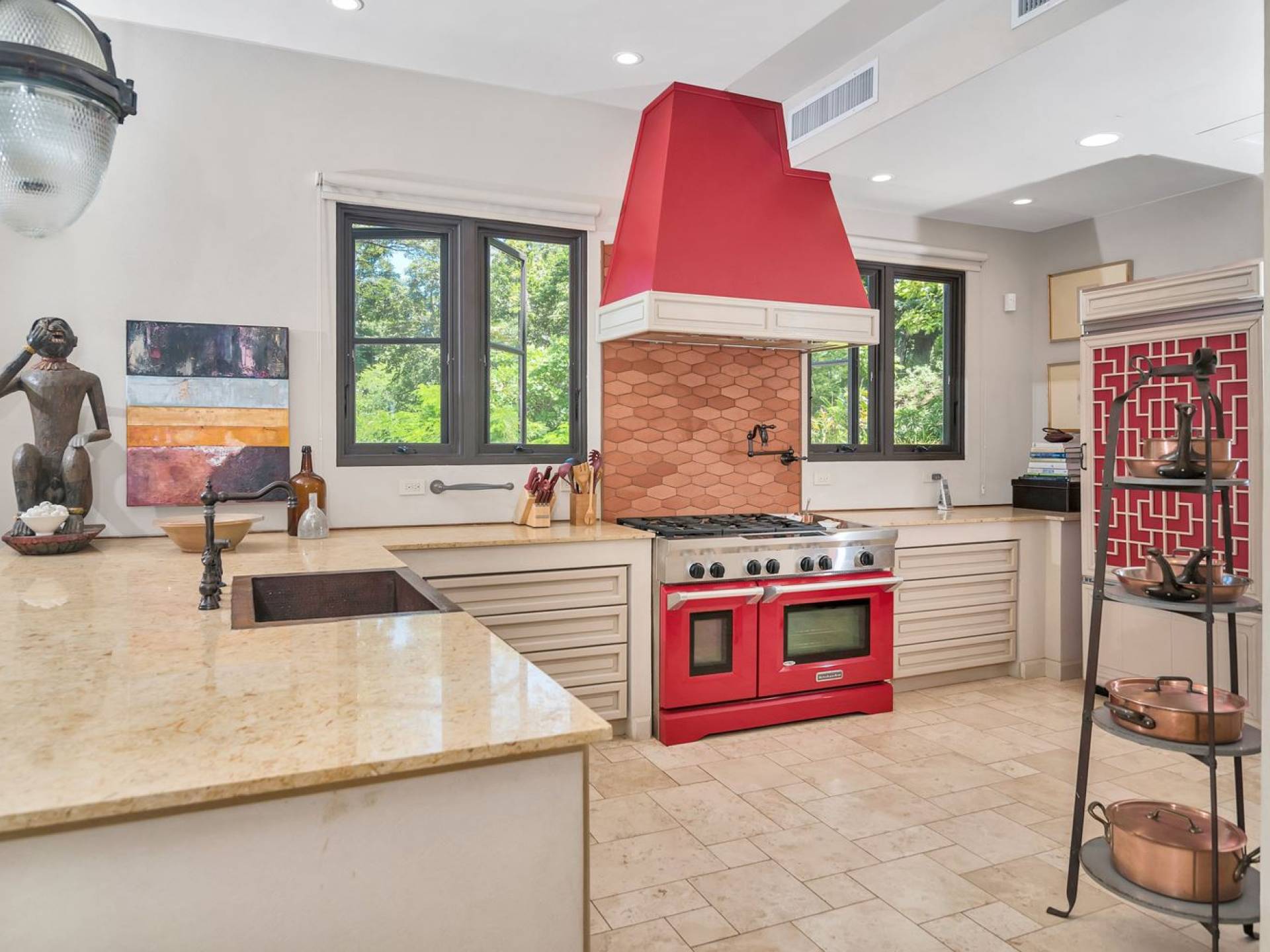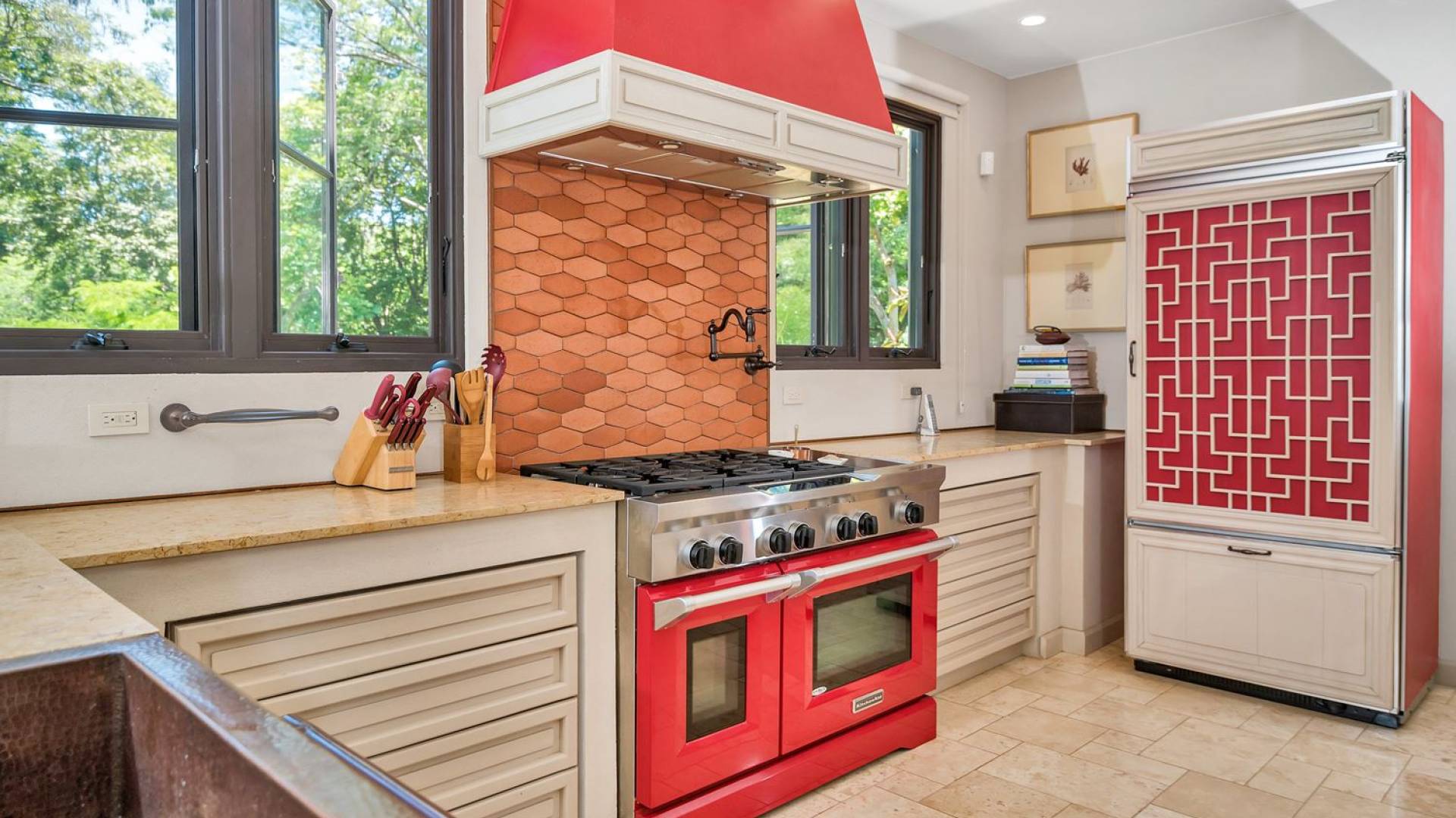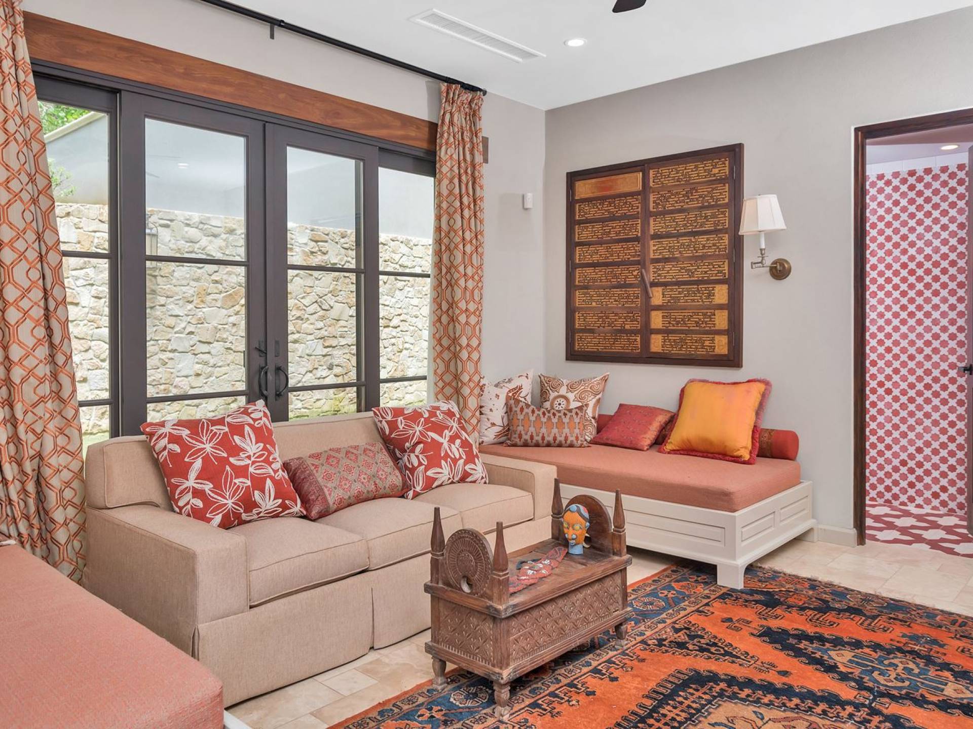 Designed by renowned Costa Rican architect Ronald Zurcher and gorgeously furnished by its interior designer owner, Wild Indigo has magazine-worthy appeal. A mix of vintage, modern, and new pieces from Morocco, Thailand, India, Central America, and beyond fill the spacious living and dining rooms. In the fully equipped kitchen, a bold red range makes a fun focal point.