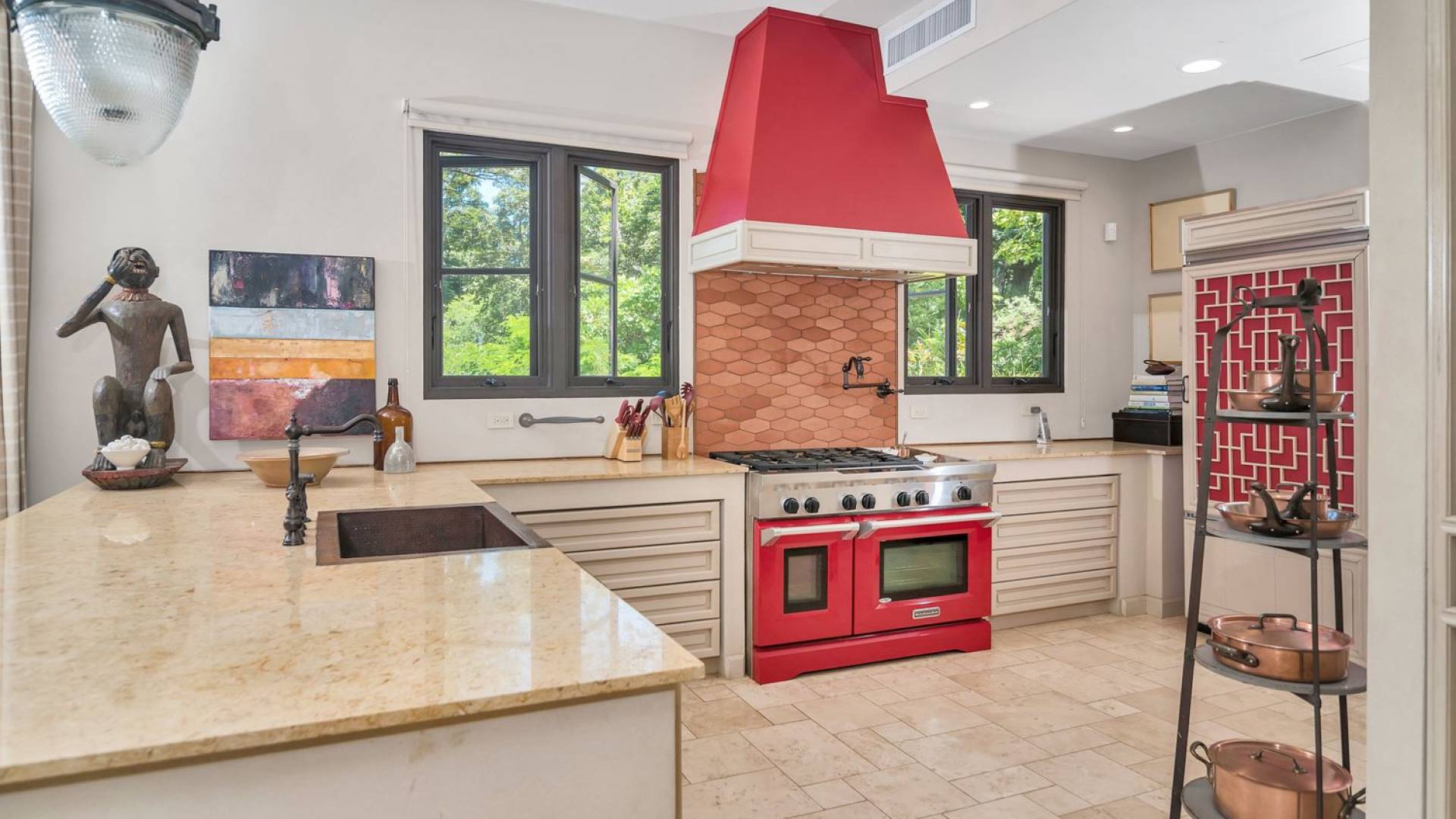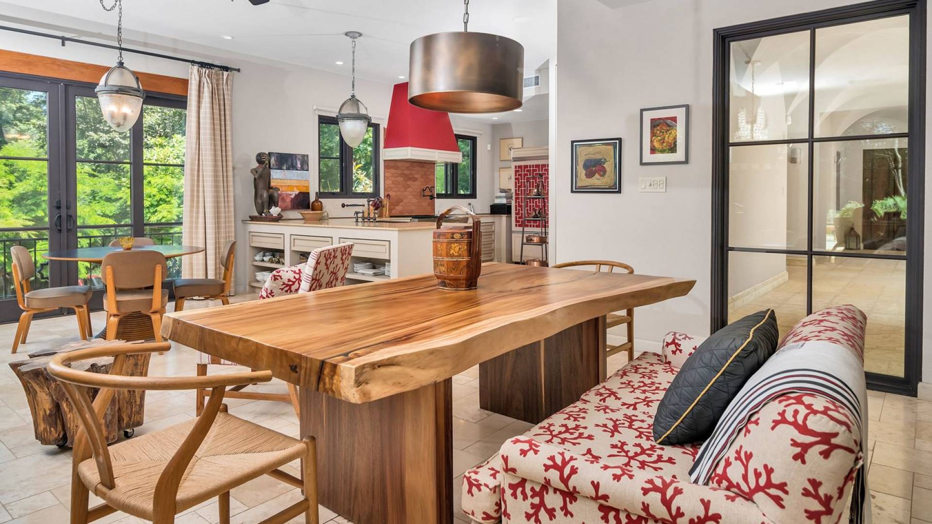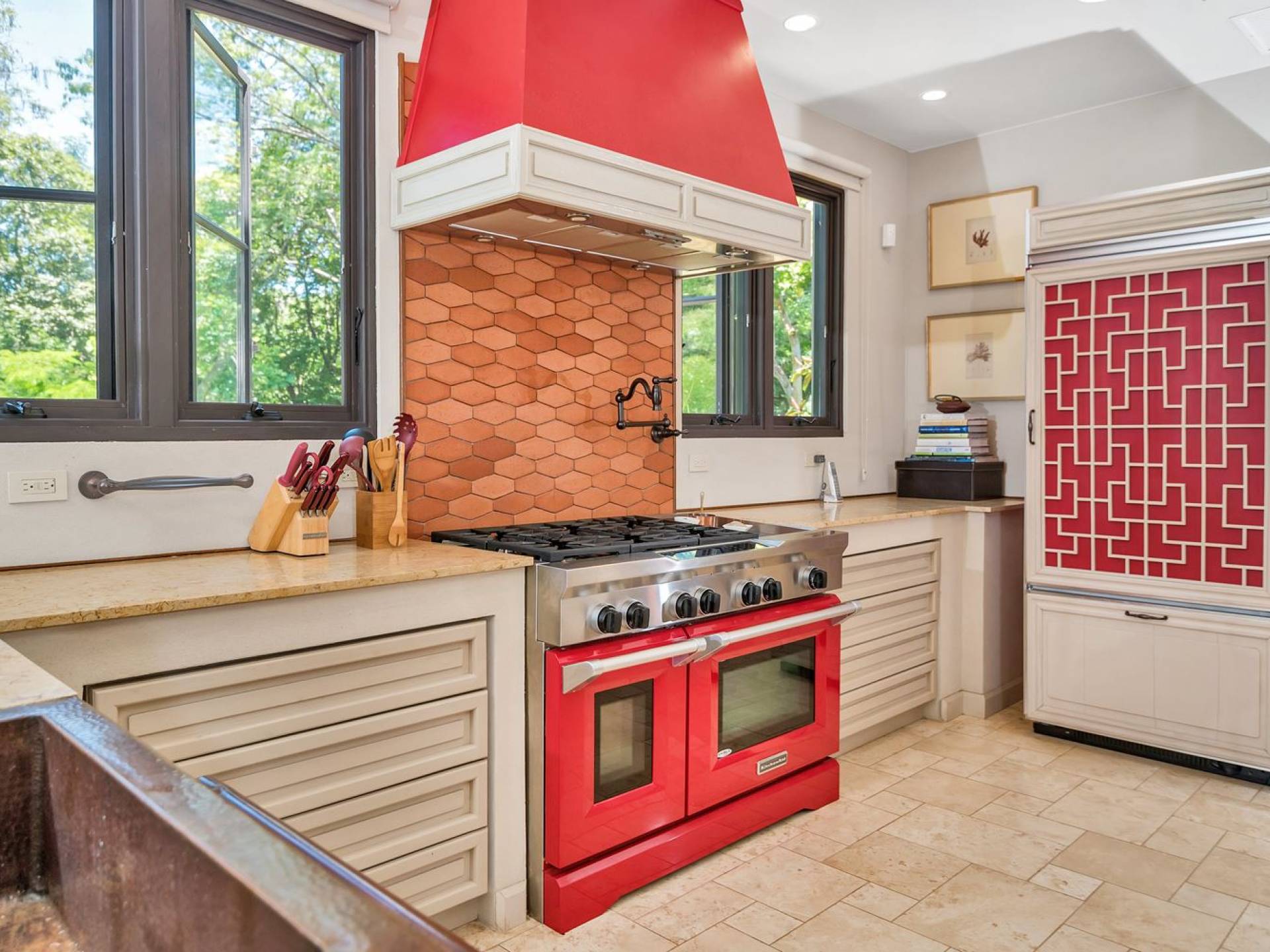 Designed by renowned Costa Rican architect Ronald Zurcher and gorgeously furnished by its interior designer owner, Wild Indigo has magazine-worthy appeal. A mix of vintage, modern, and new pieces from Morocco, Thailand, India, Central America, and beyond fill the spacious living and dining rooms. In the fully equipped kitchen, a bold red range makes a fun focal point.