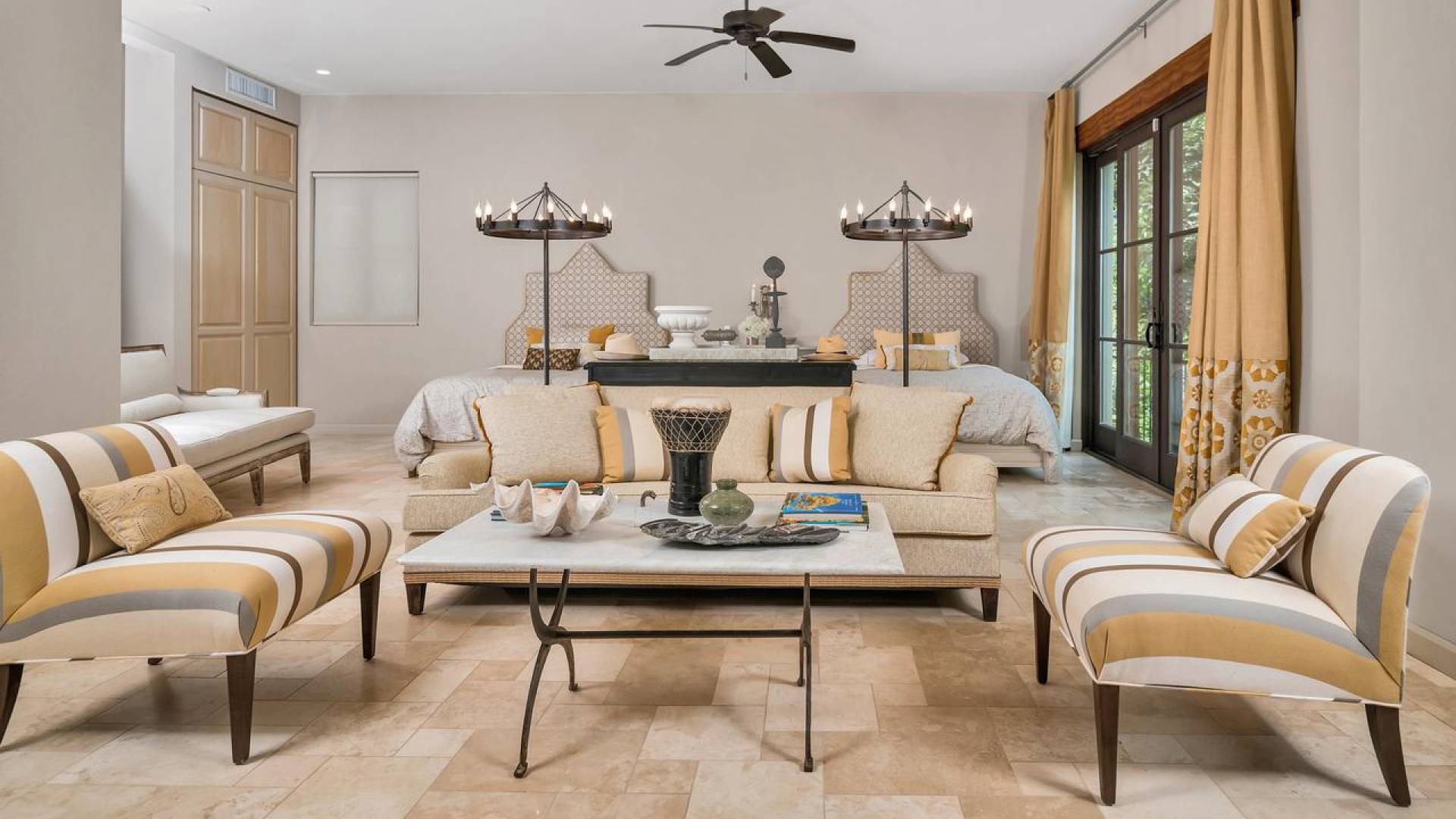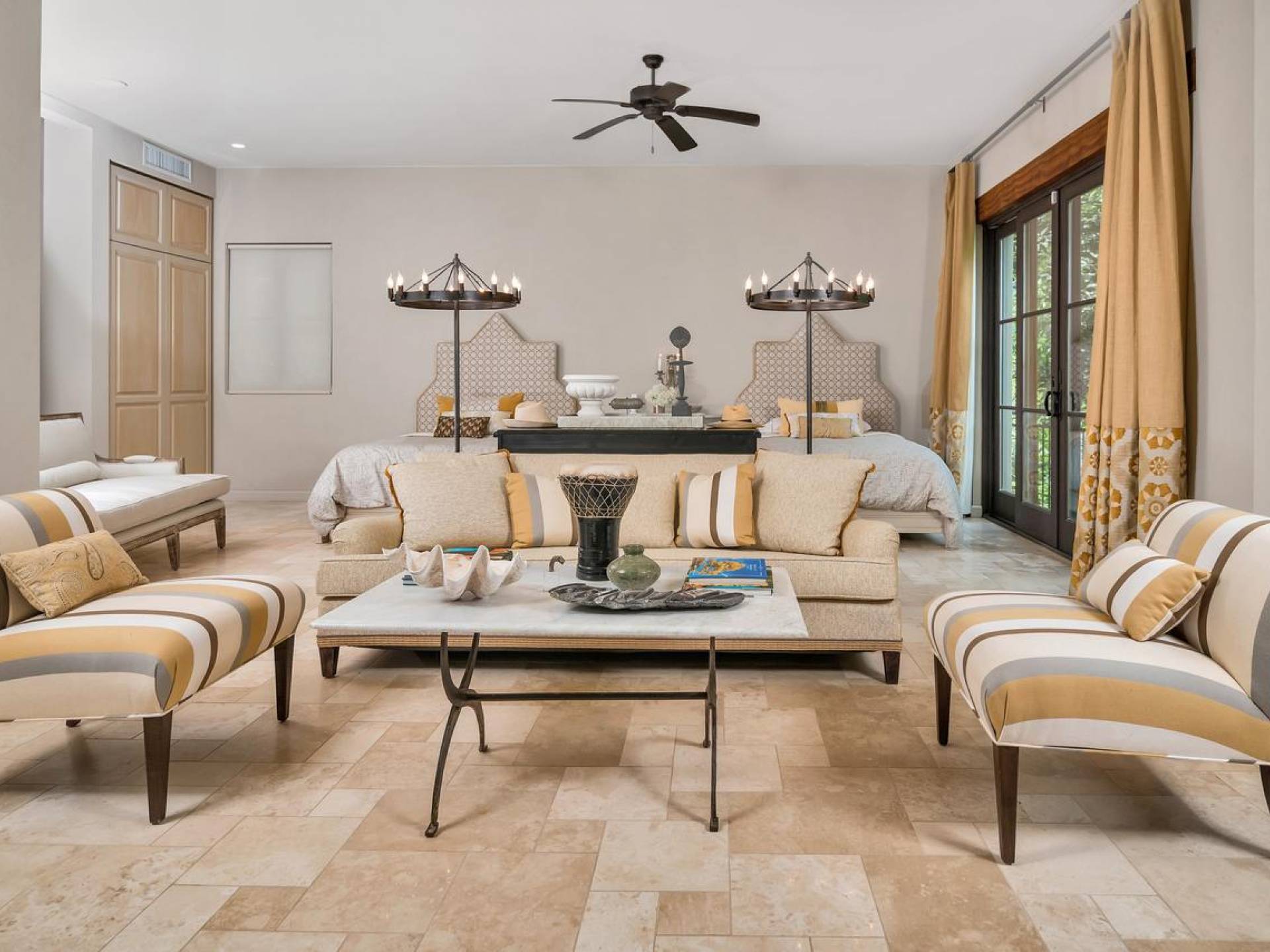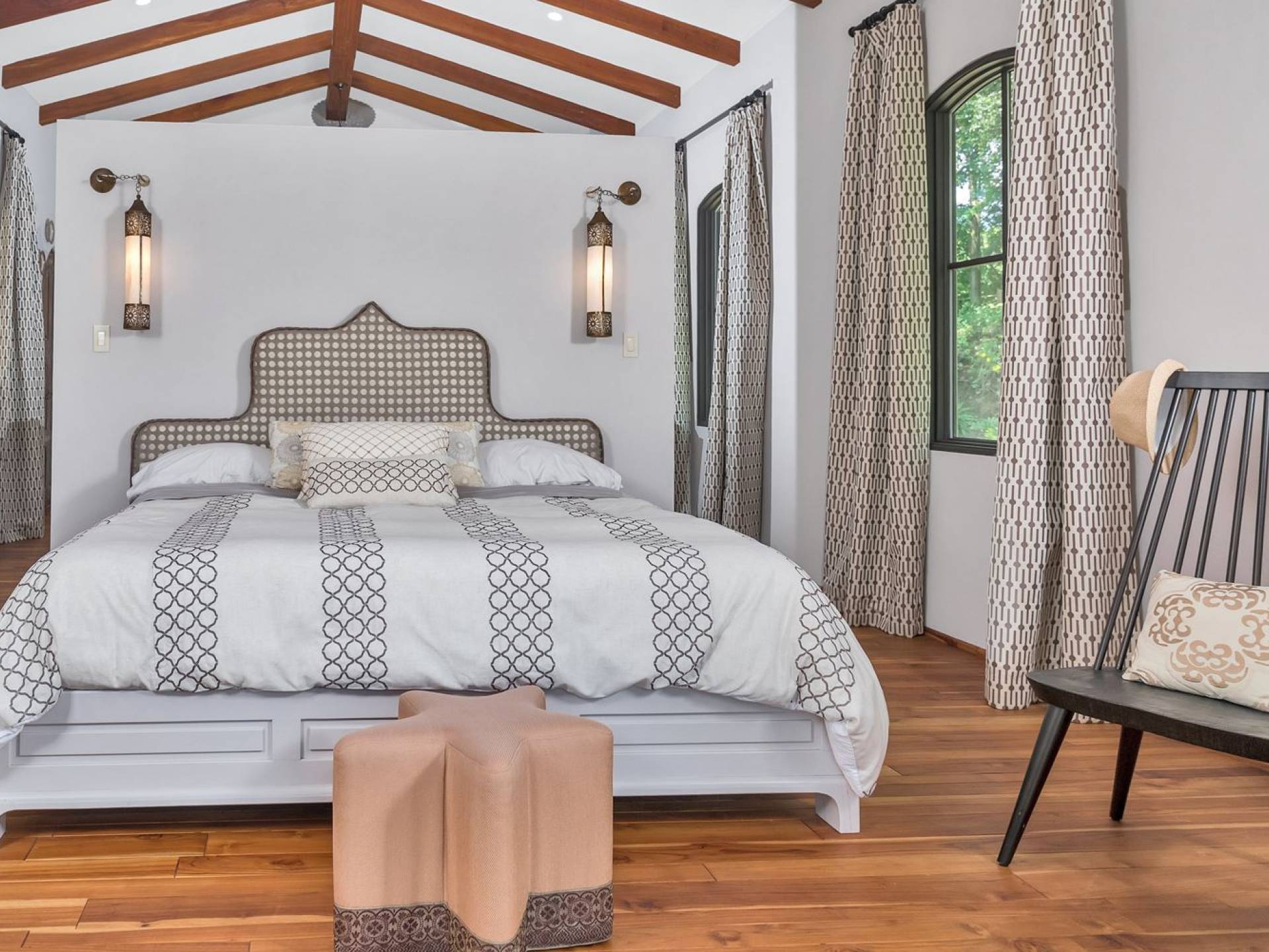 The villa’s five bedrooms—four in the main house and one in a casita, all with en-suite bathrooms—can accommodate groups of up to ten friends and family. In the main house, there are two bedrooms with king beds, including a master to rival any honeymoon suite, one bedroom with two queen beds, and one bedroom with two twin beds and a queen sofa bed. The casita has two twin beds and its own private living area, kitchenette, and terrace.