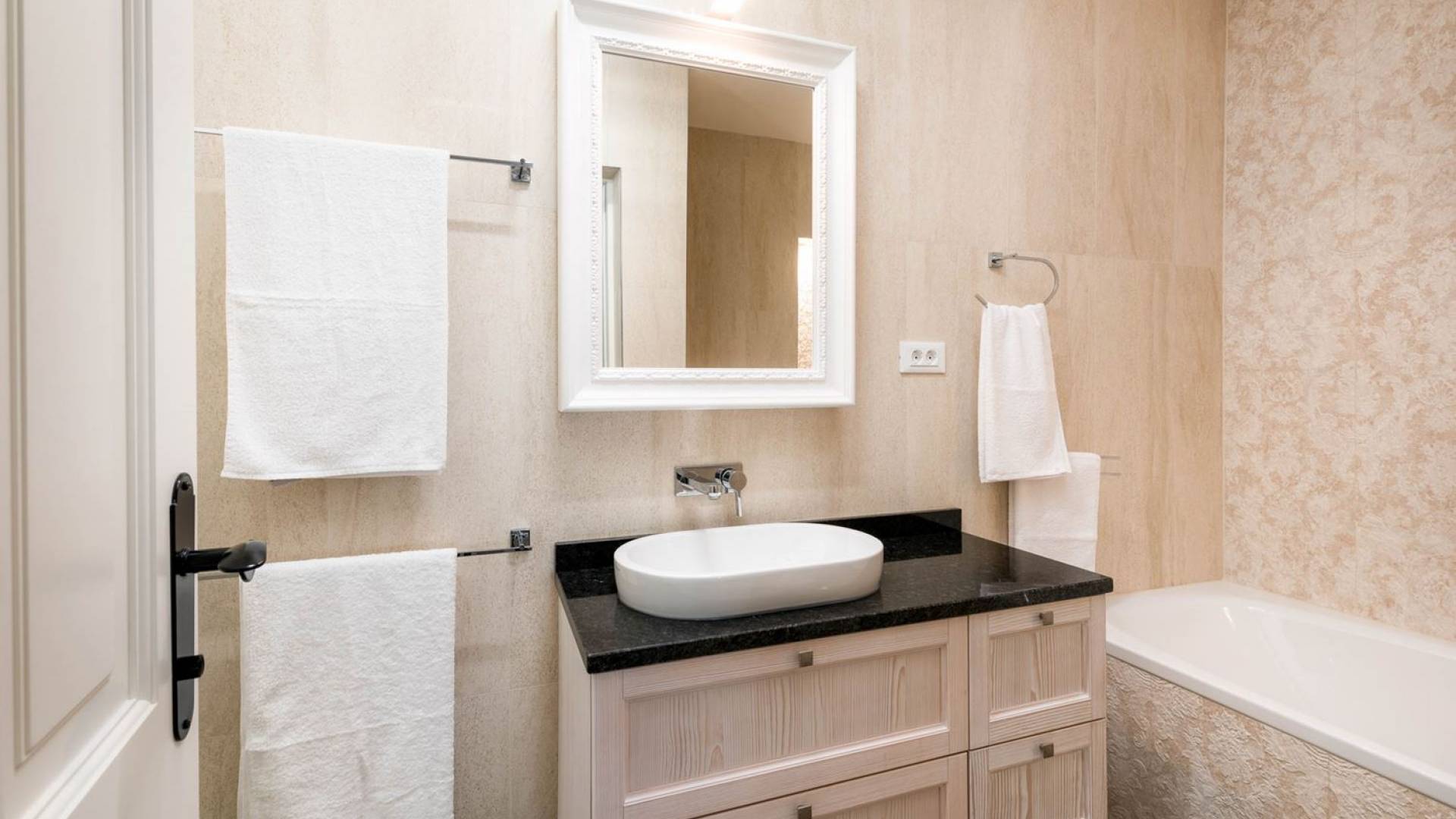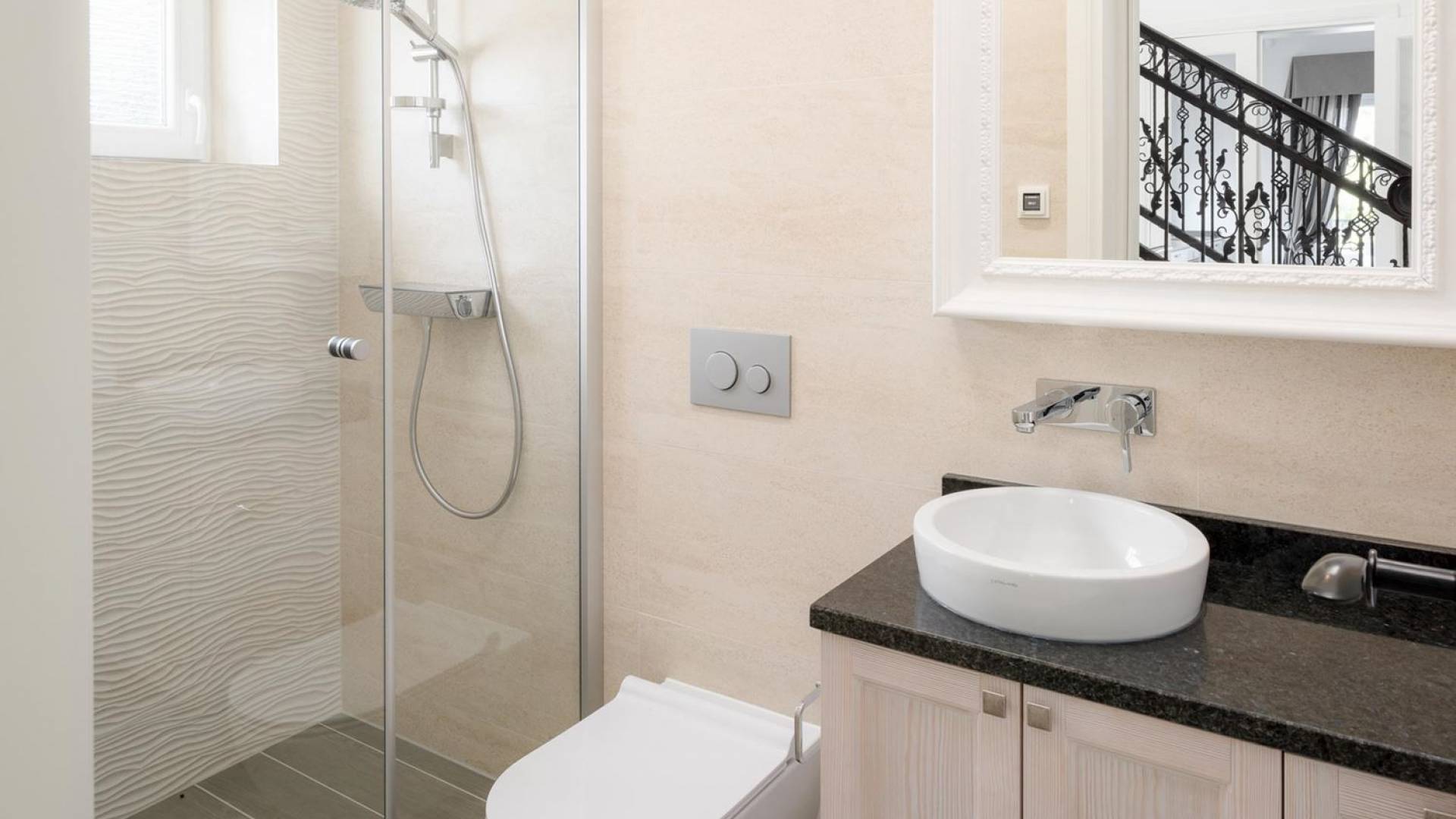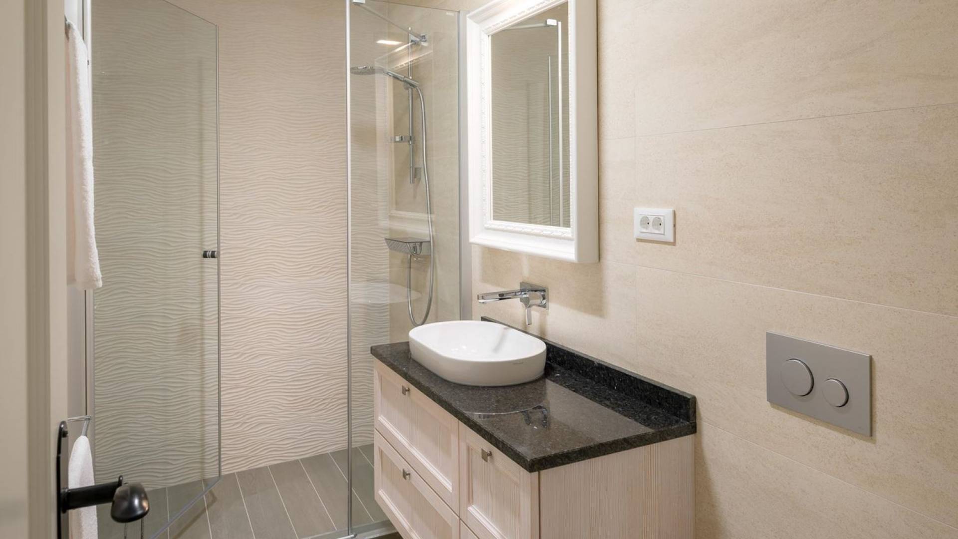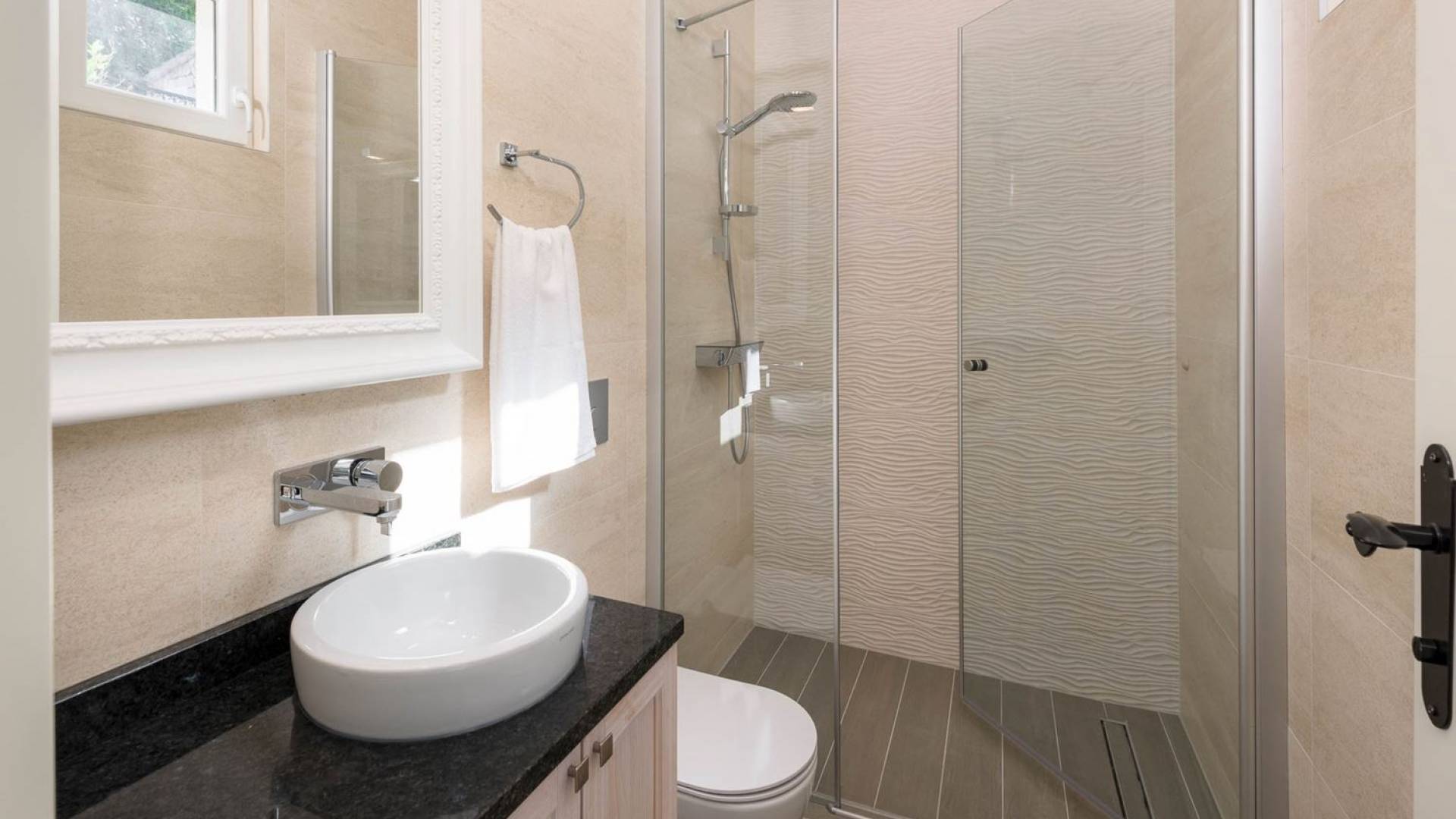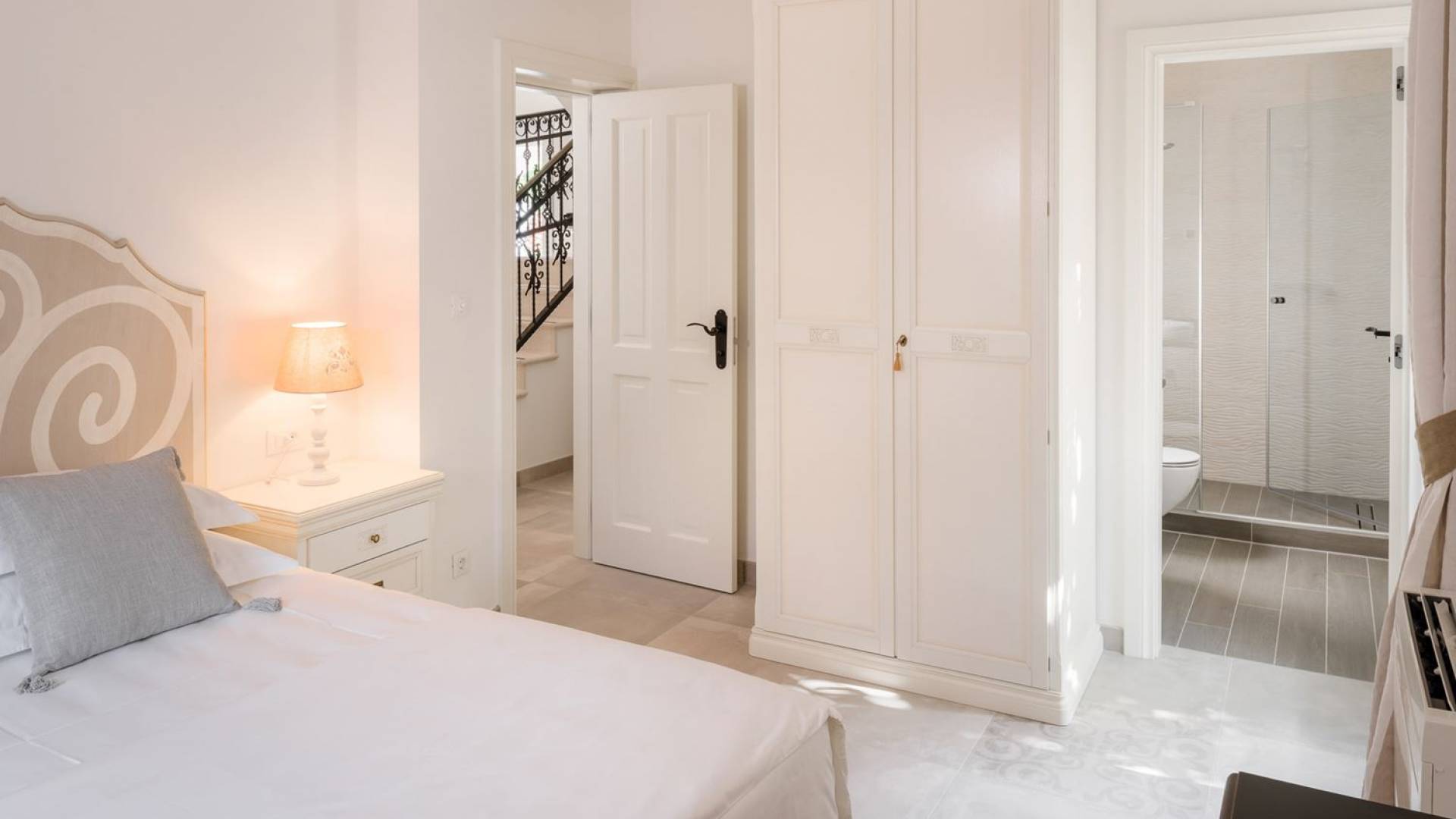 The first and second floors are connected with inner staircases which lead to a living room and a terrace with a spectacular view. On this level, there is the master bedroom with an en-suite bathroom equipped with a shower and bath. To mezzanine of Villa, Freya leads separate entrance and here you will have a spacious en-suite double bedroom, smaller living room and kitchen, which is the ideal accommodation for staff.