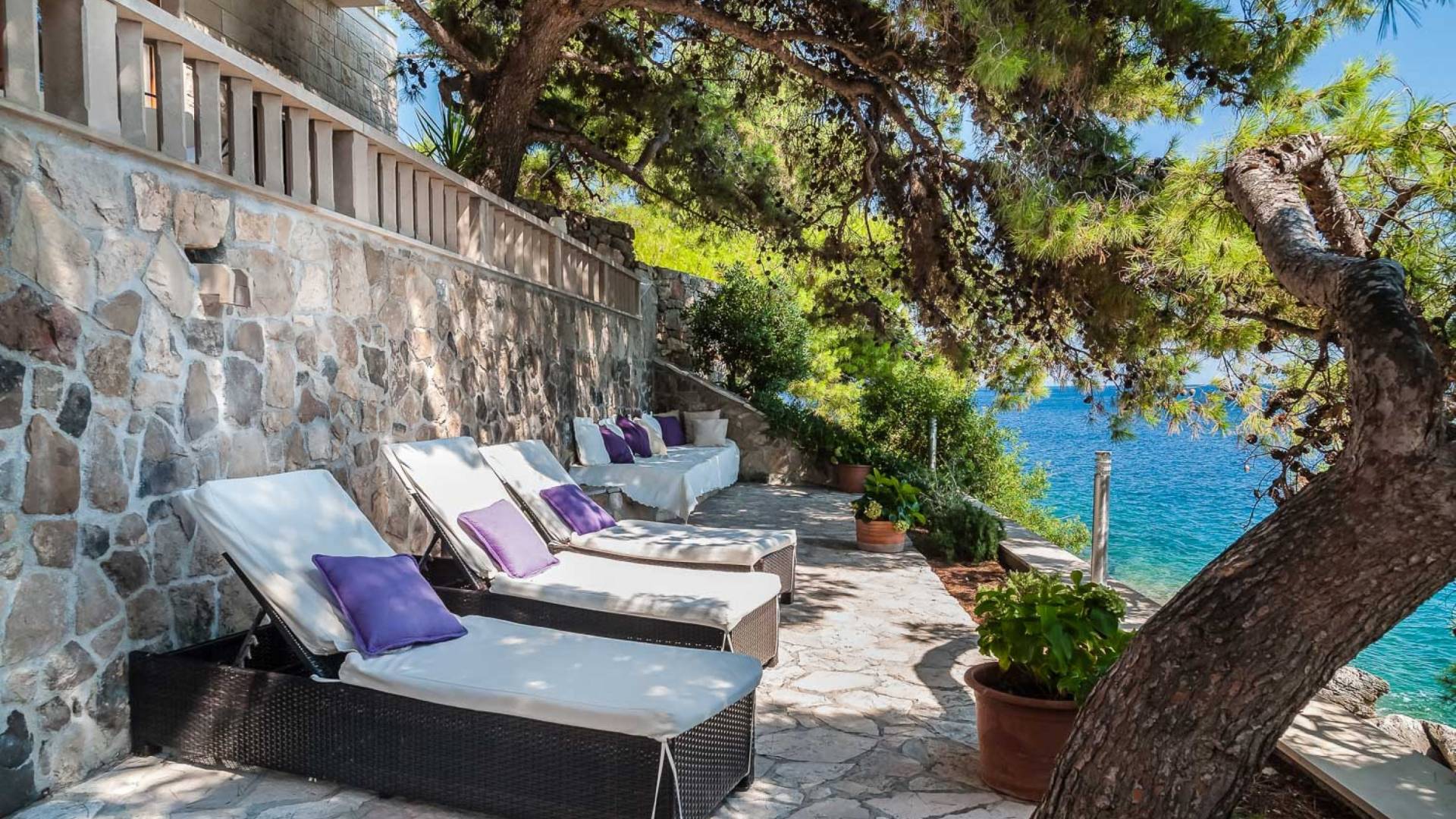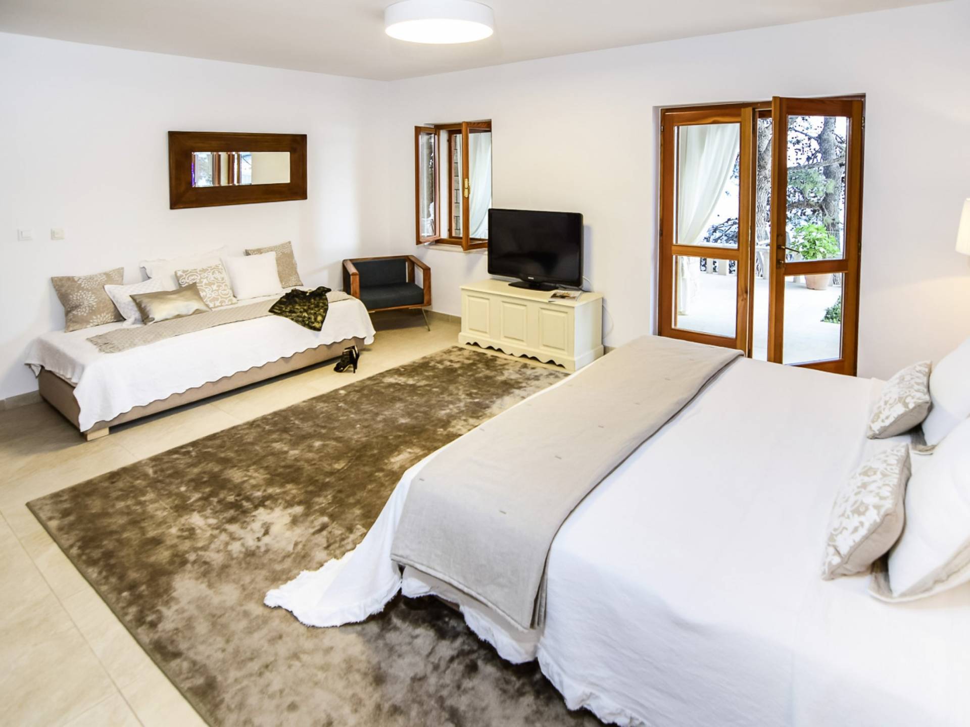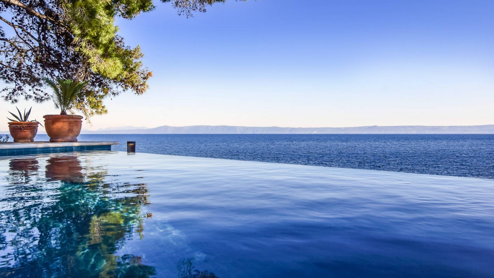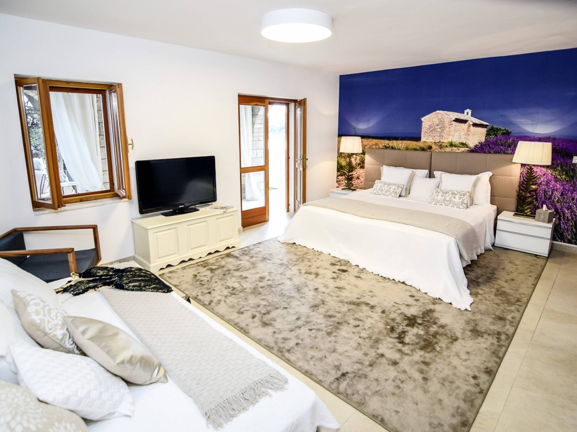 The pool looks amazing - the terraces spill out to the infinity-edge pool through Mediterranean gardens... When you arrive at Villa Lavander there is a beautiful garden with lavender, pines, palms, bougainvillaea, rosemary, geraniums and many other Mediterranean plants. Villa Lavander spreads over 3 floors and covers an area of 480m². The villa sleeps 14 people in 6 bedrooms and extra beds; has 6 bathrooms and an extra toilet. The villa is entered through the middle level where you will find three bedrooms and three bathrooms as well as one of the 3 entertainment rooms complete with plasma satellite TV/DVD and three terraces (one with a table tennis table). All bedrooms have a full view of the Adriatic Sea, which is just 10 meters from the terrace.