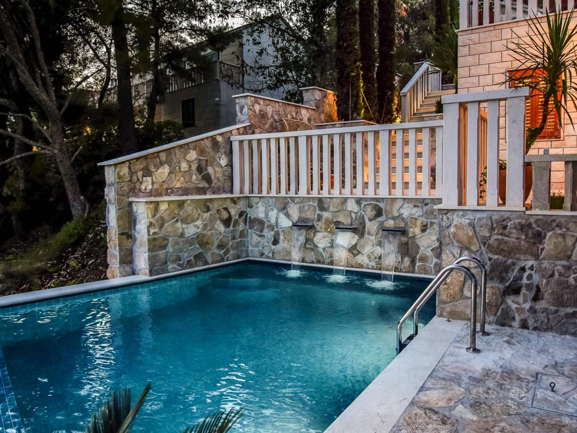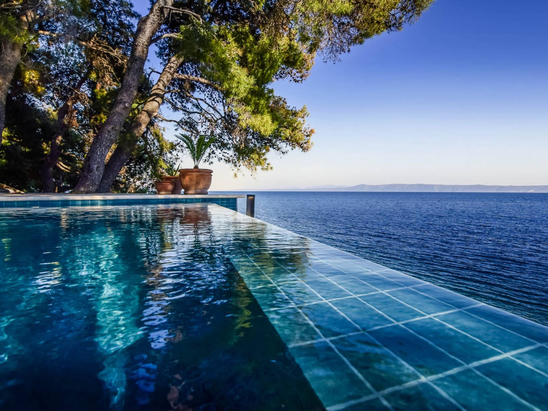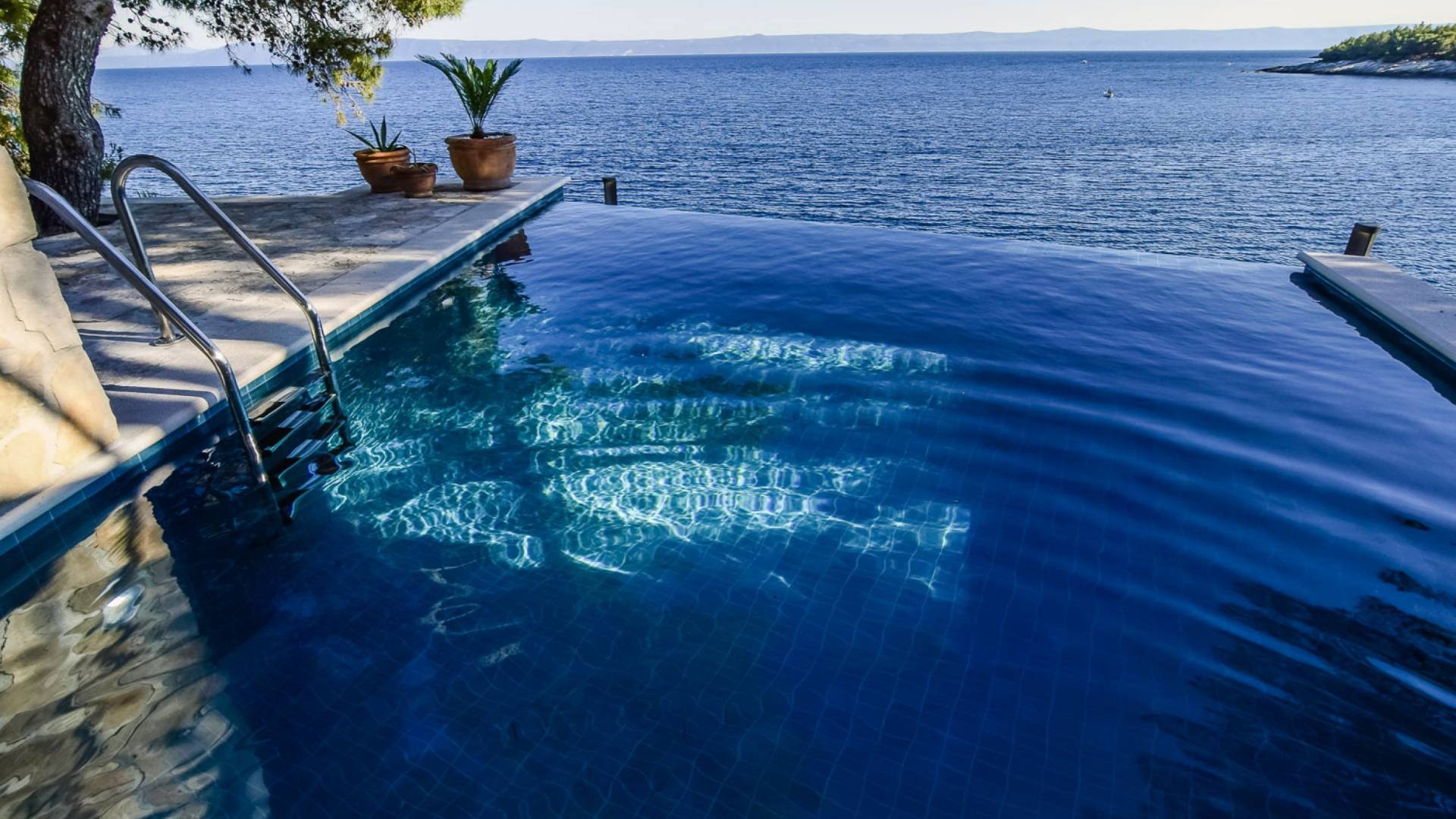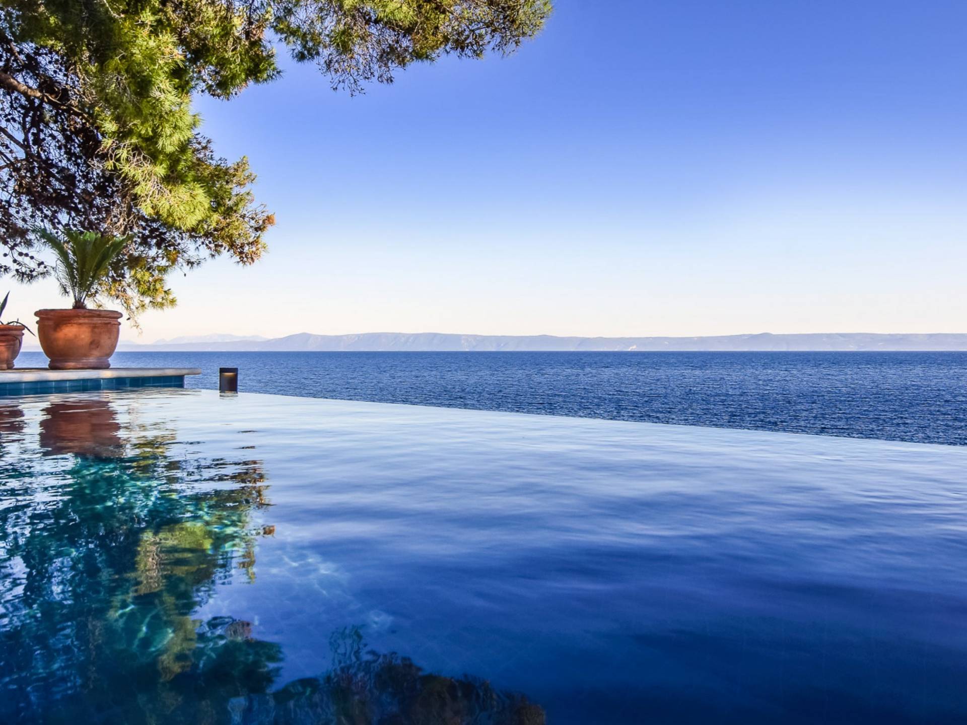 The pool looks amazing - the terraces spill out to the infinity-edge pool through Mediterranean gardens... When you arrive at Villa Lavander there is a beautiful garden with lavender, pines, palms, bougainvillaea, rosemary, geraniums and many other Mediterranean plants. Villa Lavander spreads over 3 floors and covers an area of 480m². The villa sleeps 14 people in 6 bedrooms and extra beds; has 6 bathrooms and an extra toilet. The villa is entered through the middle level where you will find three bedrooms and three bathrooms as well as one of the 3 entertainment rooms complete with plasma satellite TV/DVD and three terraces (one with a table tennis table). All bedrooms have a full view of the Adriatic Sea, which is just 10 meters from the terrace.