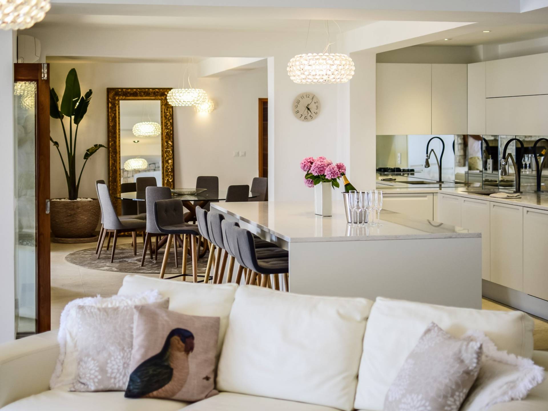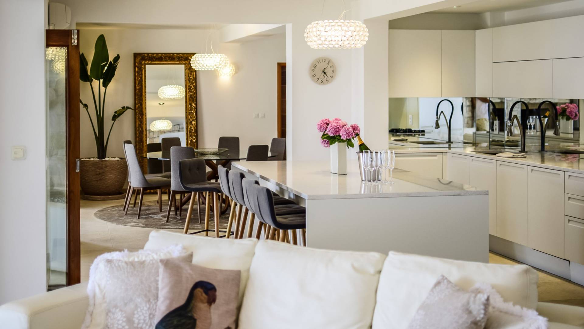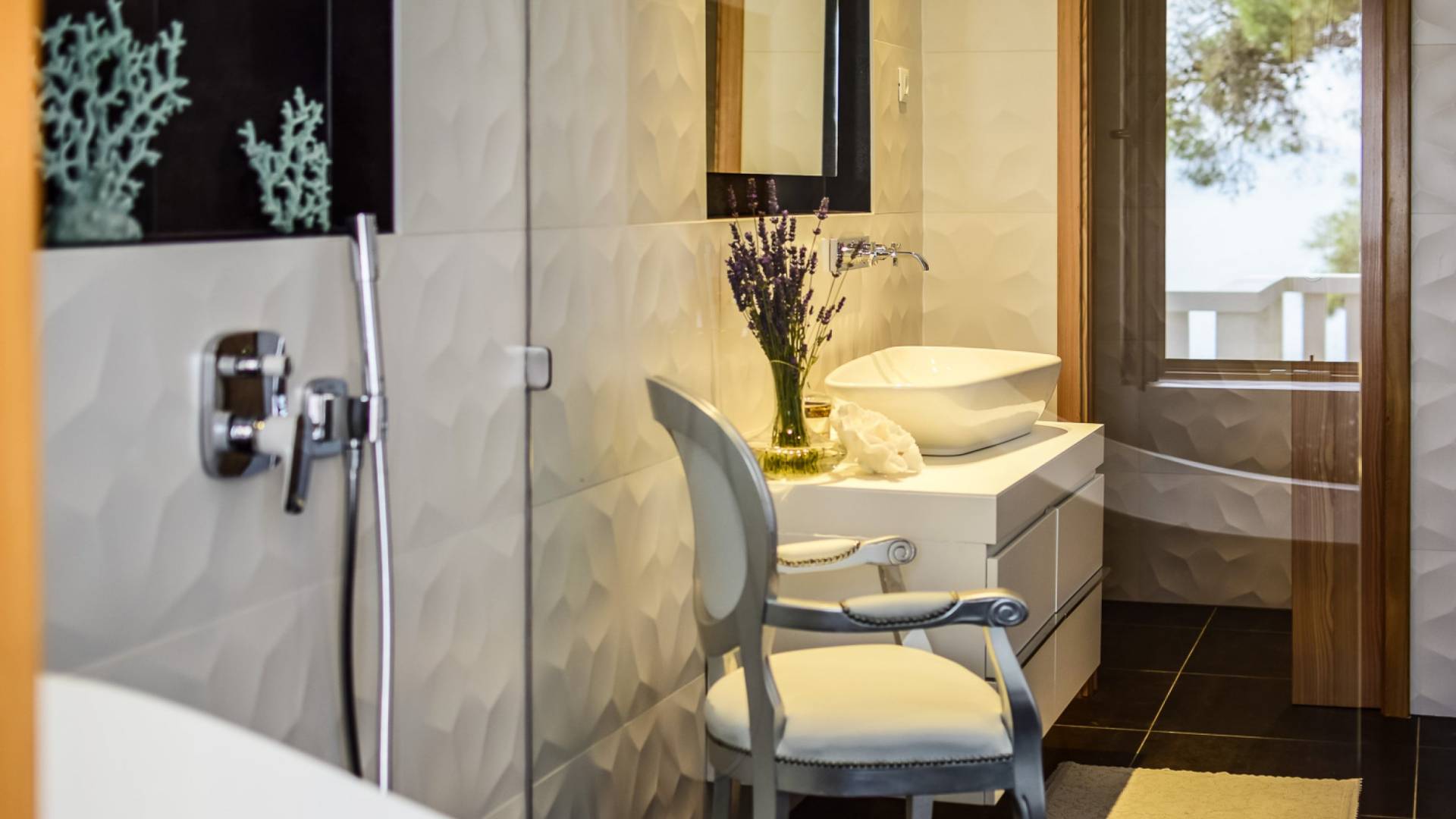 On the first floor of Villa Lavander, there 2 bedrooms with king-size beds, one of which has one single bed and 2 designer bathrooms. As with every penthouse here you can find a small kitchenette and sitting area which are connected to the terrace with stunning sea view where you can relax and enjoy the end of the day…