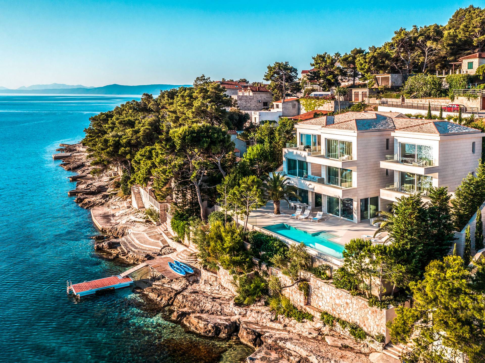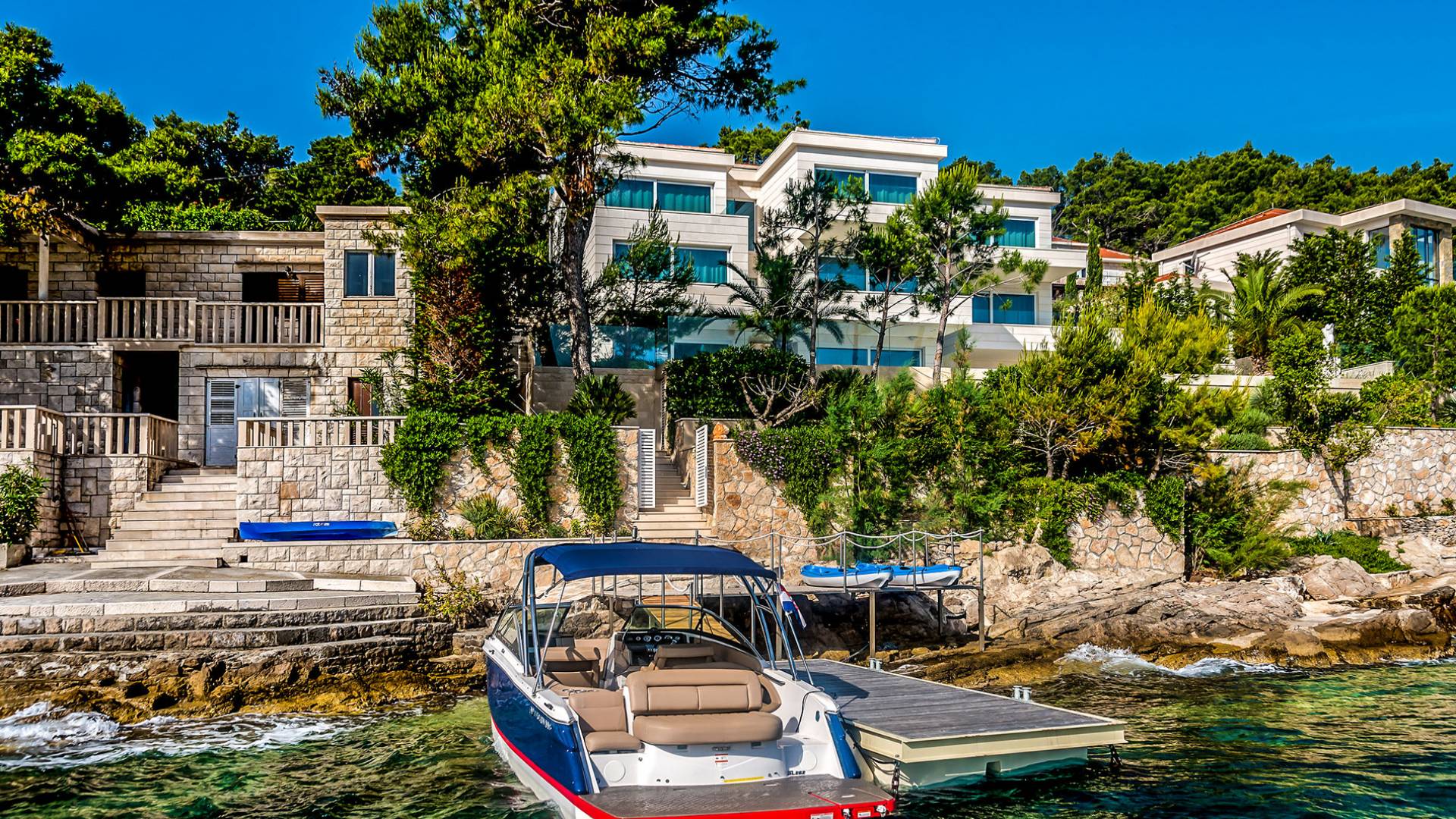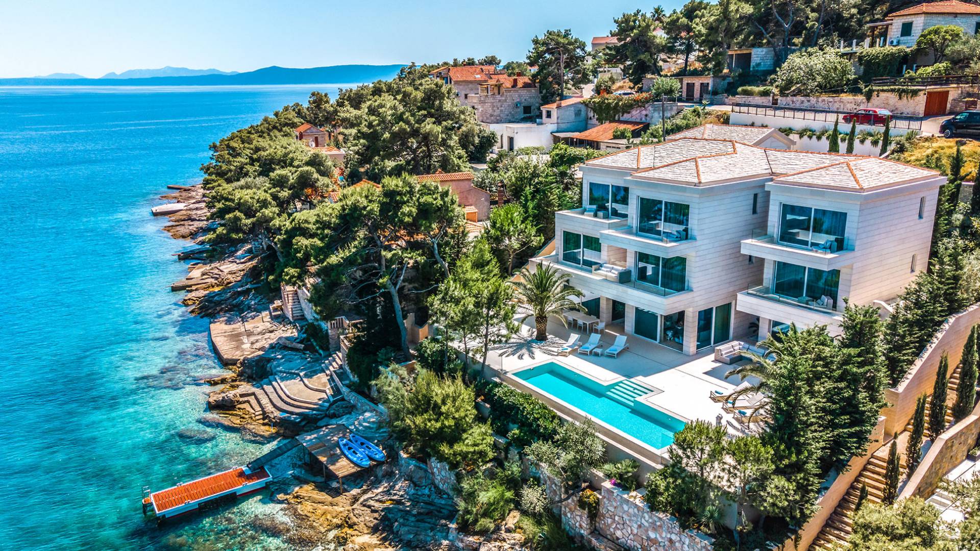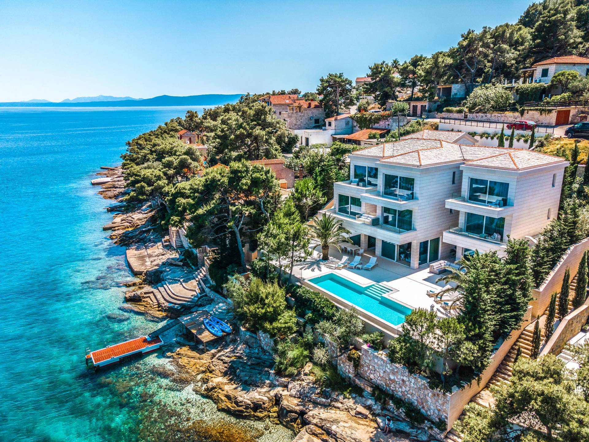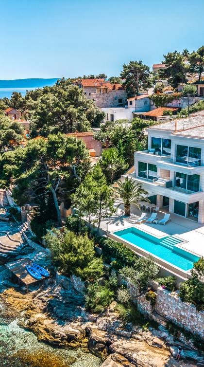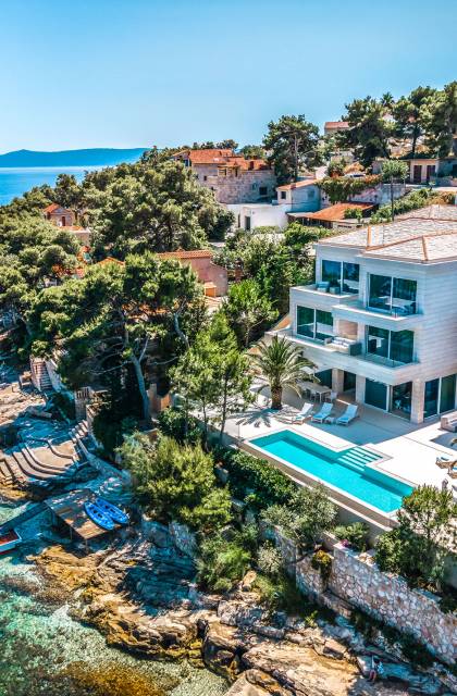 Villa Mila Brac is a newly built modern waterfront villa with a living area of 550 square meters. It is located in Sumartin, a small fishing village on the island of Brač. With 6 bedrooms and 7 bathrooms, this 5-star villa can accommodate up to 12 guests. Amongst others the villa offers an infinity-edge swimming pool, a gym room, a sauna, and a floating dock with moorings.