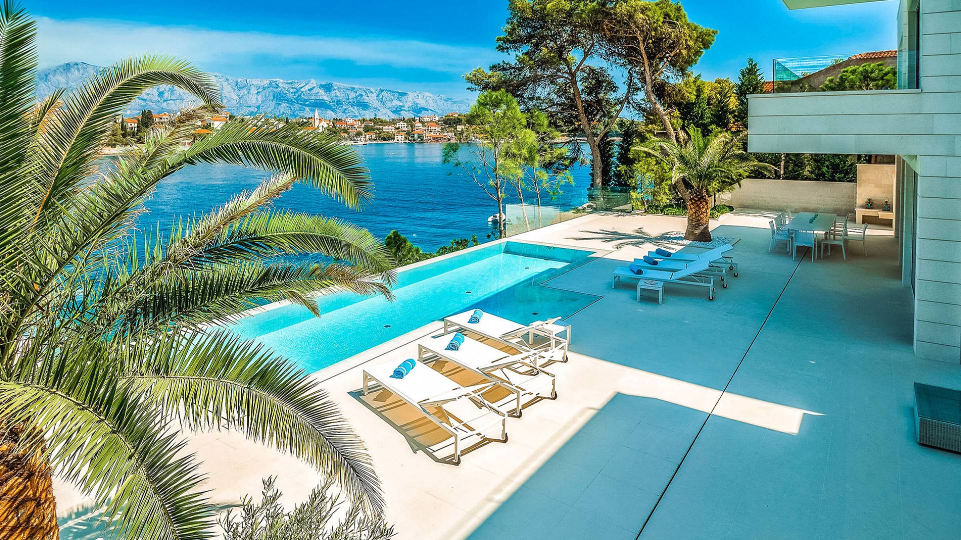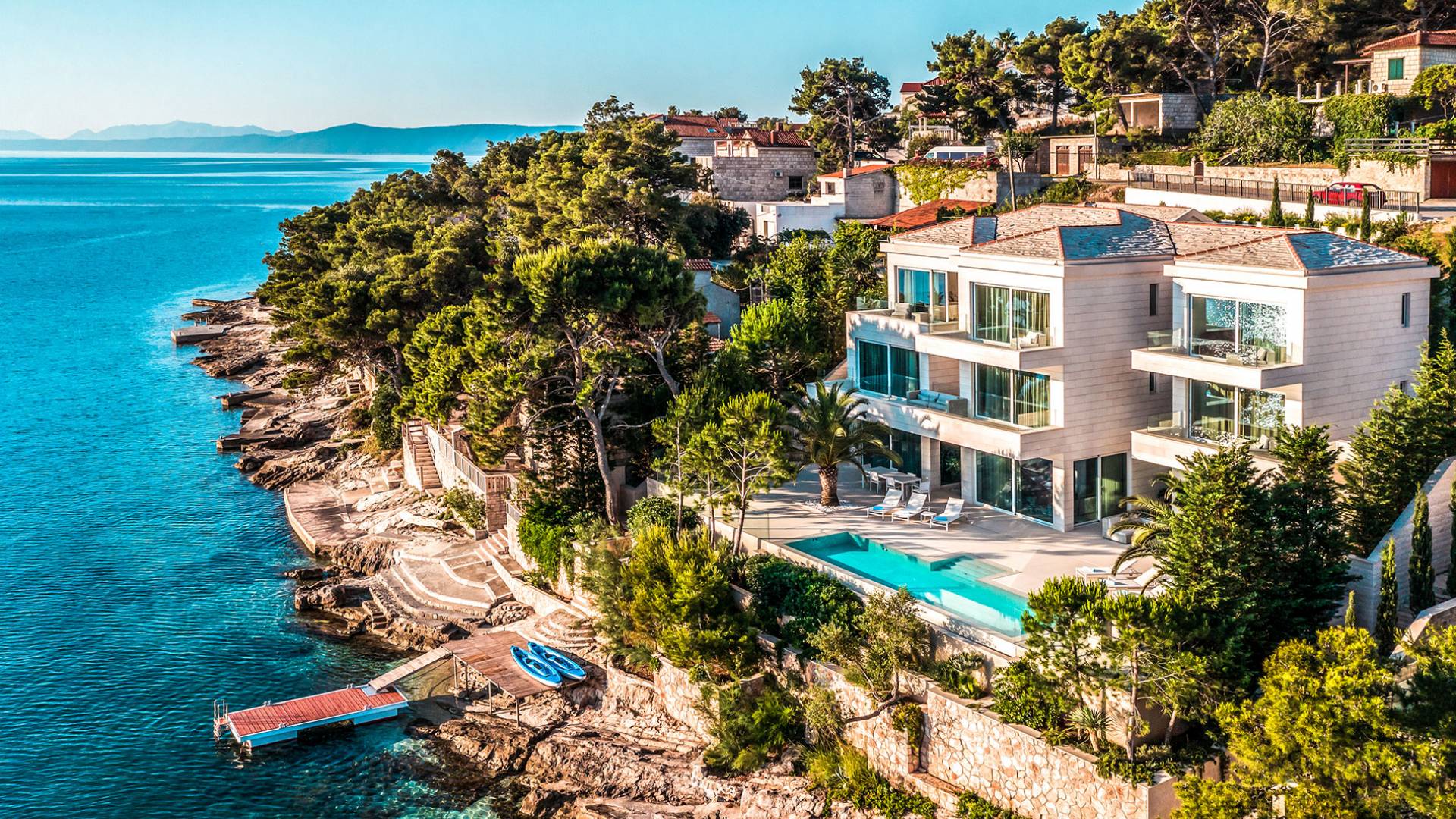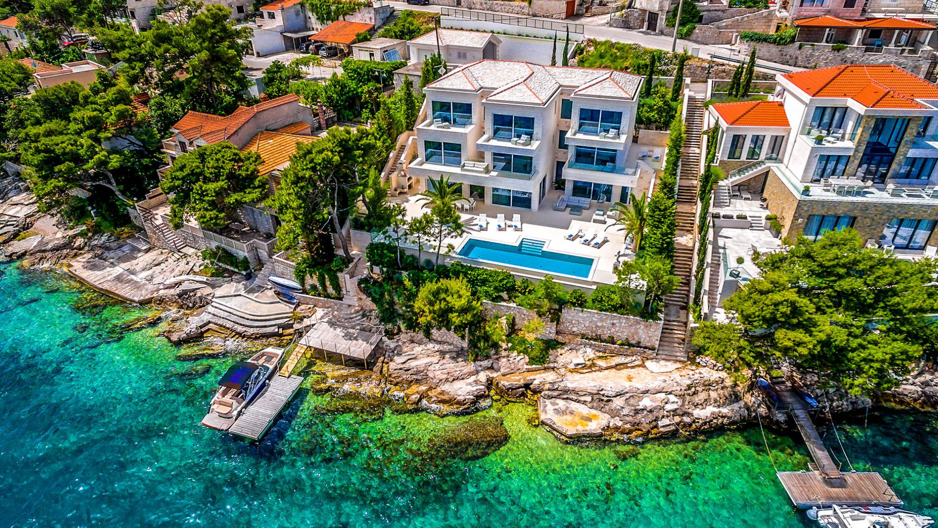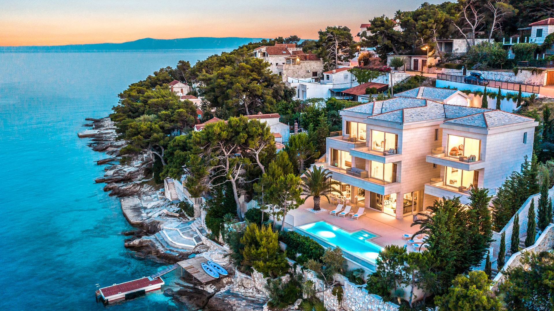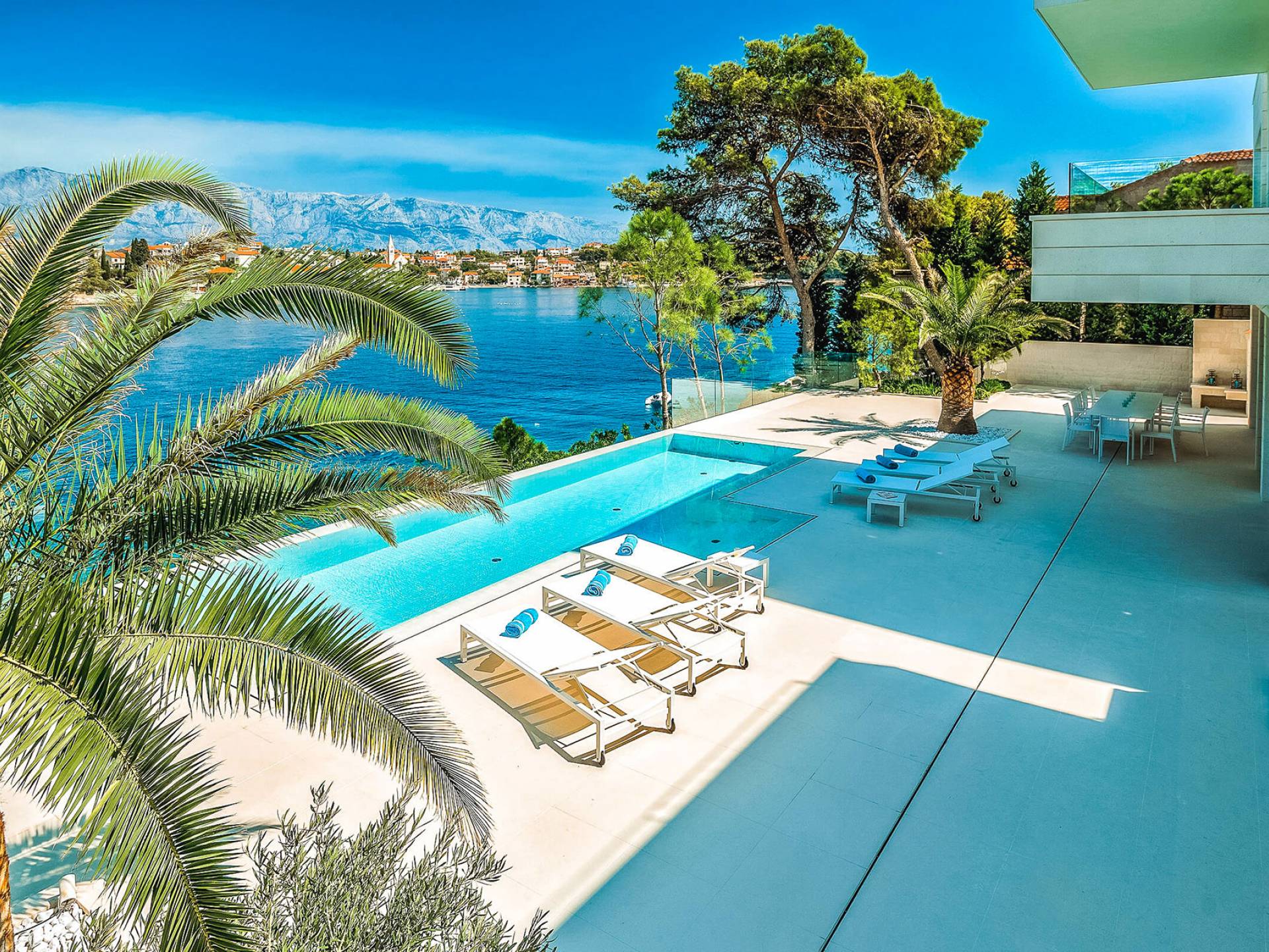 Villa Mila Brac is a newly built modern waterfront villa with a living area of 550 square meters. It is located in Sumartin, a small fishing village on the island of Brač. With 6 bedrooms and 7 bathrooms, this 5-star villa can accommodate up to 12 guests. Amongst others the villa offers an infinity-edge swimming pool, a gym room, a sauna, and a floating dock with moorings.