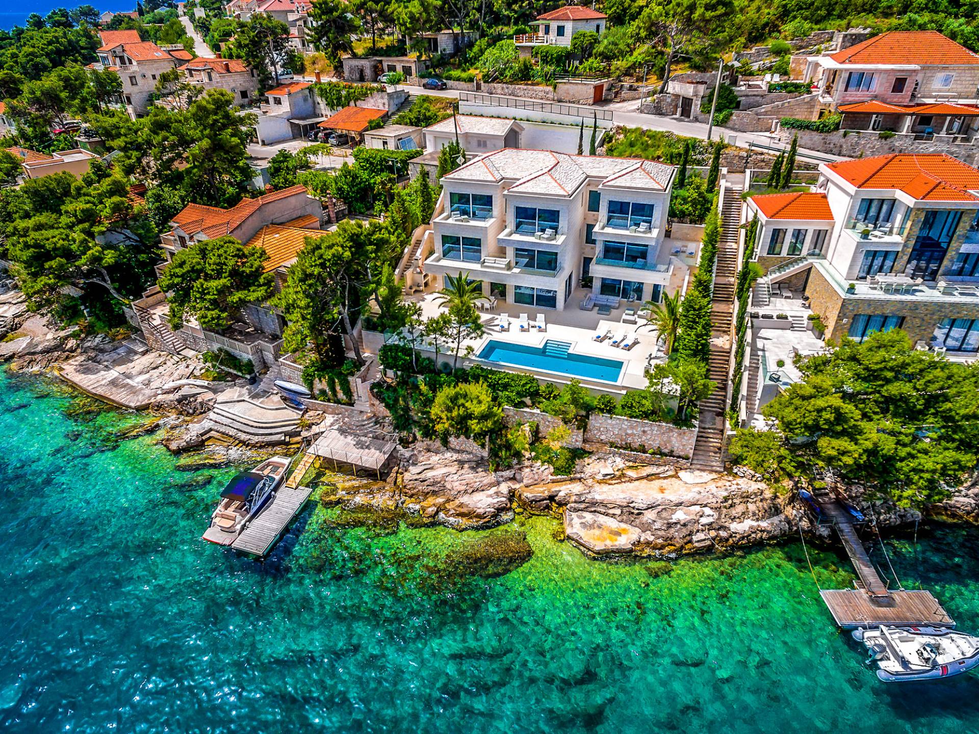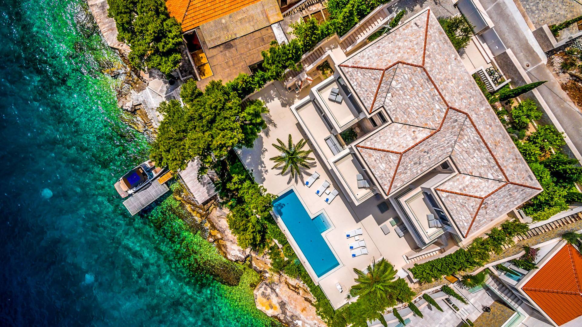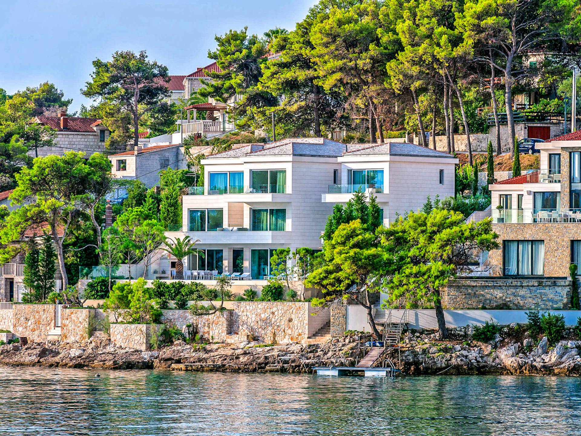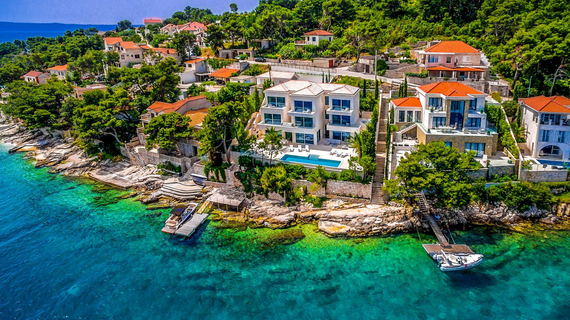 Villa Mila Brac is a newly built modern waterfront villa with a living area of 550 square meters. It is located in Sumartin, a small fishing village on the island of Brač. With 6 bedrooms and 7 bathrooms, this 5-star villa can accommodate up to 12 guests. Amongst others the villa offers an infinity-edge swimming pool, a gym room, a sauna, and a floating dock with moorings.