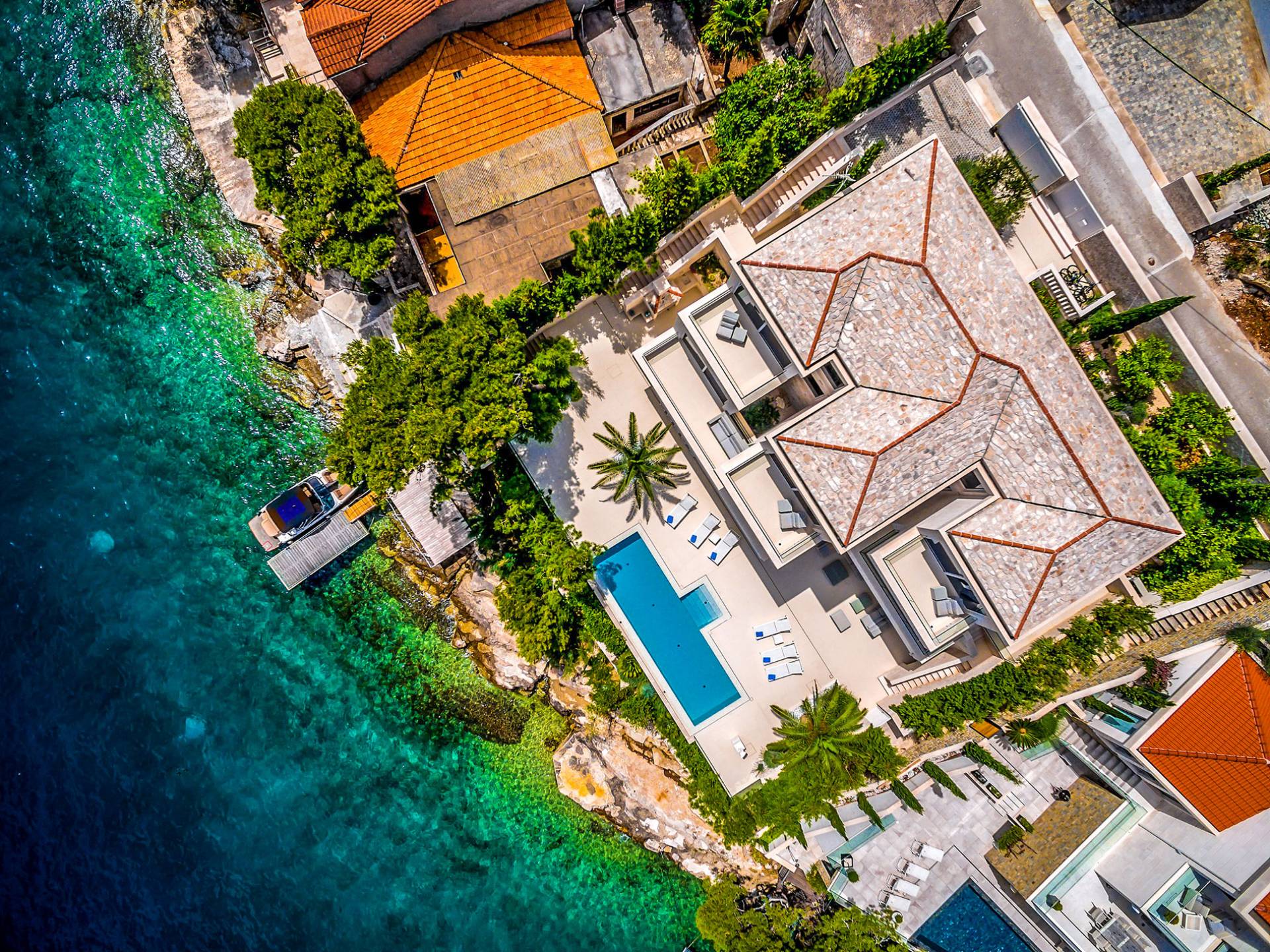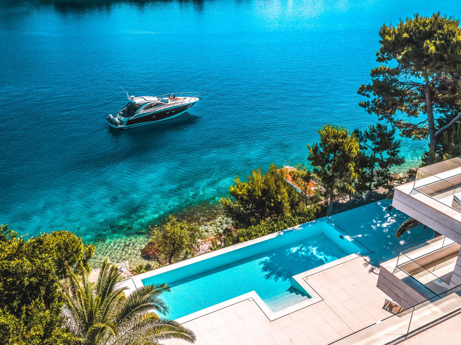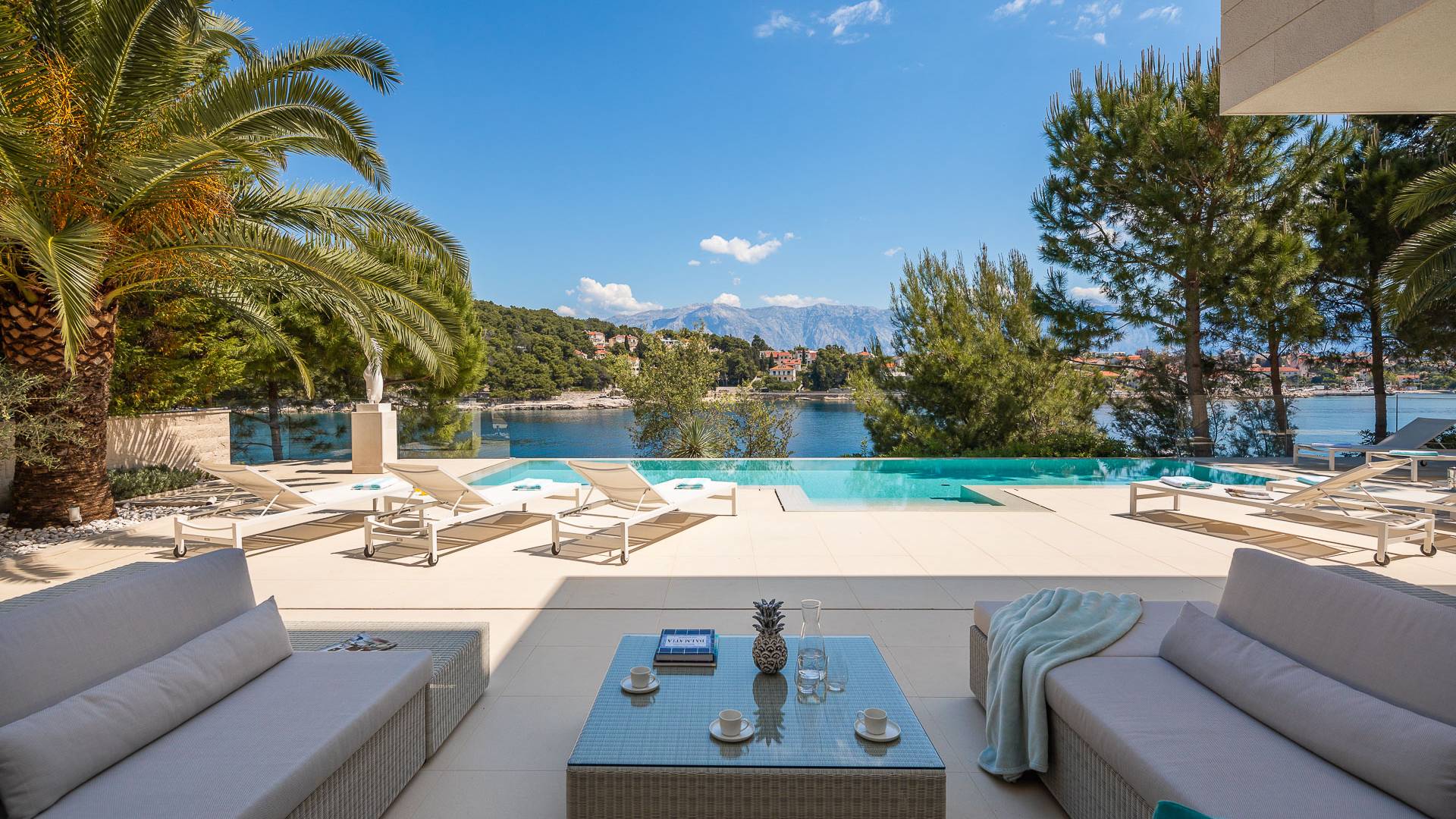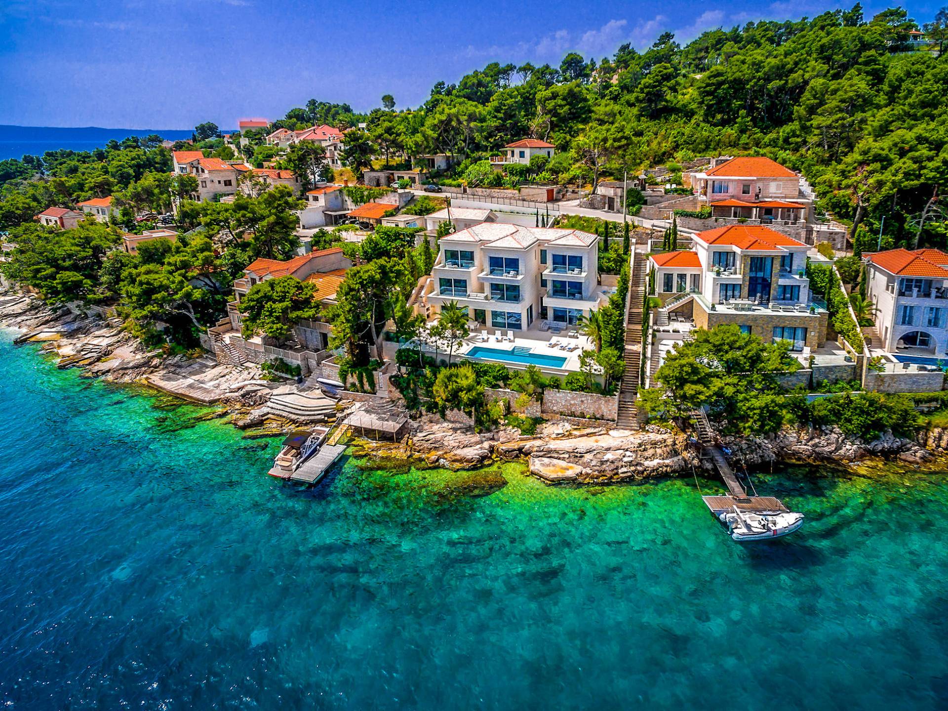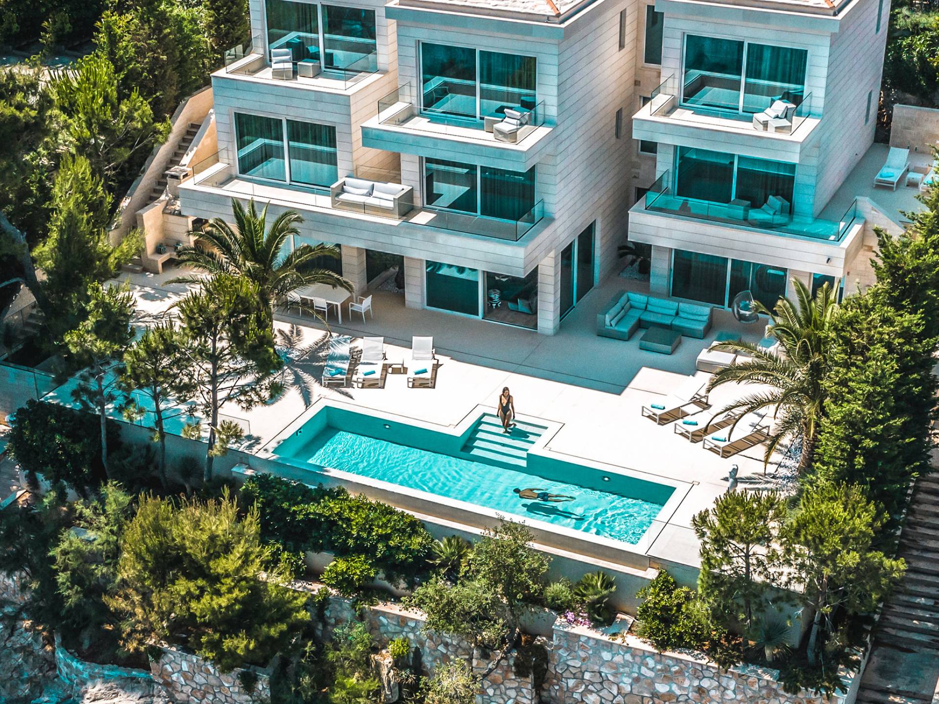 Villa Mila Brac is a newly built modern waterfront villa with a living area of 550 square meters. It is located in Sumartin, a small fishing village on the island of Brač. With 6 bedrooms and 7 bathrooms, this 5-star villa can accommodate up to 12 guests. Amongst others the villa offers an infinity-edge swimming pool, a gym room, a sauna, and a floating dock with moorings.