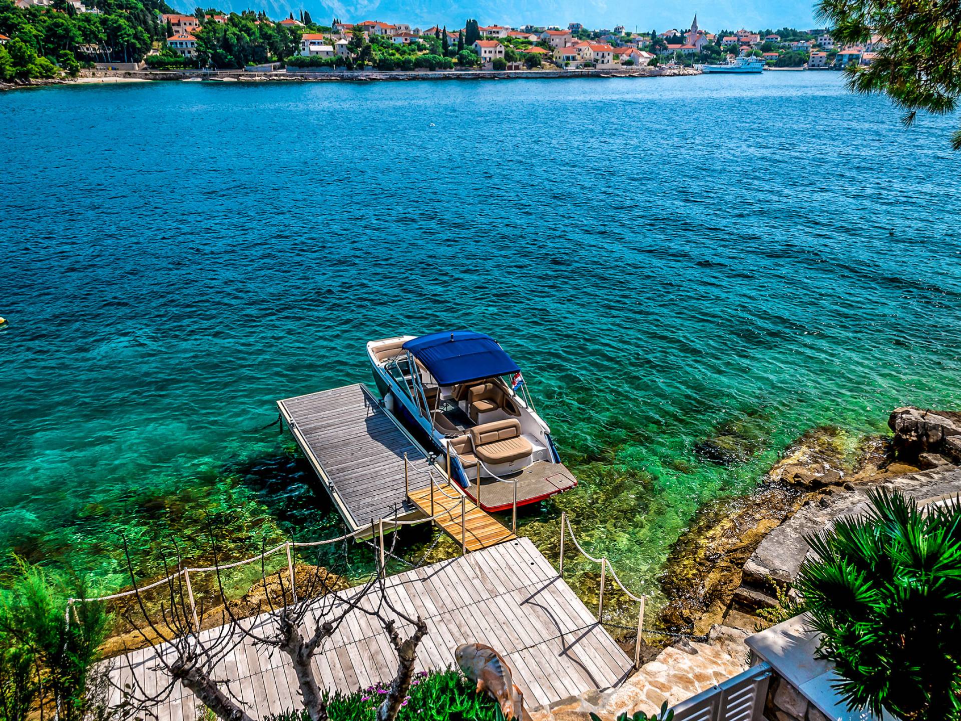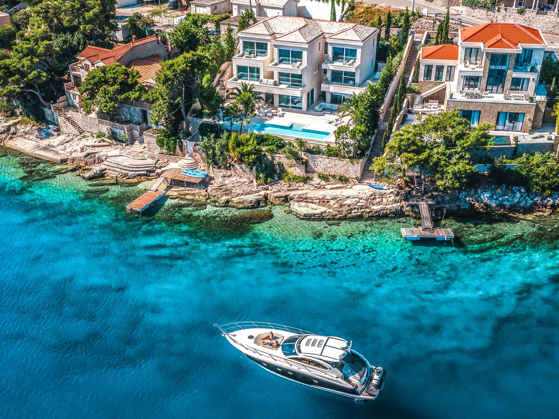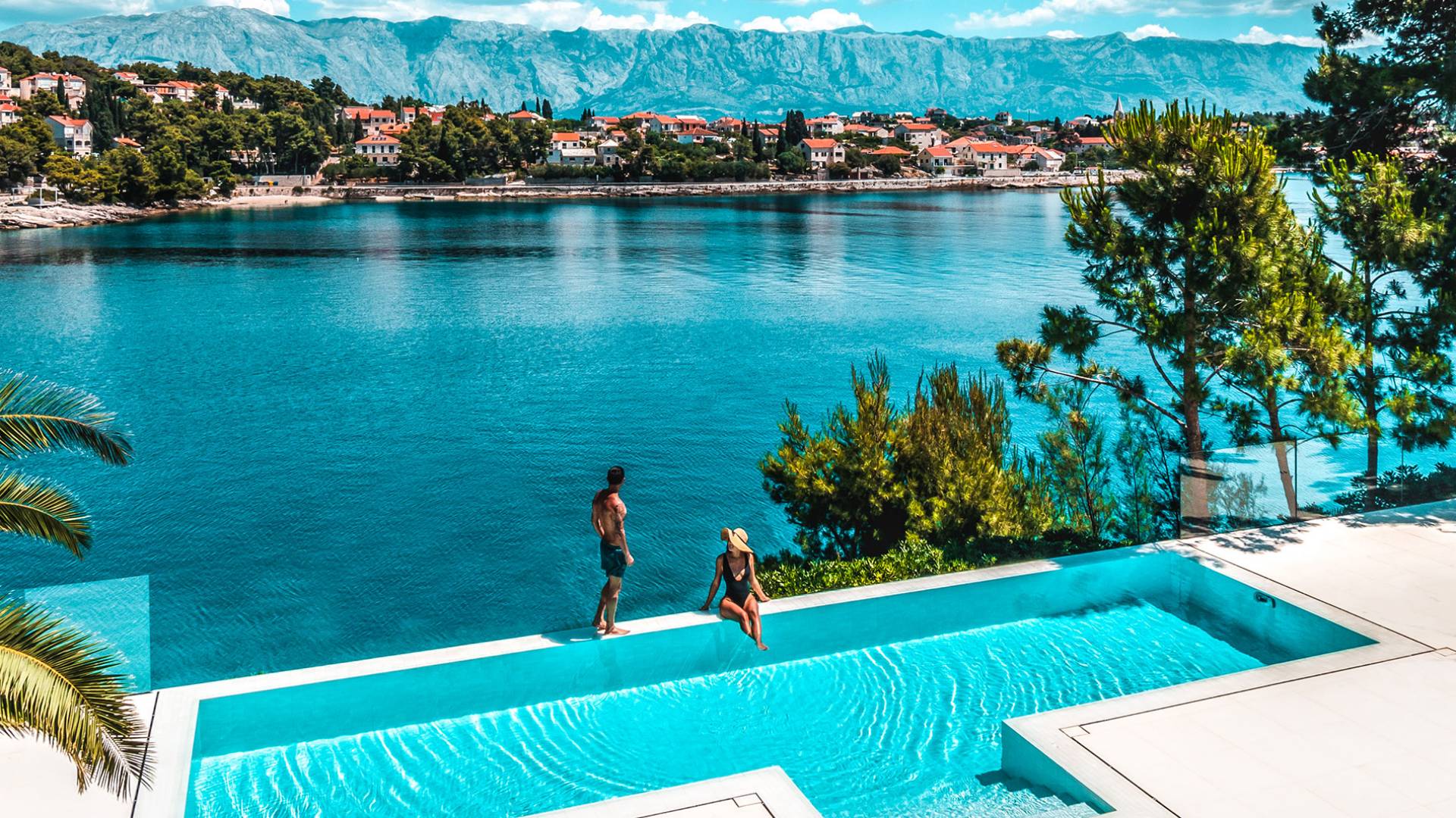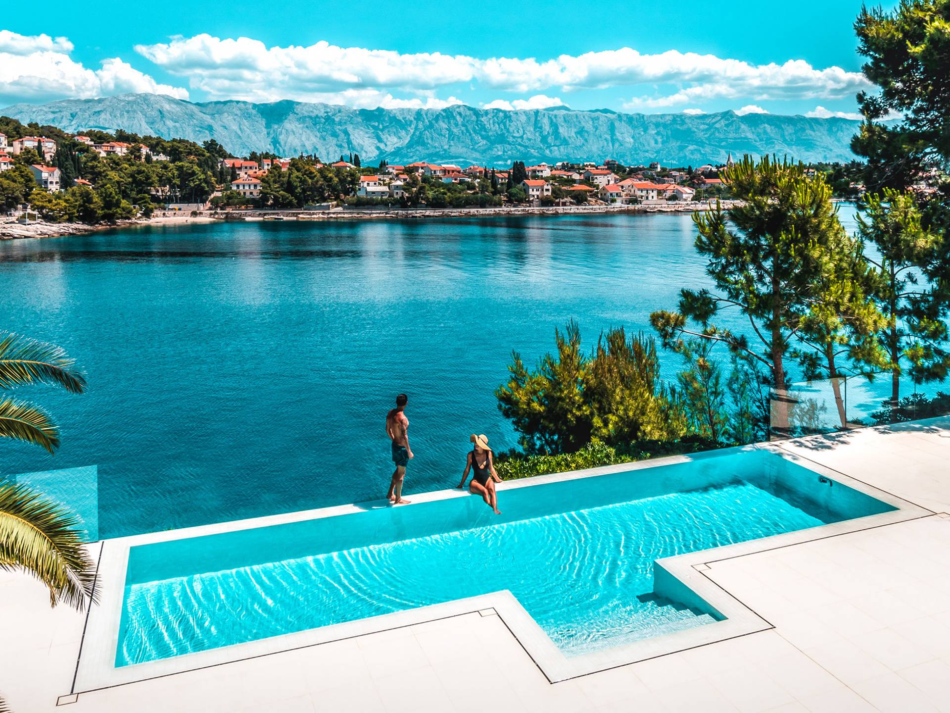 Villa Mila Brac is a newly built modern waterfront villa with a living area of 550 square meters. It is located in Sumartin, a small fishing village on the island of Brač. With 6 bedrooms and 7 bathrooms, this 5-star villa can accommodate up to 12 guests. Amongst others the villa offers an infinity-edge swimming pool, a gym room, a sauna, and a floating dock with moorings.