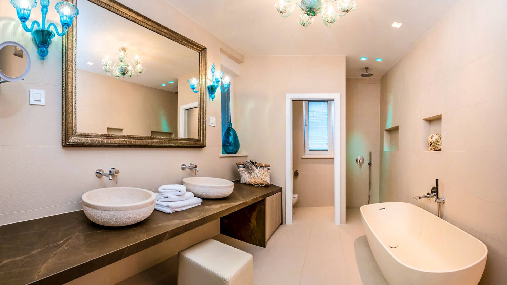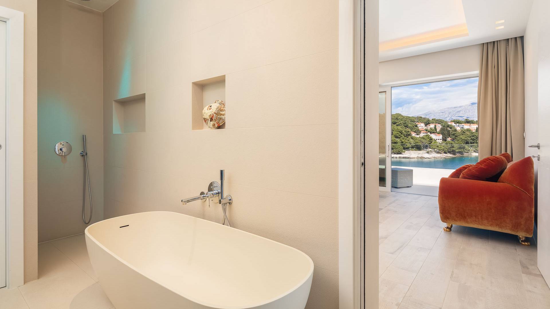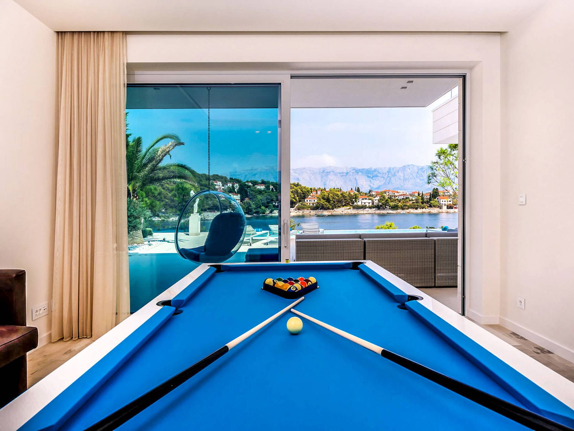 Villa Mila Brac is also equipped with an elevator (Thyssen Krupp) and has one bedroom which specifically fits disabled people. Villa Mila is fully staffed with maids and a manager, acting also as a concierge who speaks 3 different languages (English, German, Croatian). This modern six-bedroom, the seven-bathroom villa can conveniently accommodate up to 12 guests. Each room has its own terrace, a king-size bed (of which 4 are separable), an ensuite bathroom, and high-speed internet.