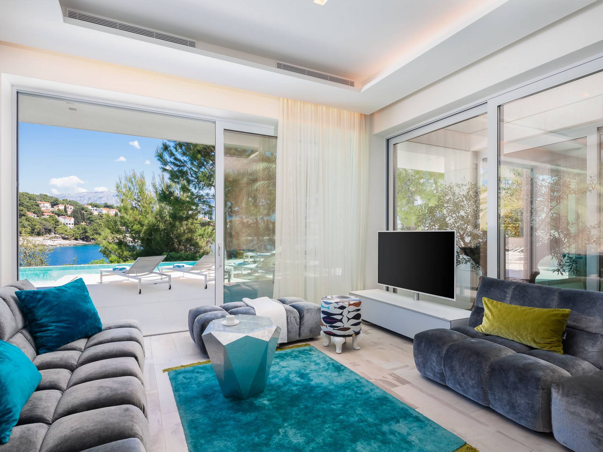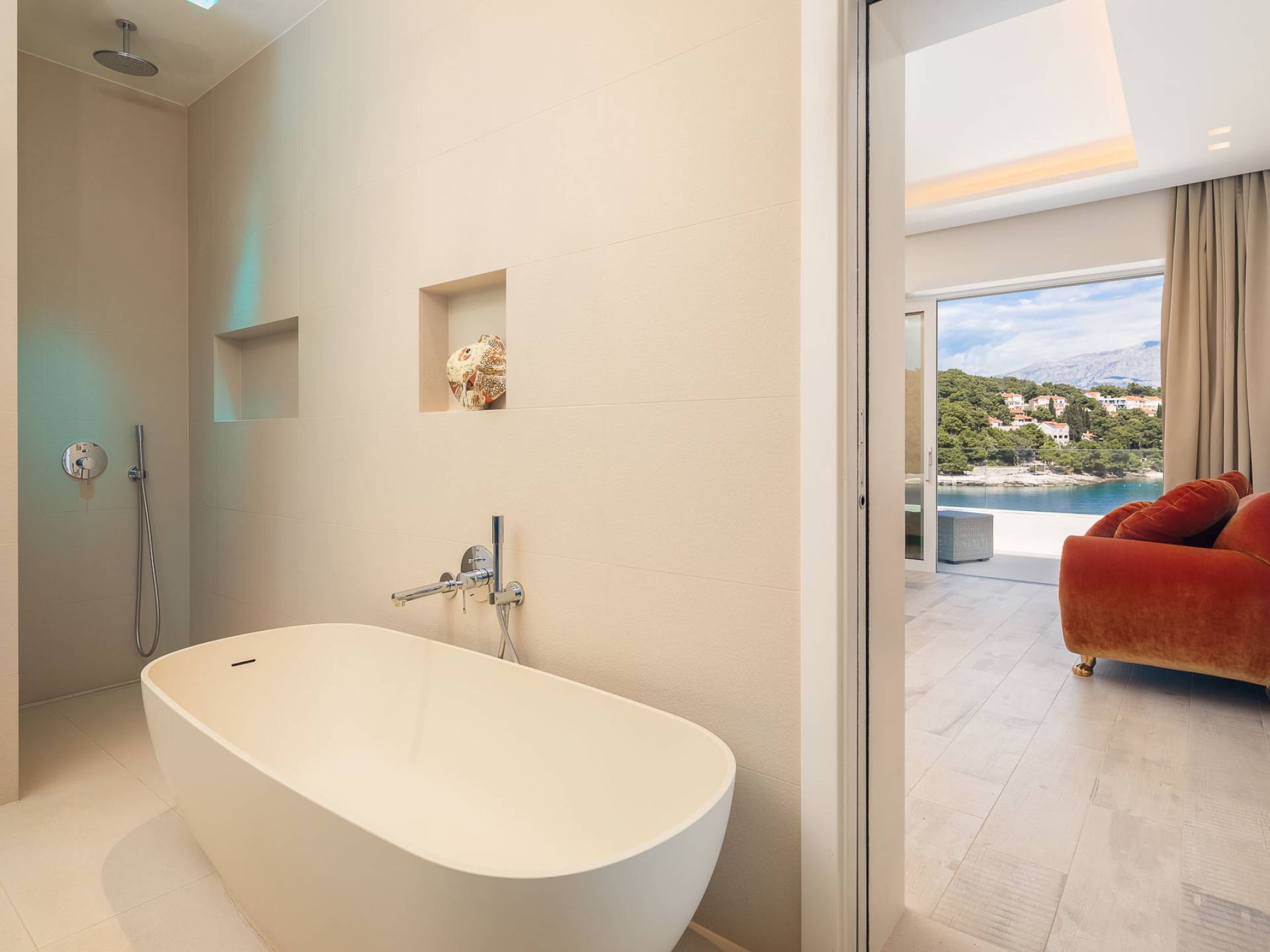 The layout is perfect for families or large groups. Designed with great attention to detail by a Croatian architect, Villa Mila combines local materials, like the famous Brač stone and top-quality furniture from all over the world in order to create a nice ambiance for its guests. The generous use of glass and sliding window doors ensure the breath-taking sea view is preserved in every room.