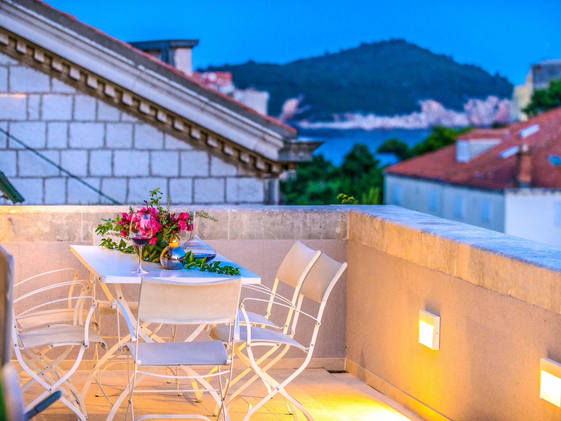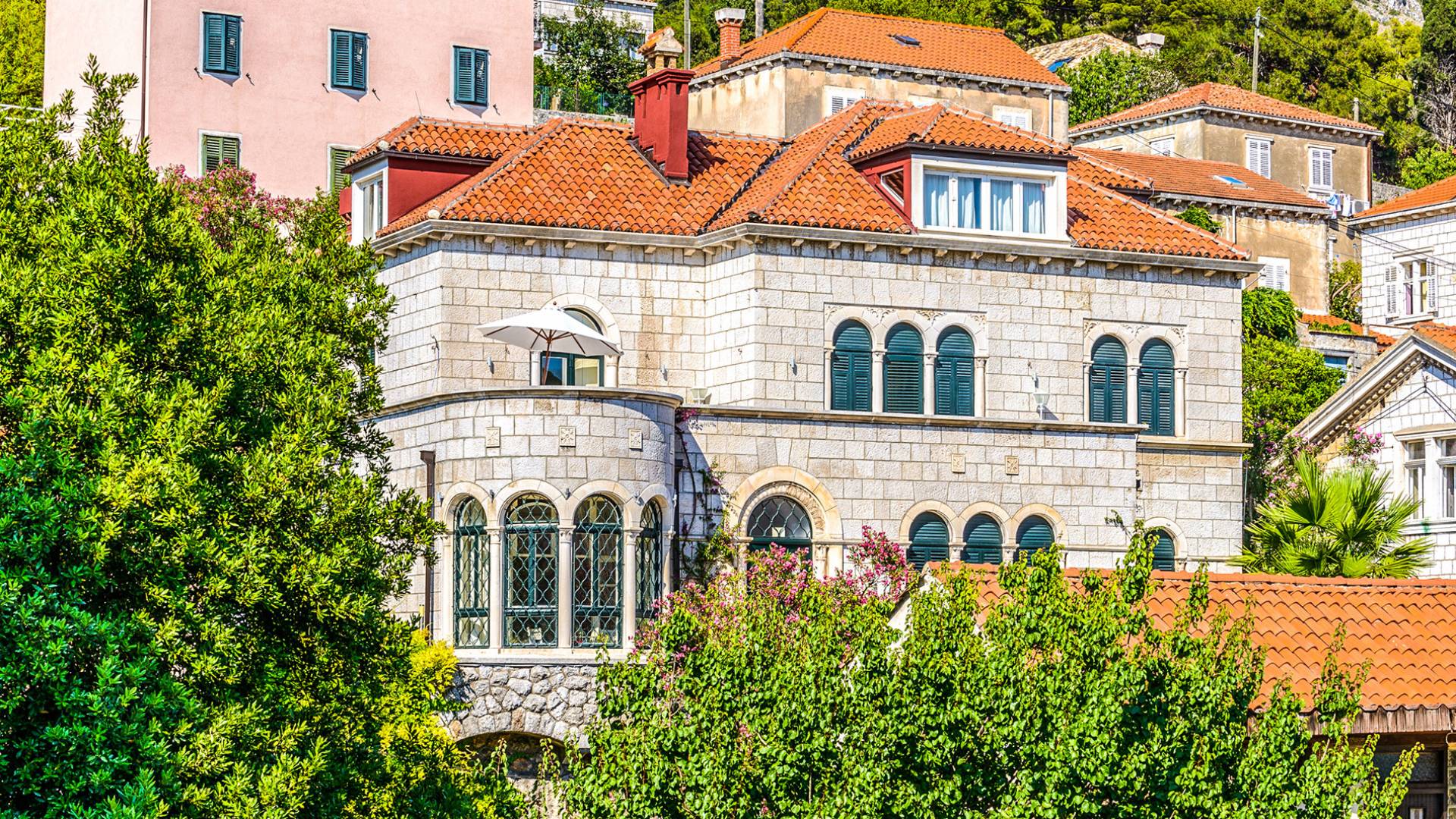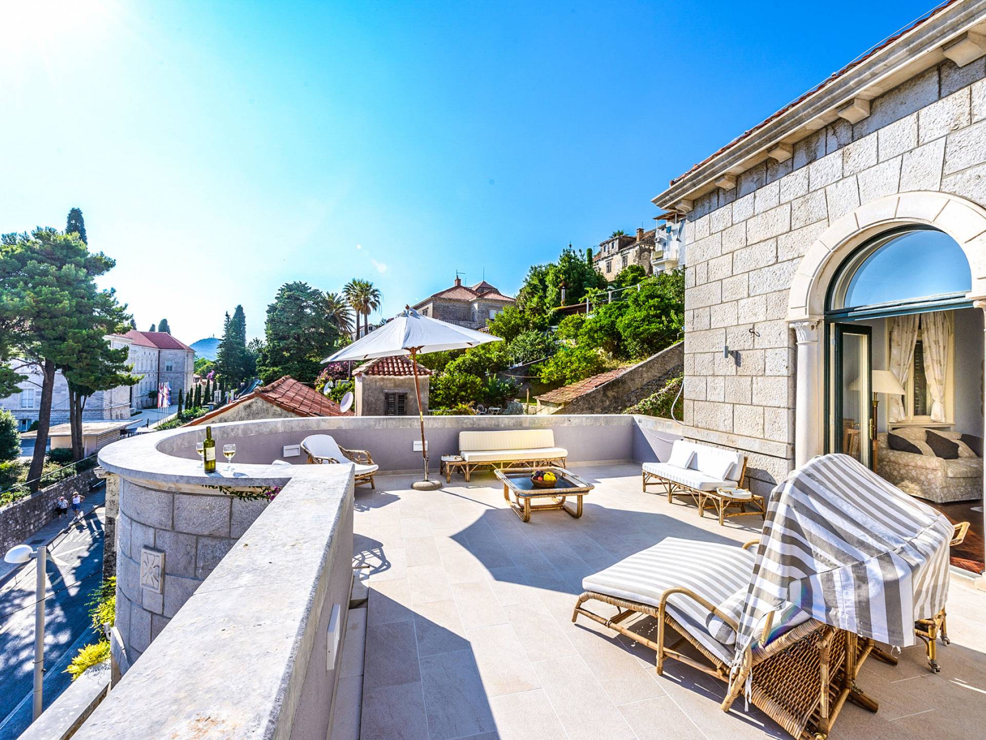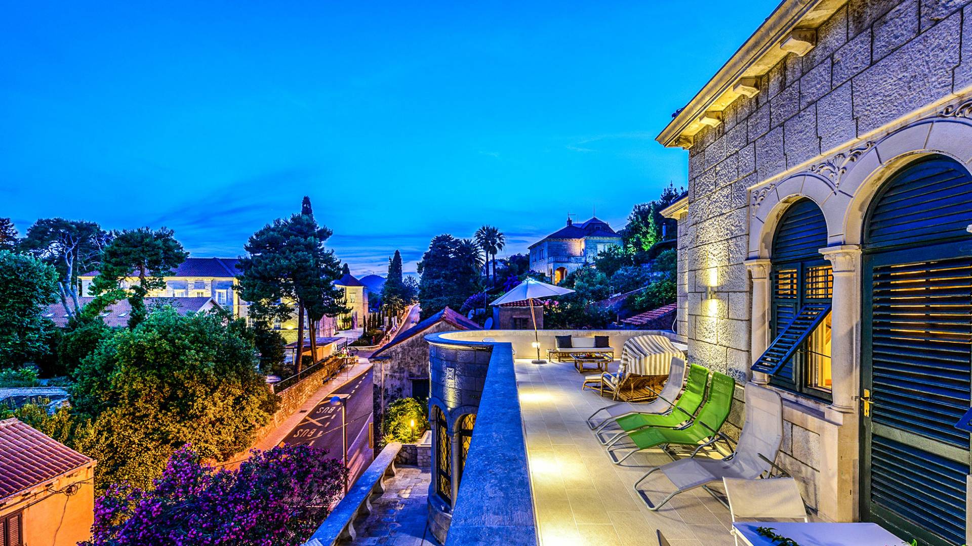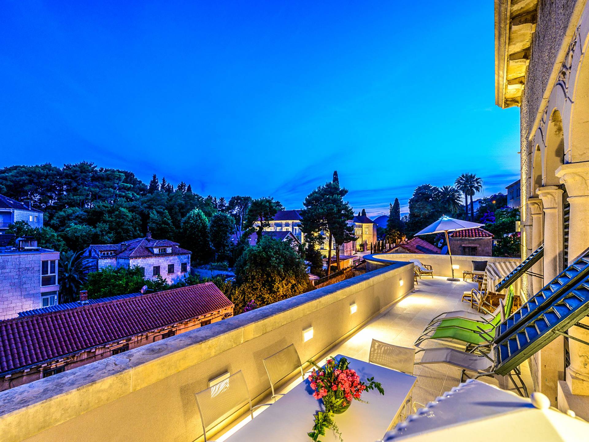 The views from the terrace brim with impressive samples of the 19th and 20th centuries architecture. The area surrounding the Villa was historically known as Dubrovnik's gardens, as the land around here had been cultivated as early as the 13th century. Following the expansion of residences outside the City Walls, imposing town villas were constructed here around the same time as the Villa Mediteran, hence the neighborhood glows with representative architecture. Across the street, the recently renovated Dubrovnik University building was originally a hospital, built in 1887 during the Austro-Hungarian period.