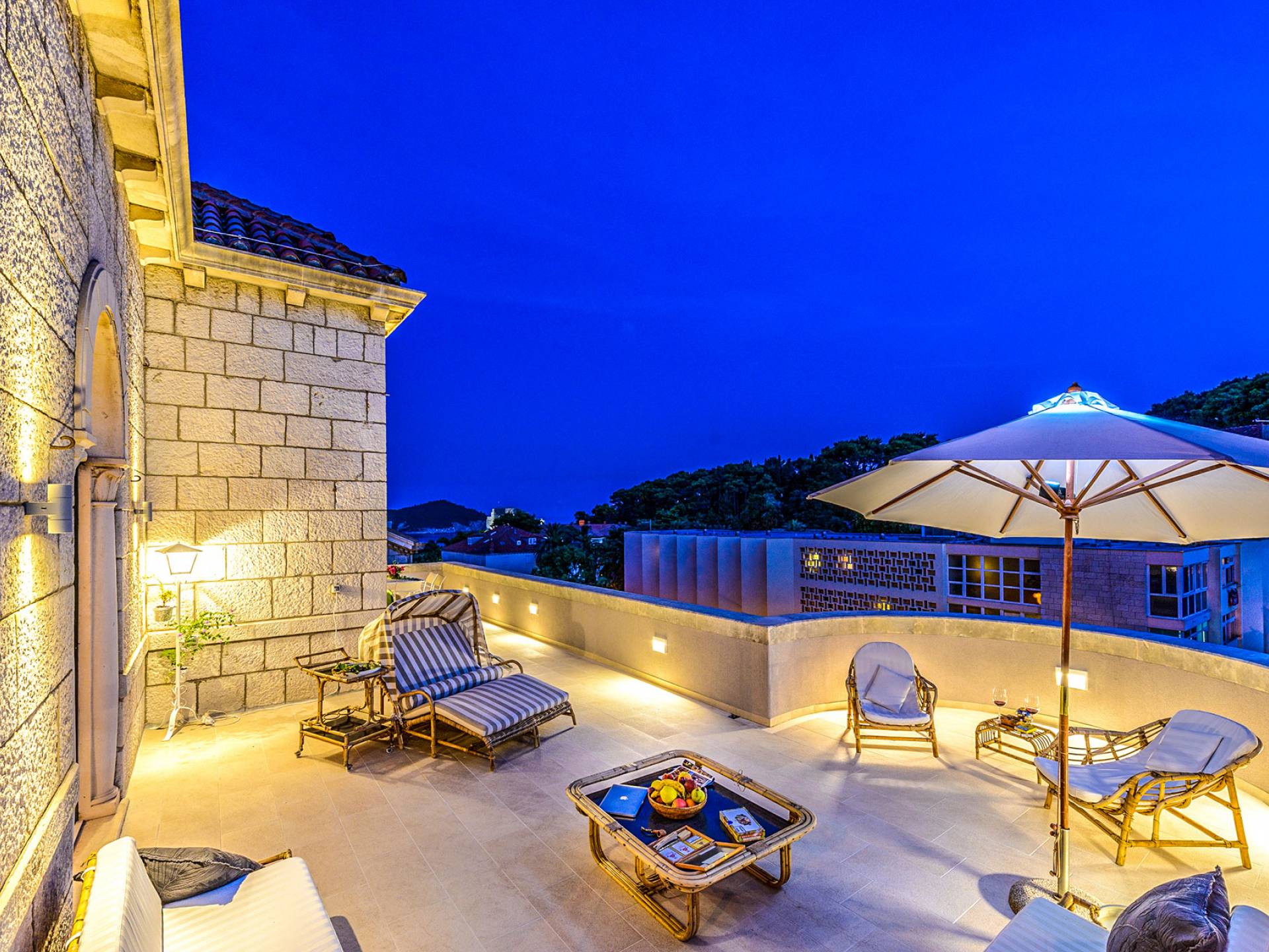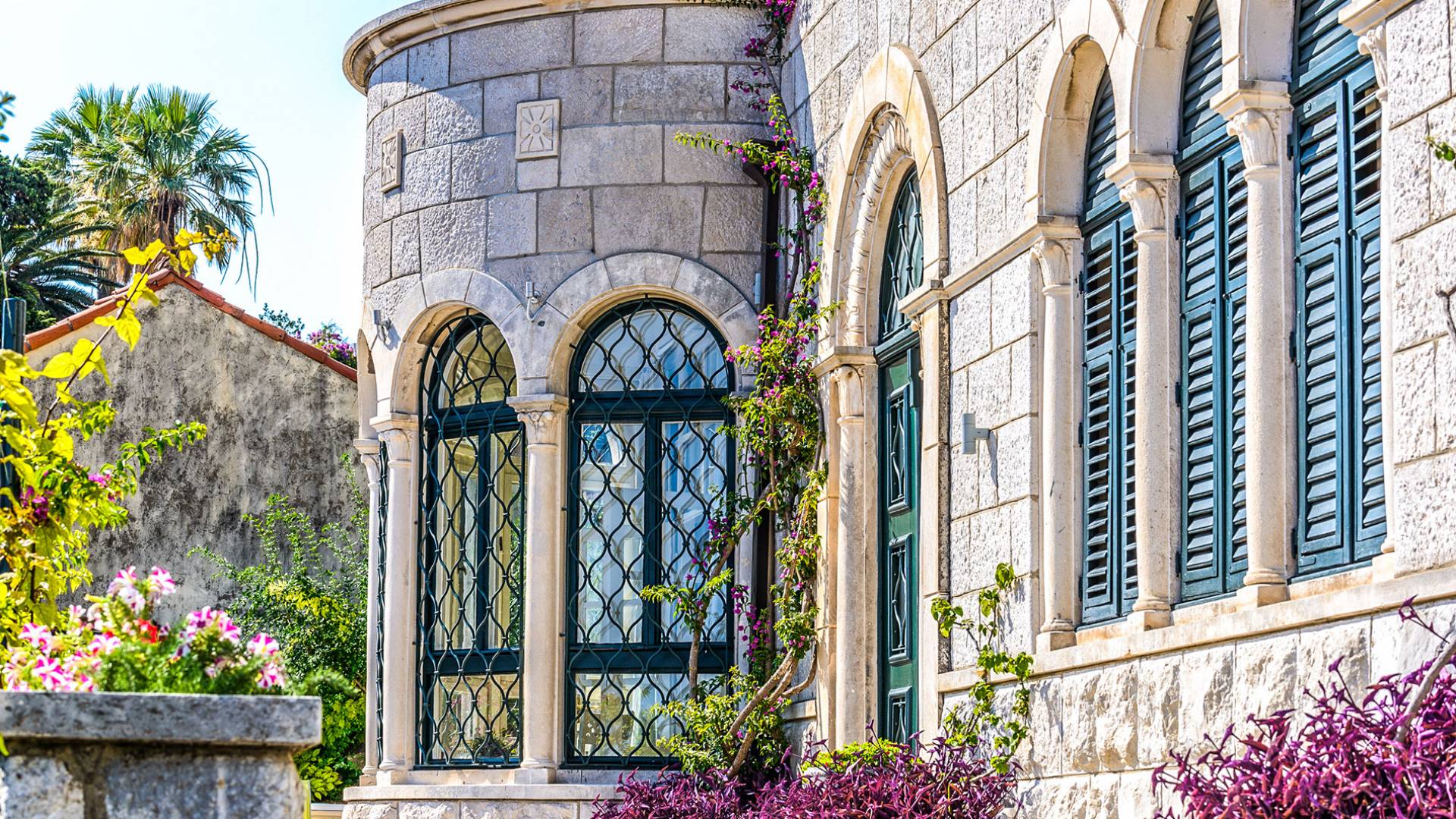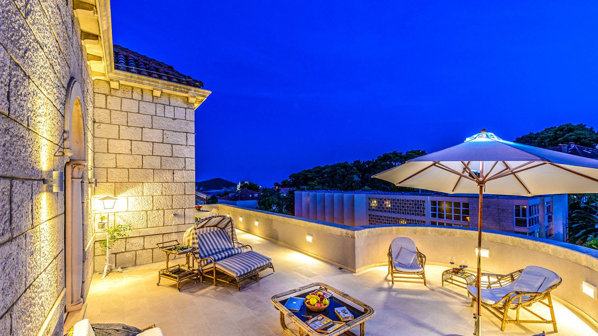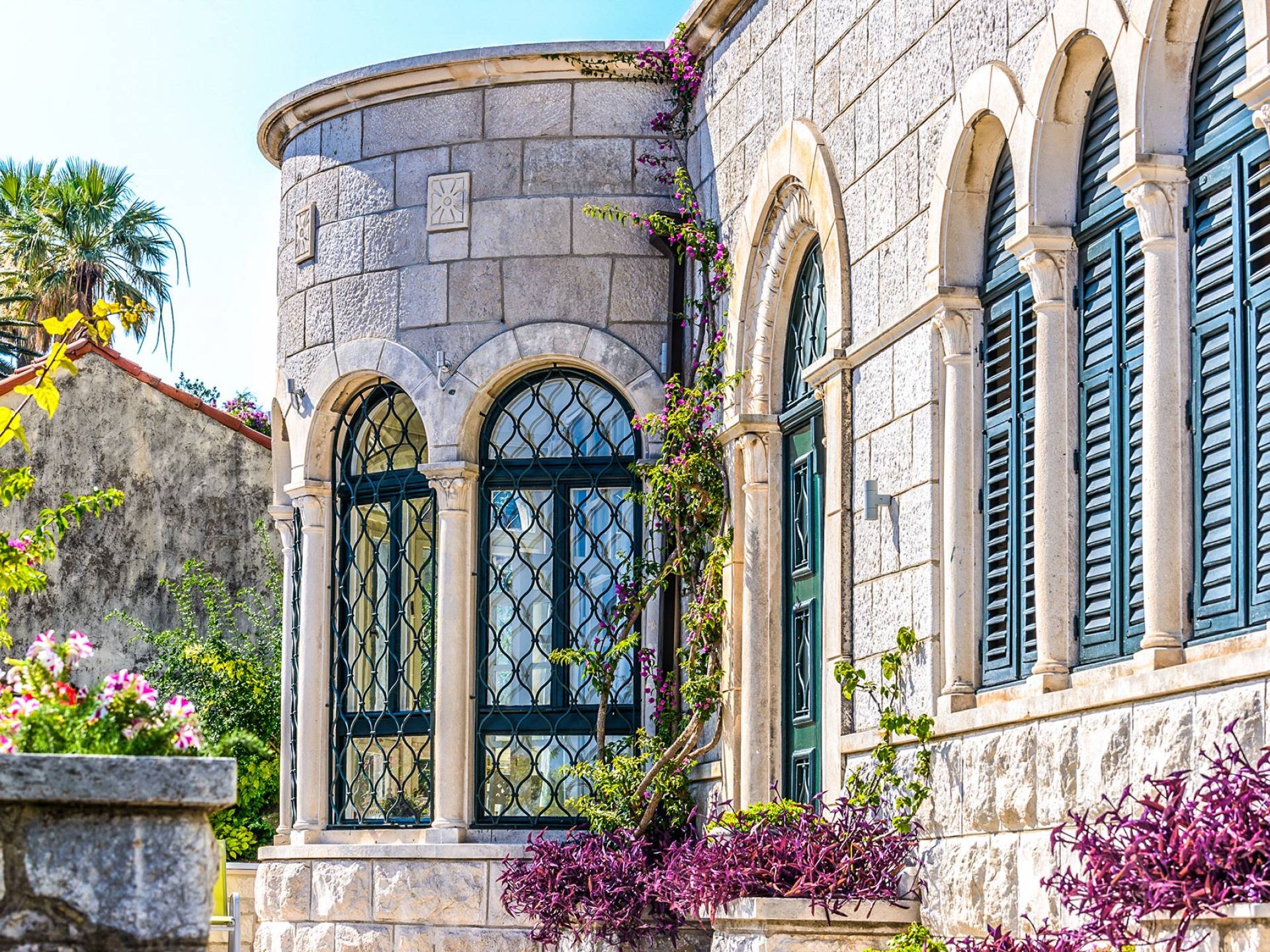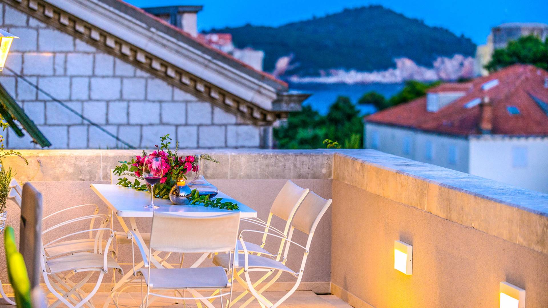The views from the terrace brim with impressive samples of the 19th and 20th centuries architecture. The area surrounding the Villa was historically known as Dubrovnik's gardens, as the land around here had been cultivated as early as the 13th century. Following the expansion of residences outside the City Walls, imposing town villas were constructed here around the same time as the Villa Mediteran, hence the neighborhood glows with representative architecture. Across the street, the recently renovated Dubrovnik University building was originally a hospital, built in 1887 during the Austro-Hungarian period.