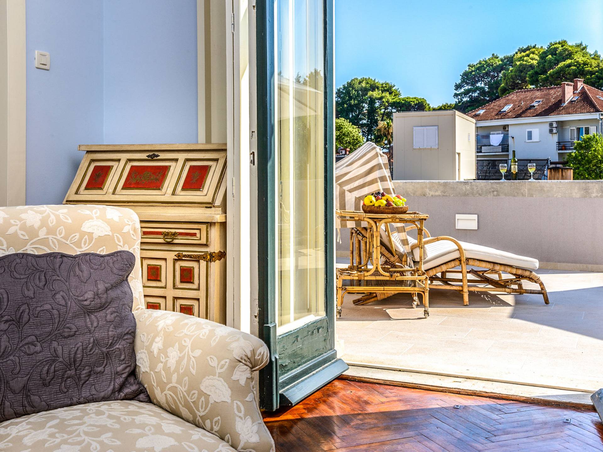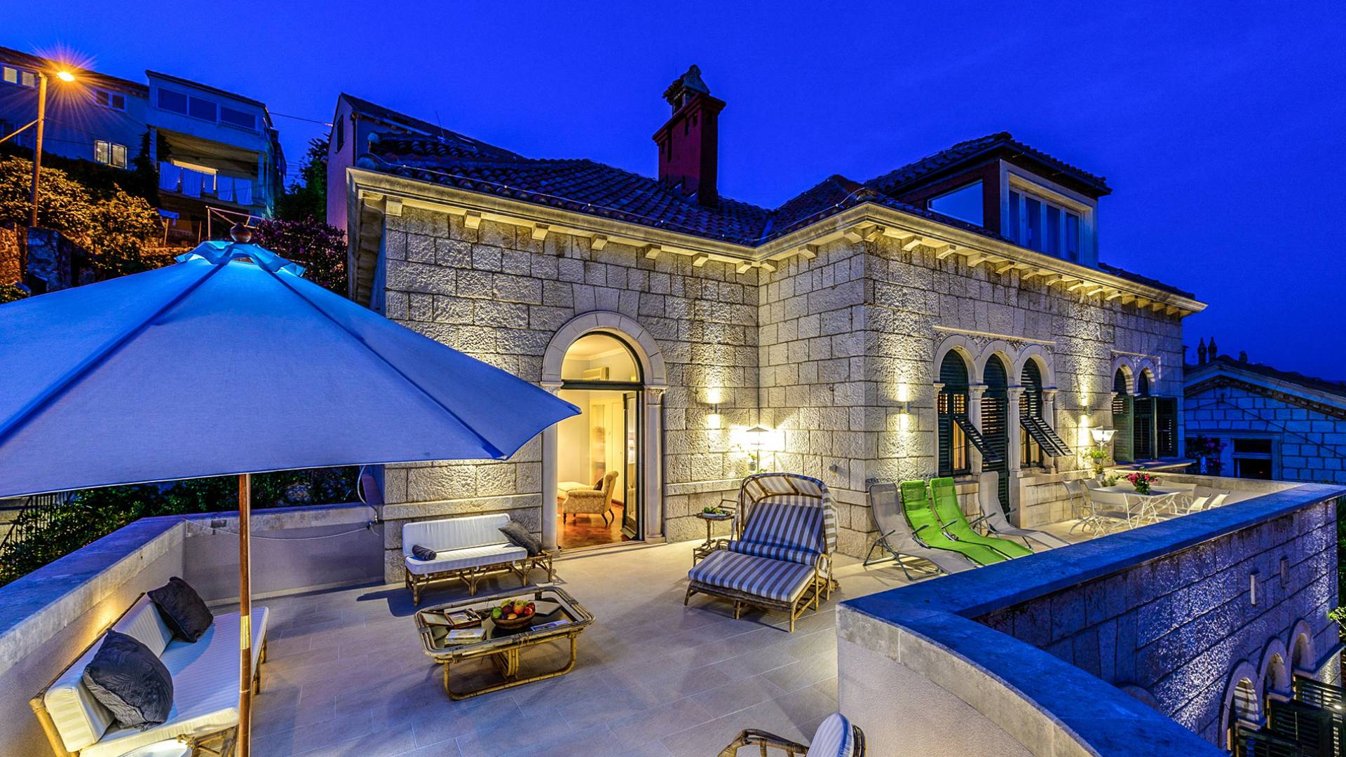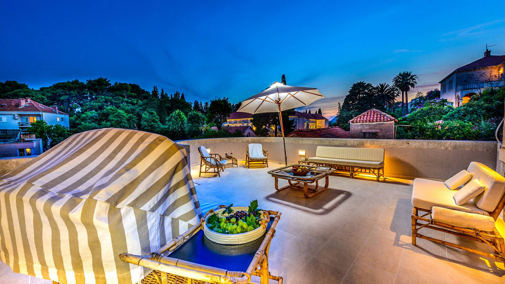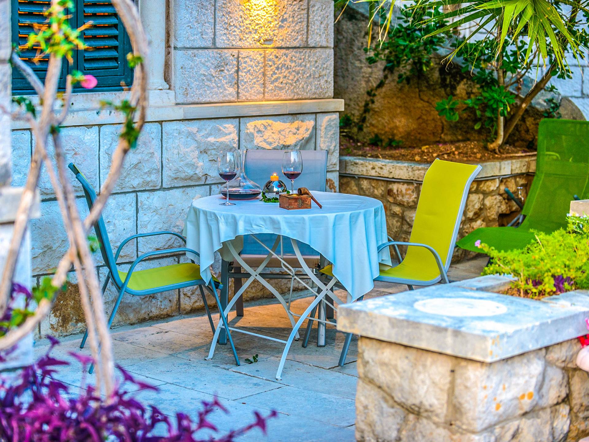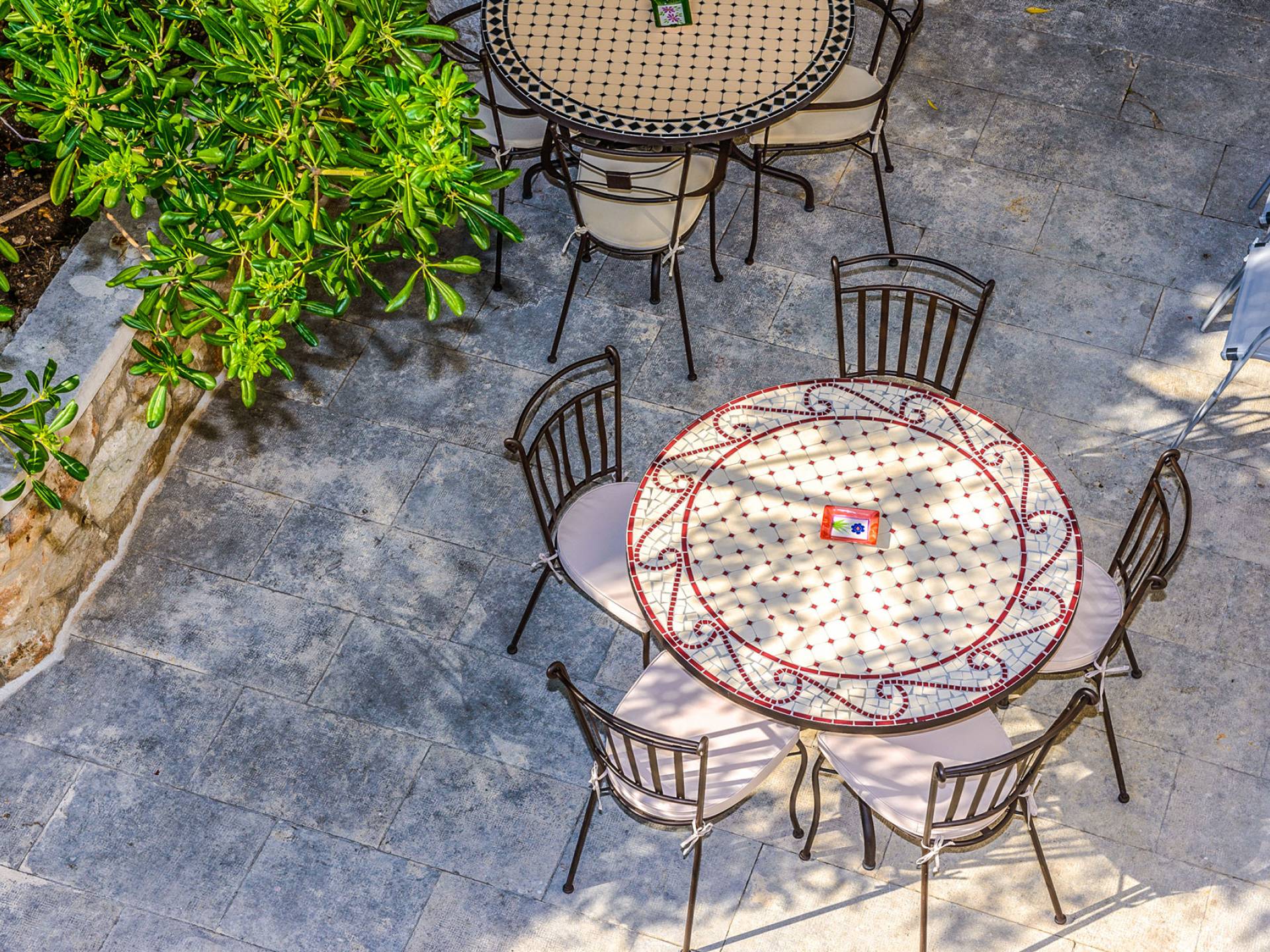 The views from the terrace brim with impressive samples of the 19th and 20th centuries architecture. The area surrounding the Villa was historically known as Dubrovnik's gardens, as the land around here had been cultivated as early as the 13th century. Following the expansion of residences outside the City Walls, imposing town villas were constructed here around the same time as the Villa Mediteran, hence the neighborhood glows with representative architecture. Across the street, the recently renovated Dubrovnik University building was originally a hospital, built in 1887 during the Austro-Hungarian period.