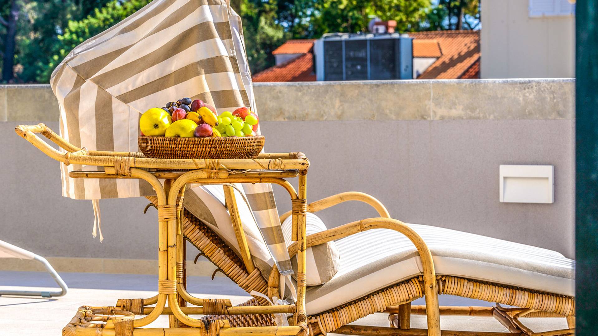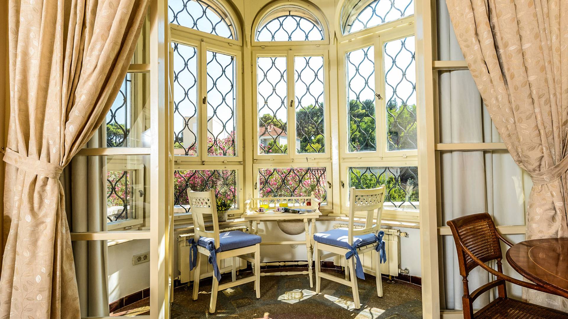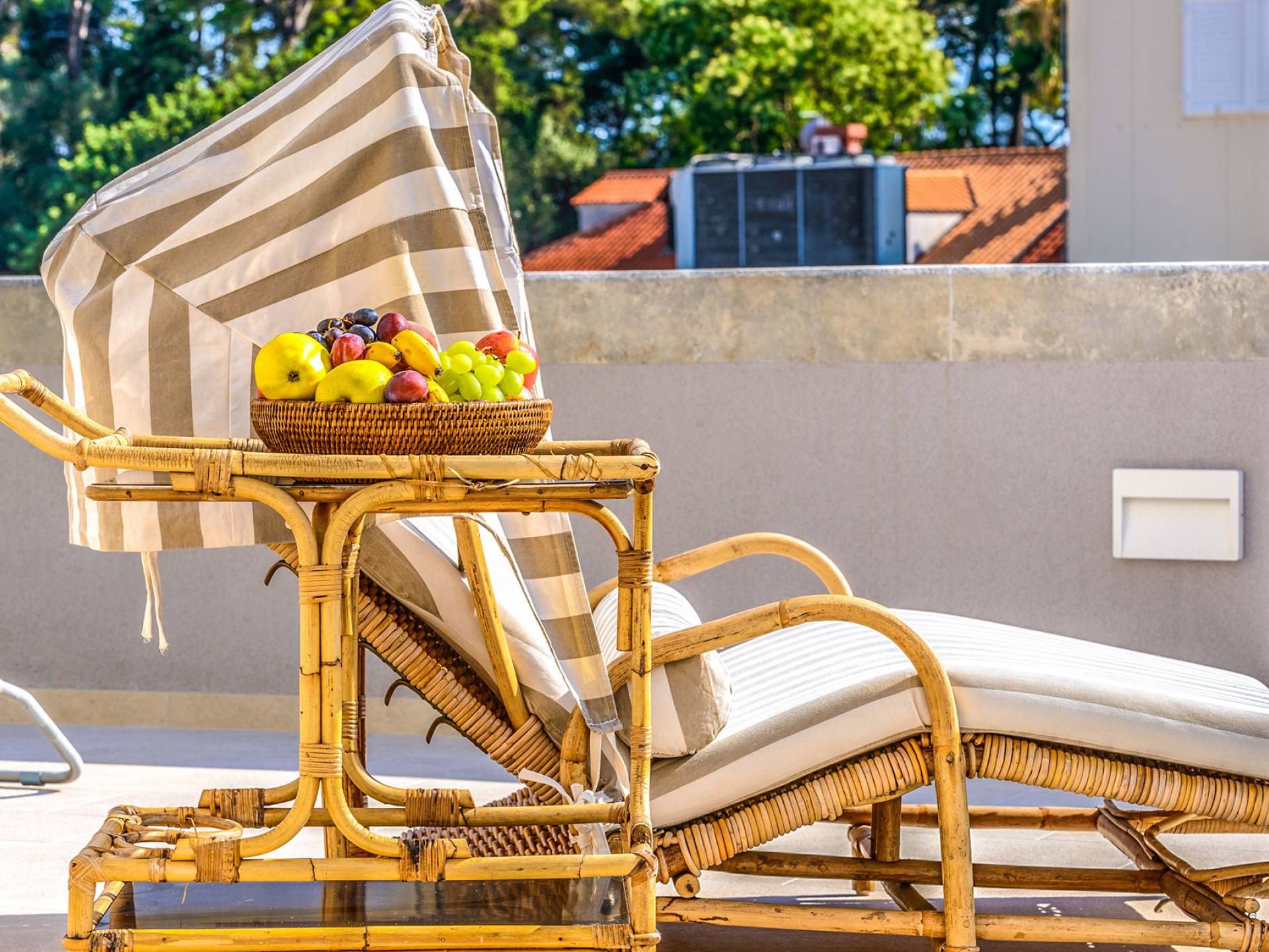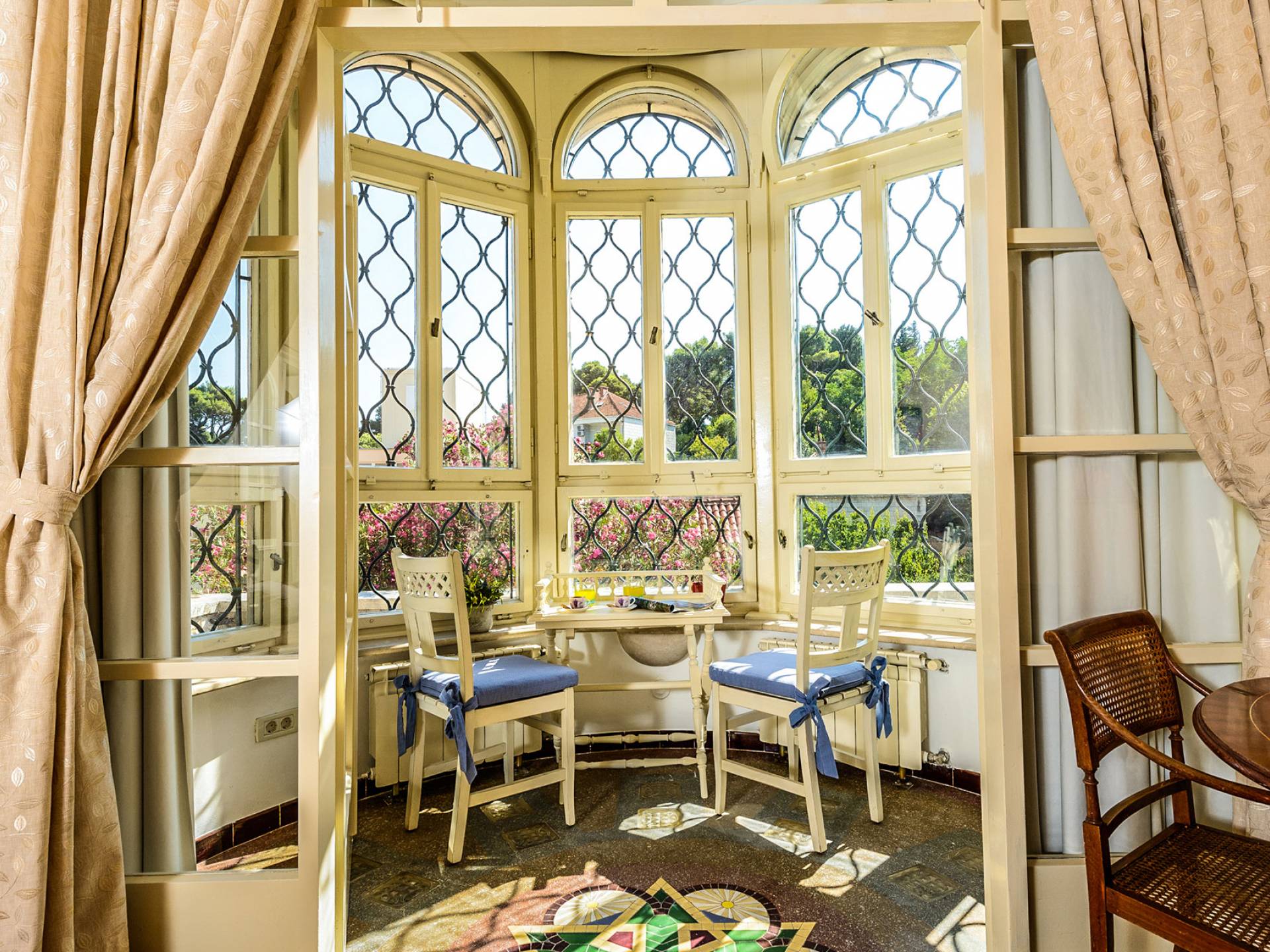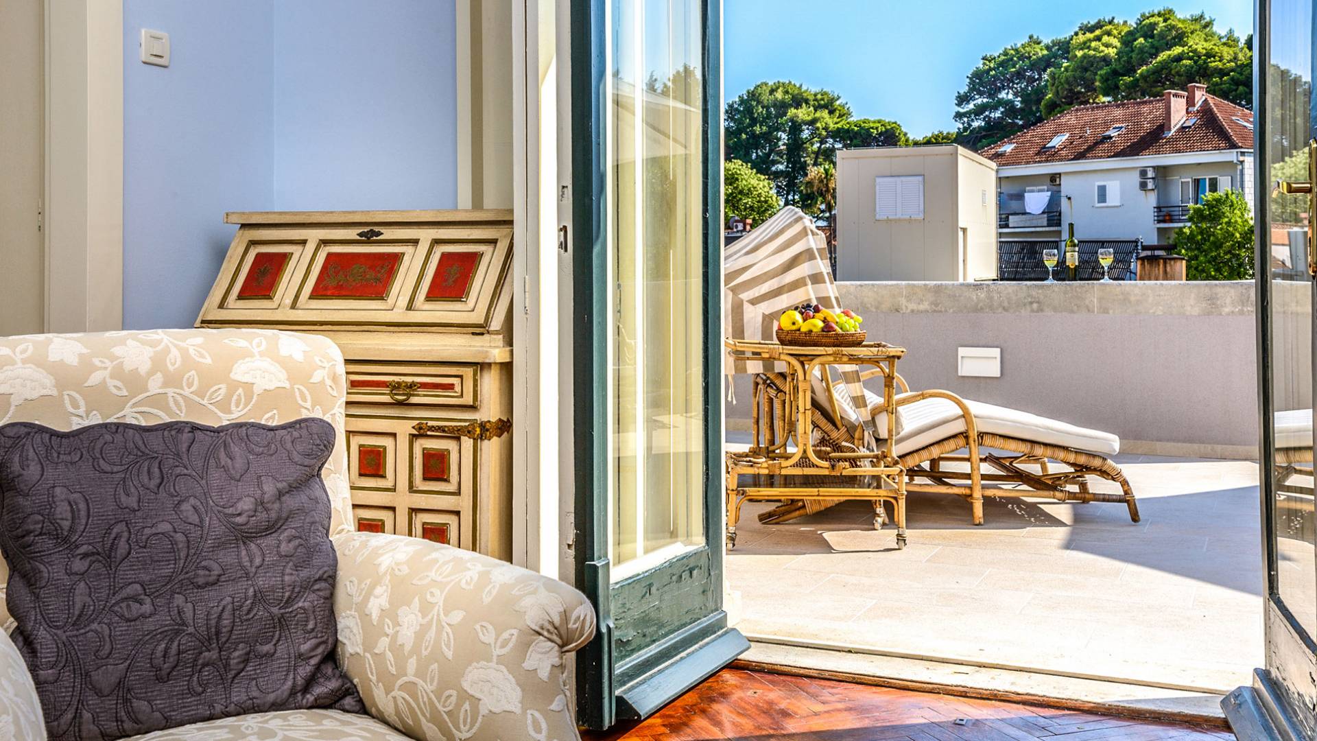 The views from the terrace brim with impressive samples of the 19th and 20th centuries architecture. The area surrounding the Villa was historically known as Dubrovnik's gardens, as the land around here had been cultivated as early as the 13th century. Following the expansion of residences outside the City Walls, imposing town villas were constructed here around the same time as the Villa Mediteran, hence the neighborhood glows with representative architecture. Across the street, the recently renovated Dubrovnik University building was originally a hospital, built in 1887 during the Austro-Hungarian period.