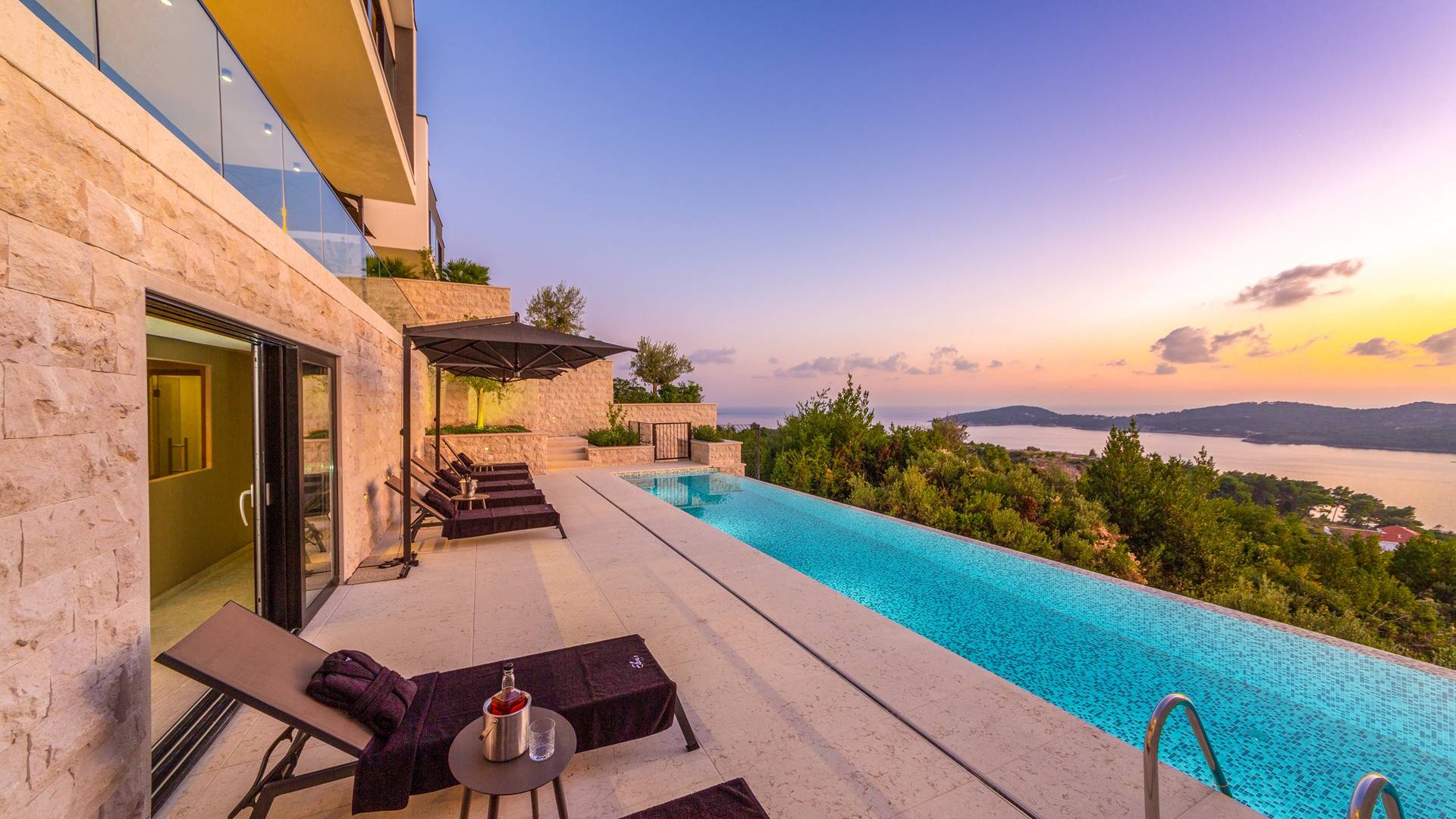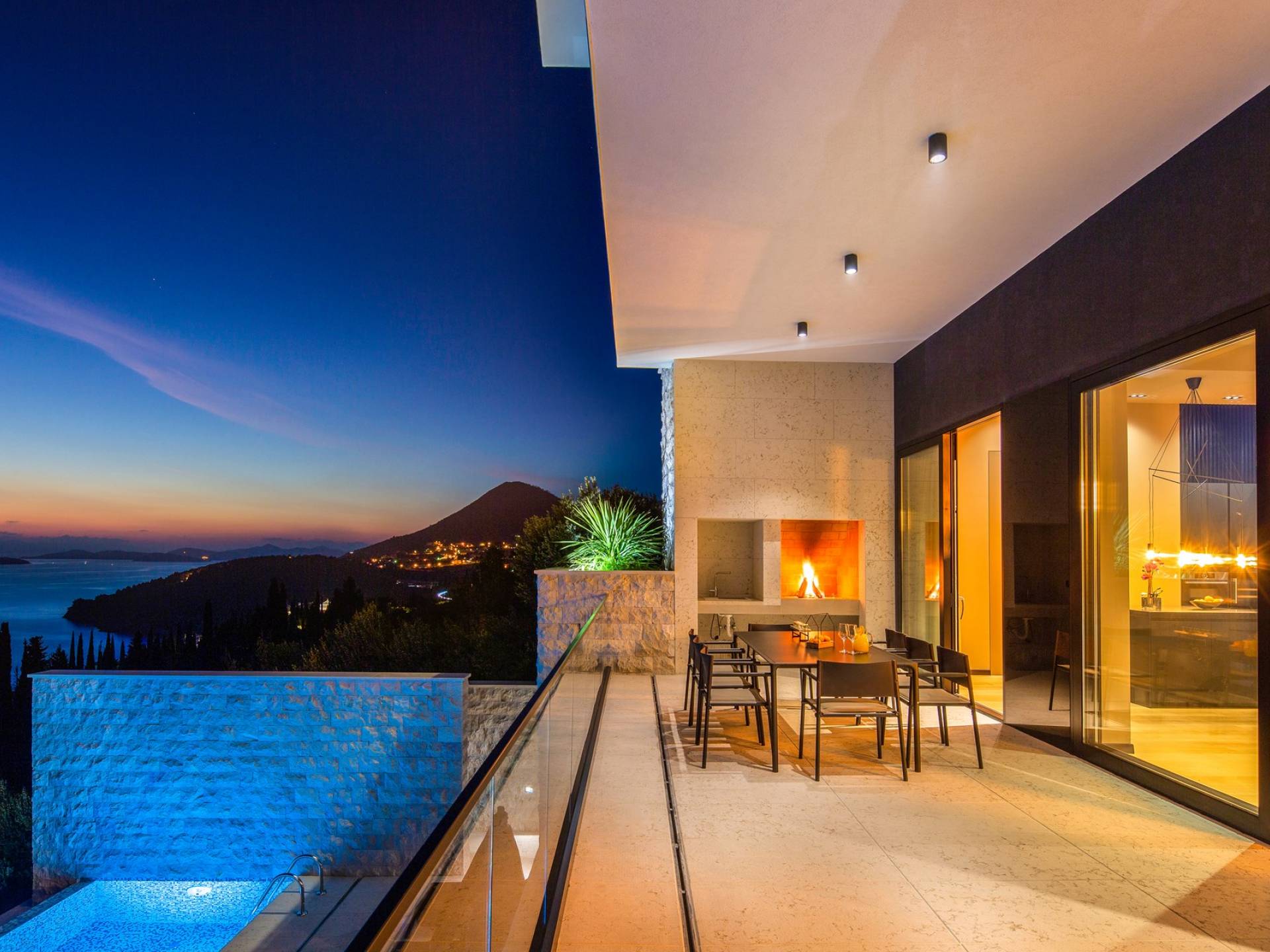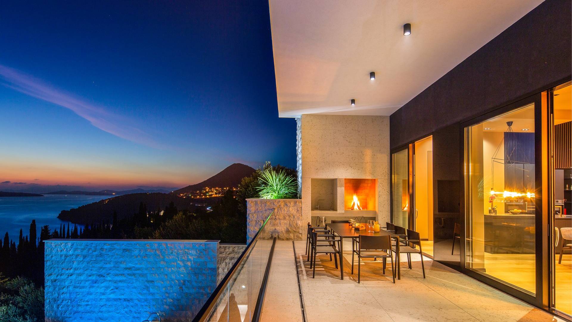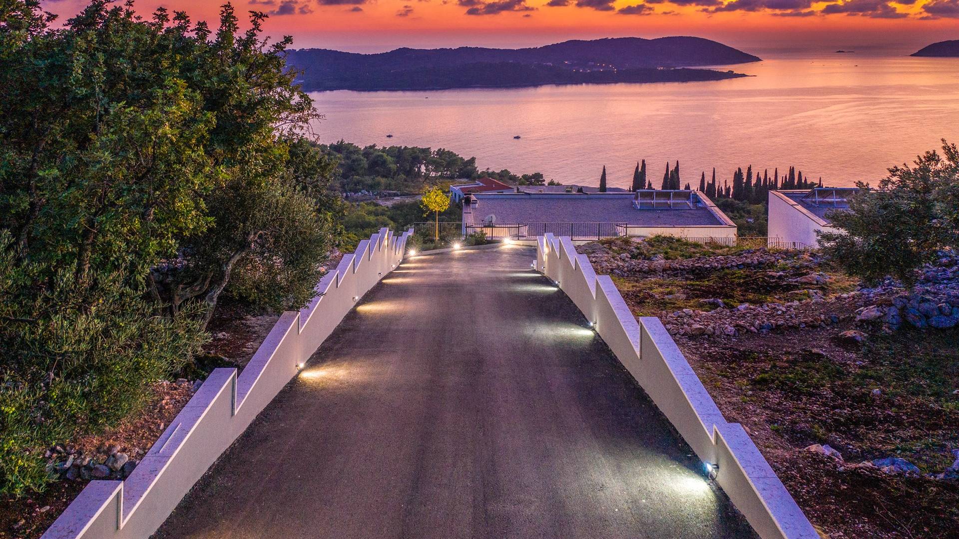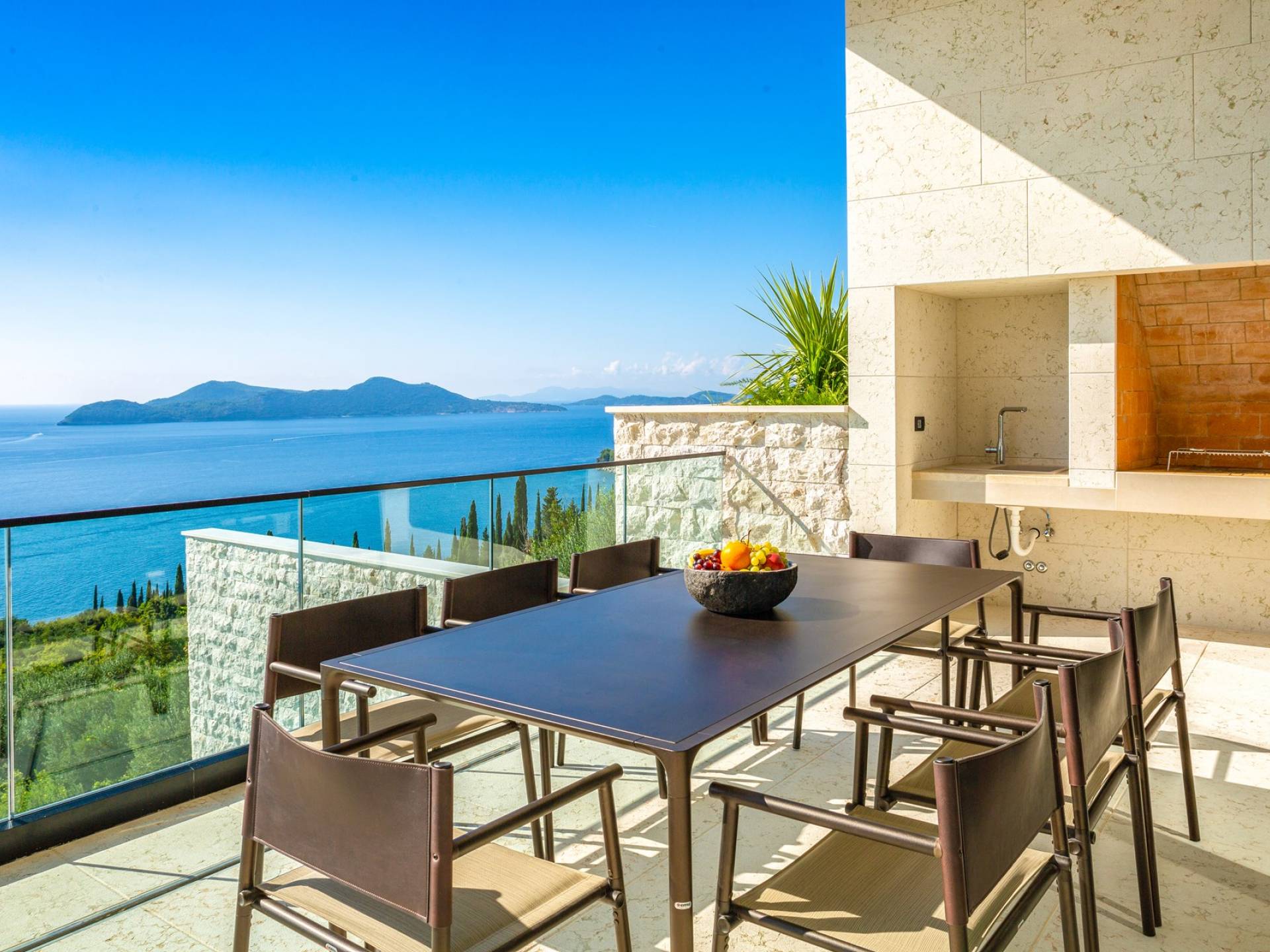 This newly built villa is a wonderful example of modern and innovative architecture; is spacious and airy, and high ceilings and glass walls give the feeling of freedom and open the view of the Dubrovnik islands. Opposites, ie the islands and the Adriatic Sea on one side and the surrounding hills on the other make Orasac unique. Amidst a beautiful natural landscape, built on an elevated hillside, the villa provides a high degree of privacy and a fantastic view over the sea and the surrounding coastline. The villa with its high-quality furnishings has been integrated perfectly into the Mediterranean hillside landscape and built on multi-level terraces.