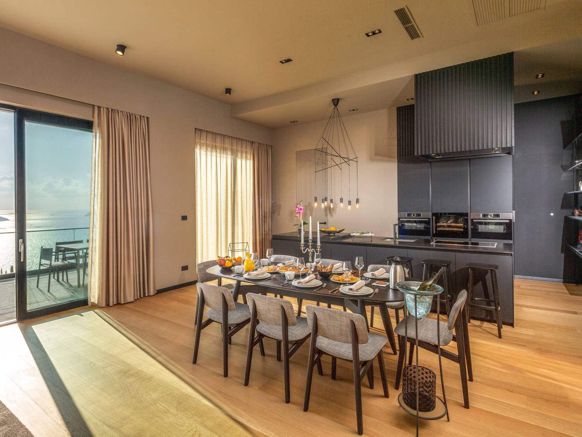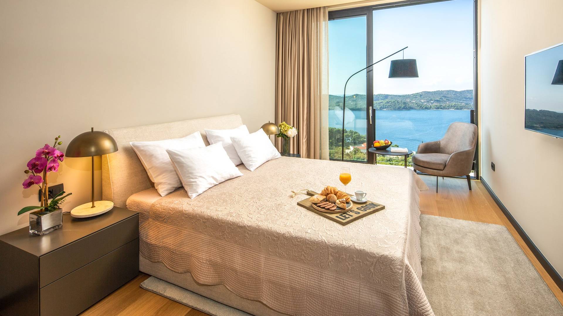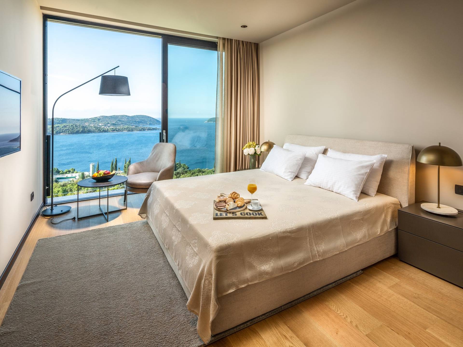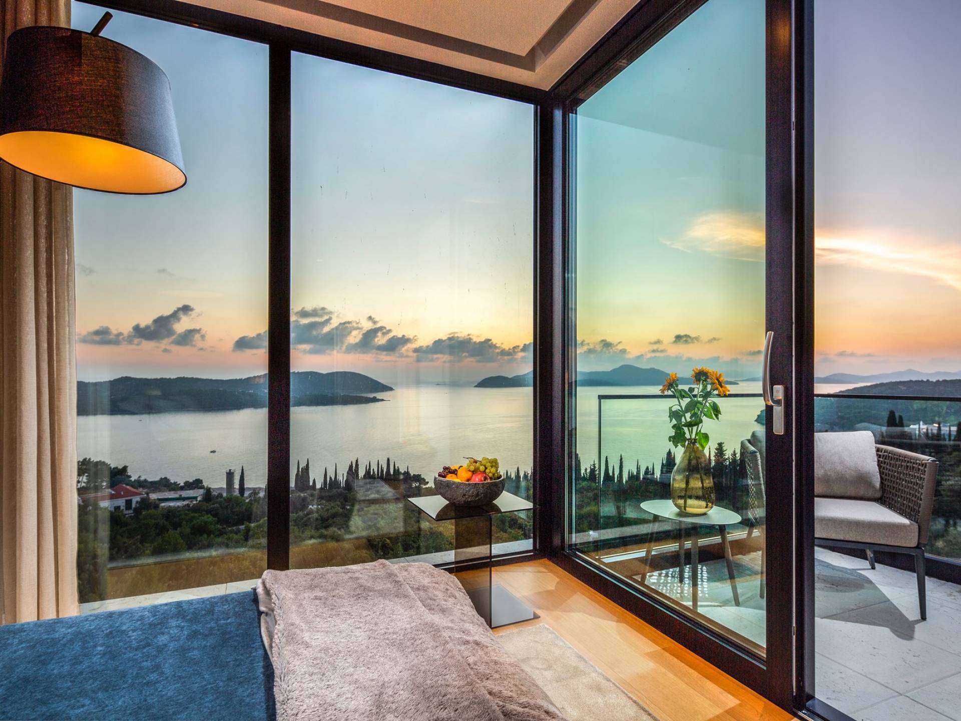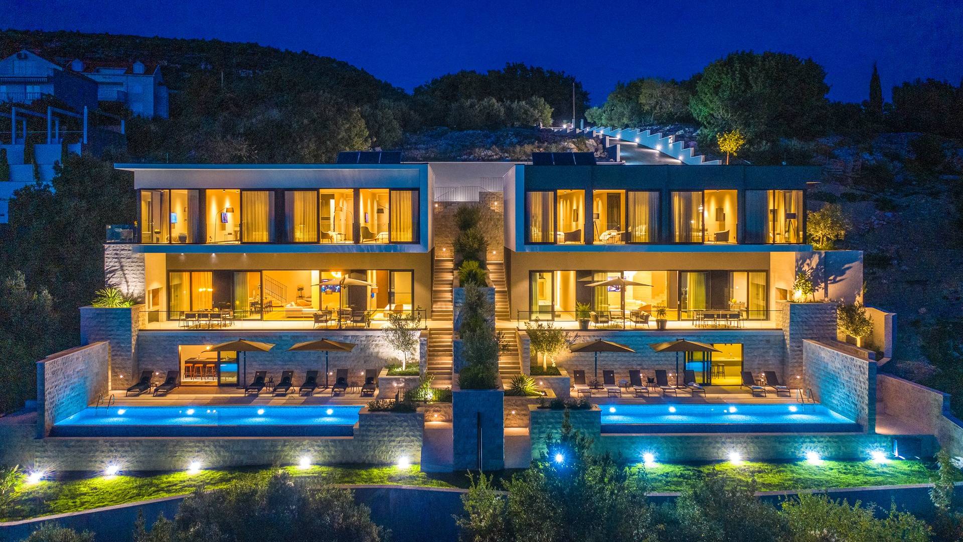 This newly built villa is a wonderful example of modern and innovative architecture; is spacious and airy, and high ceilings and glass walls give the feeling of freedom and open the view of the Dubrovnik islands. Opposites, ie the islands and the Adriatic Sea on one side and the surrounding hills on the other make Orasac unique. Amidst a beautiful natural landscape, built on an elevated hillside, the villa provides a high degree of privacy and a fantastic view over the sea and the surrounding coastline. The villa with its high-quality furnishings has been integrated perfectly into the Mediterranean hillside landscape and built on multi-level terraces.
