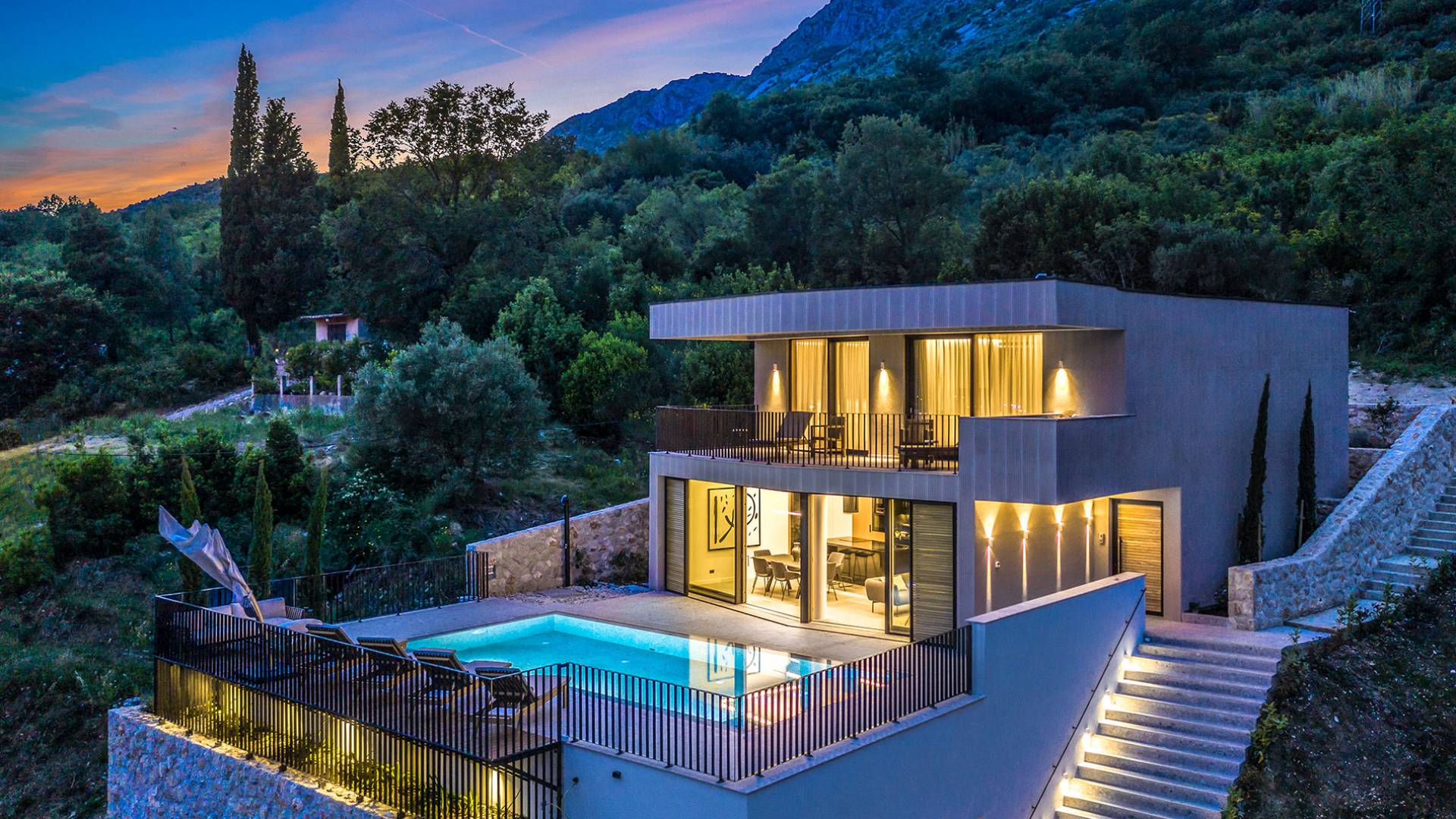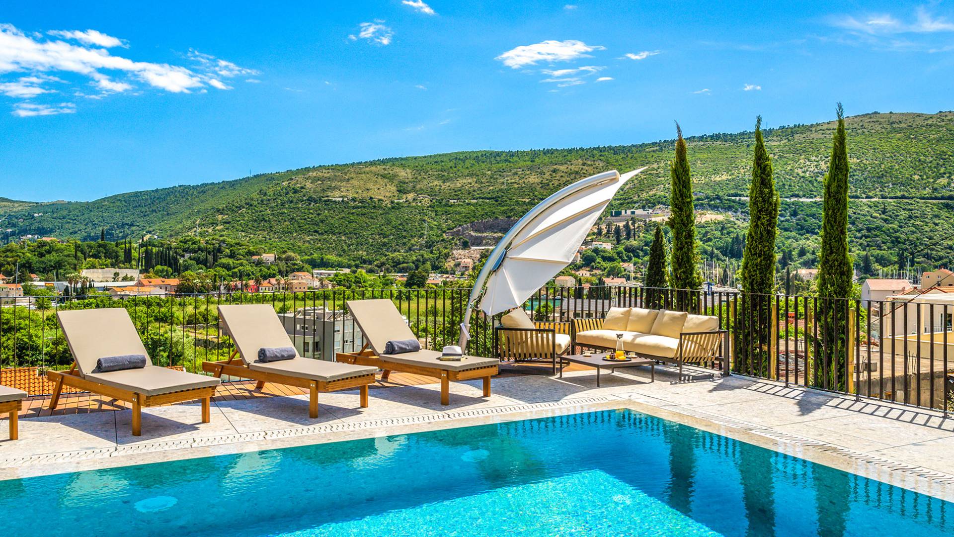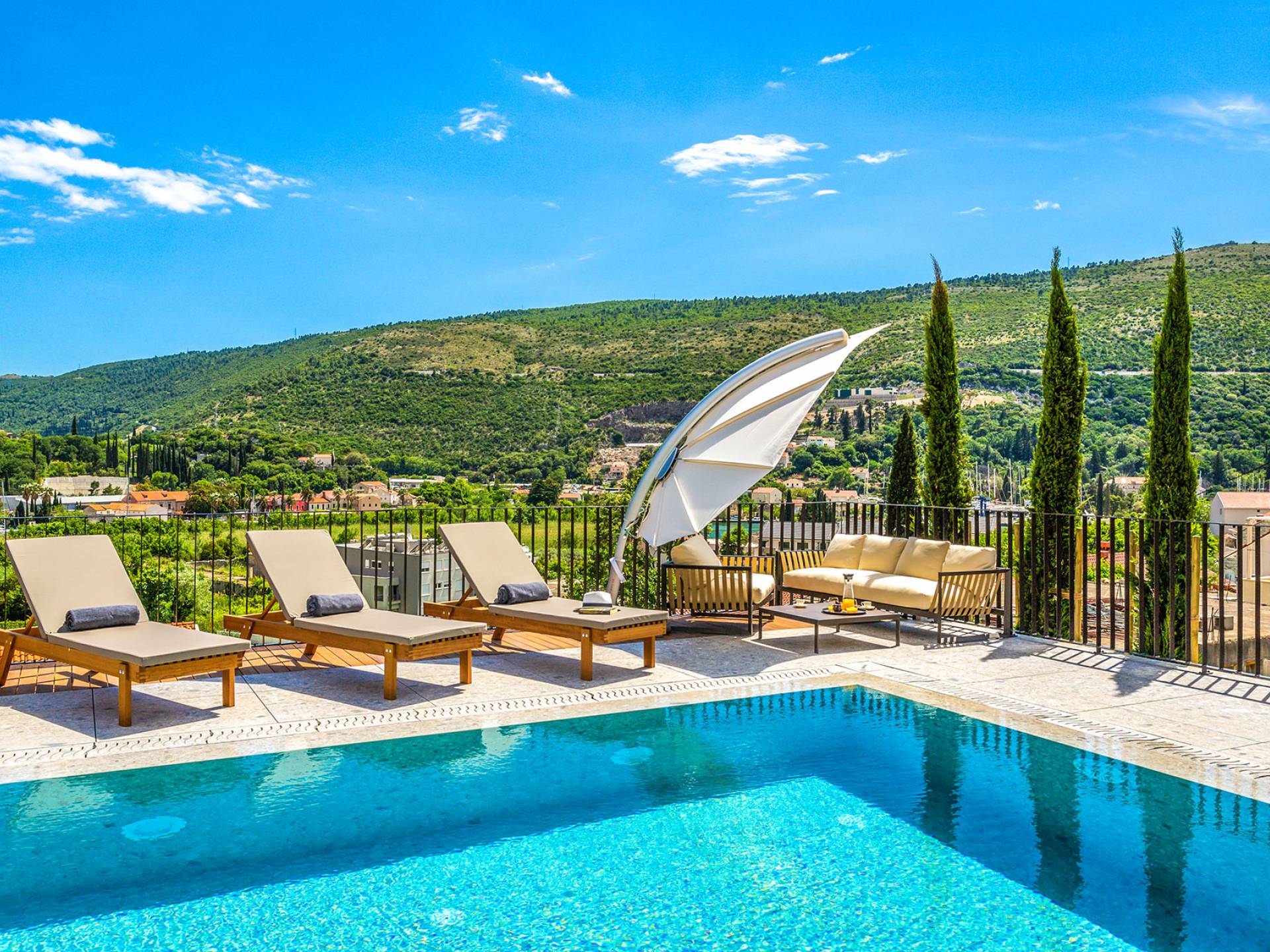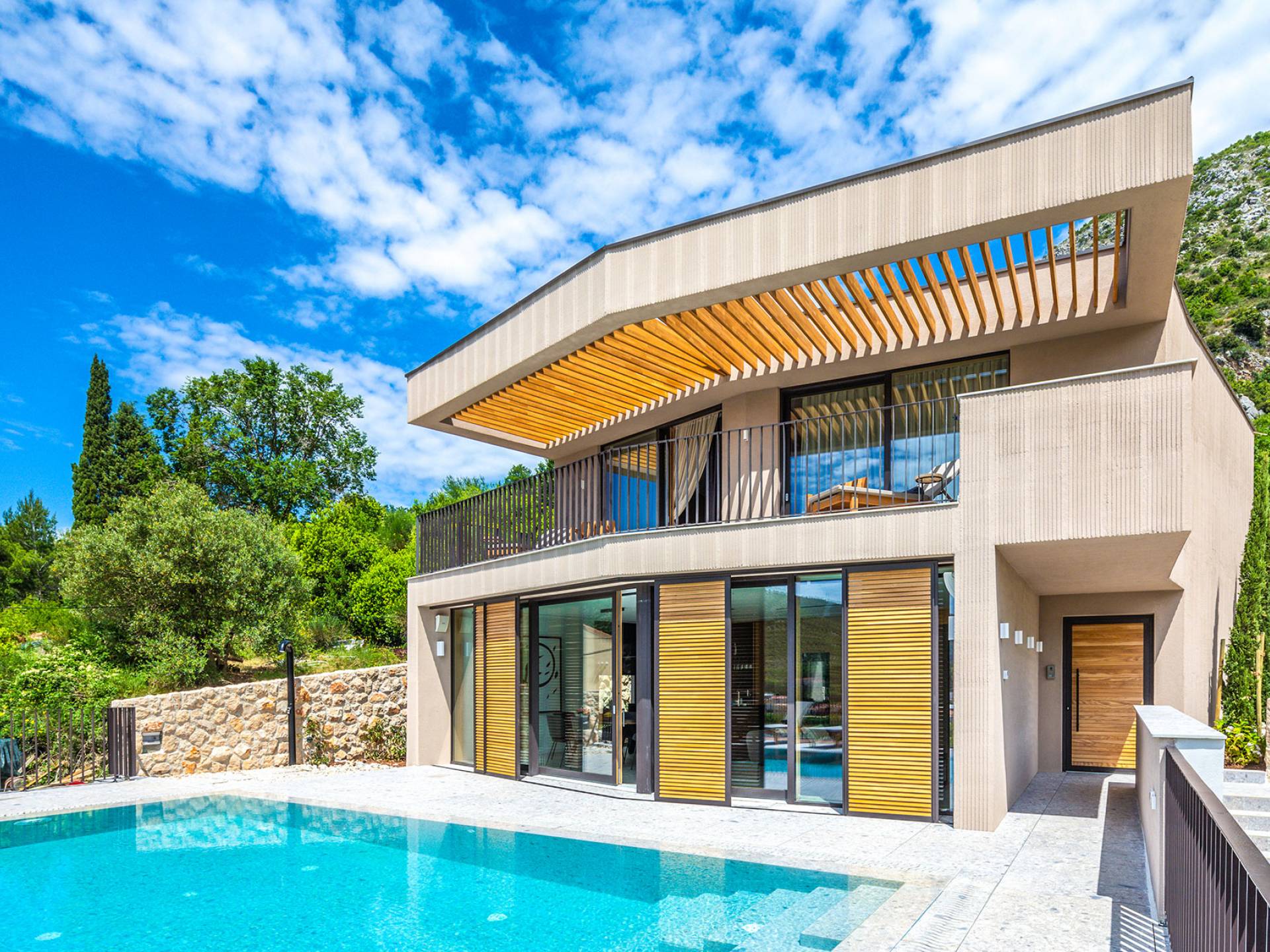 Villa Palazzo Vimbula Dubrovnik is one of the most delightful high-end luxury residences in the Dubrovnik area. Settled in a placid location in Rijeka Dubrovačka, only 22 kilometers from the airport and 6 kilometers from the Old Town, this brand new five-star luxurious villa in Dubrovnik with a pool provides the perfect holiday rental experience. Modernly equipped and elegantly furnished, the entire property offers nice views, supreme comfort, and complete privacy.