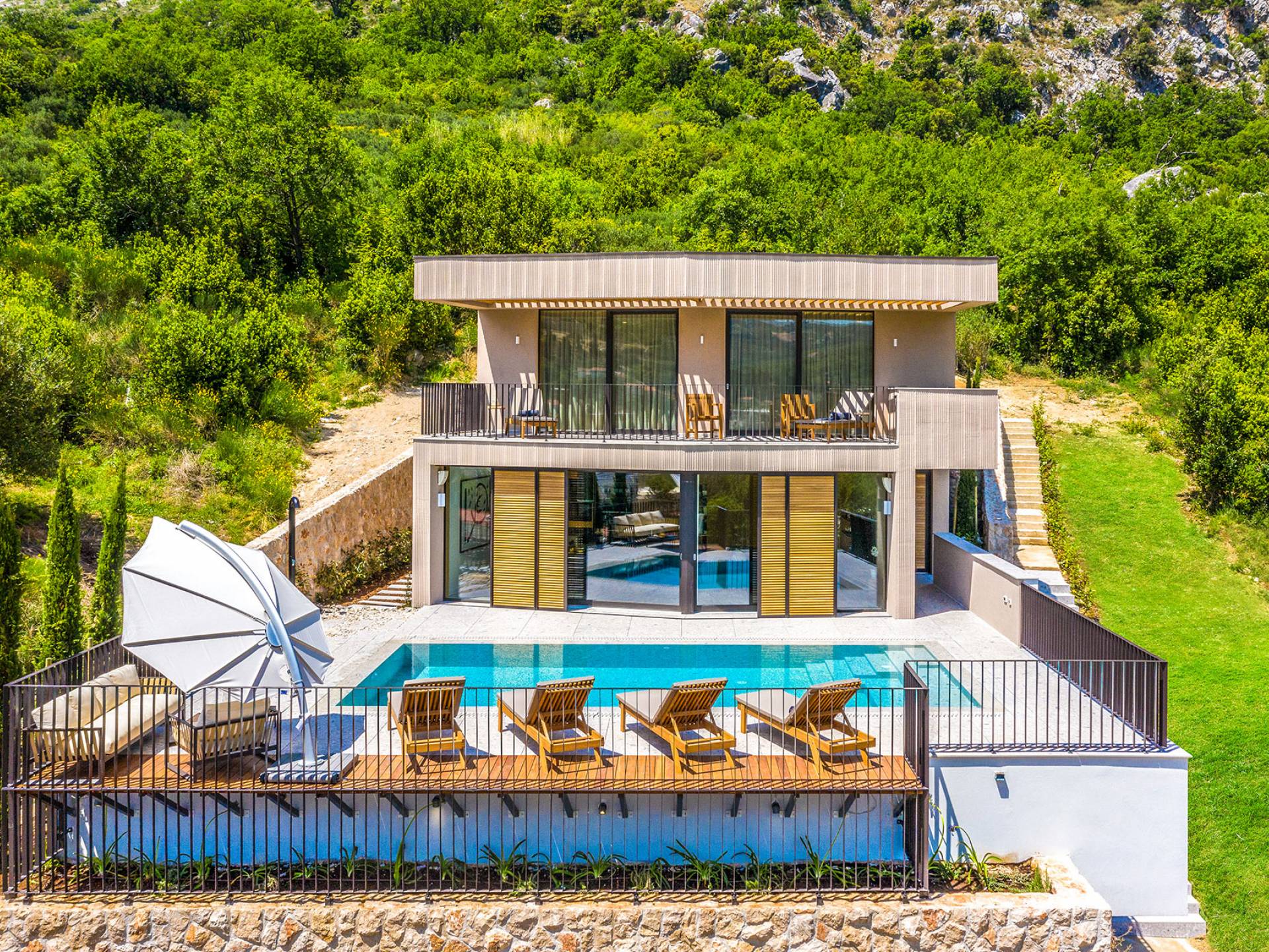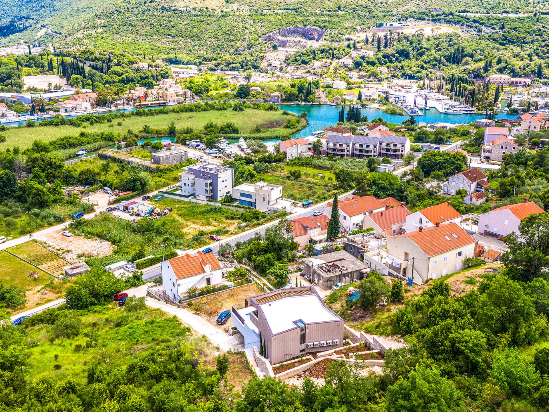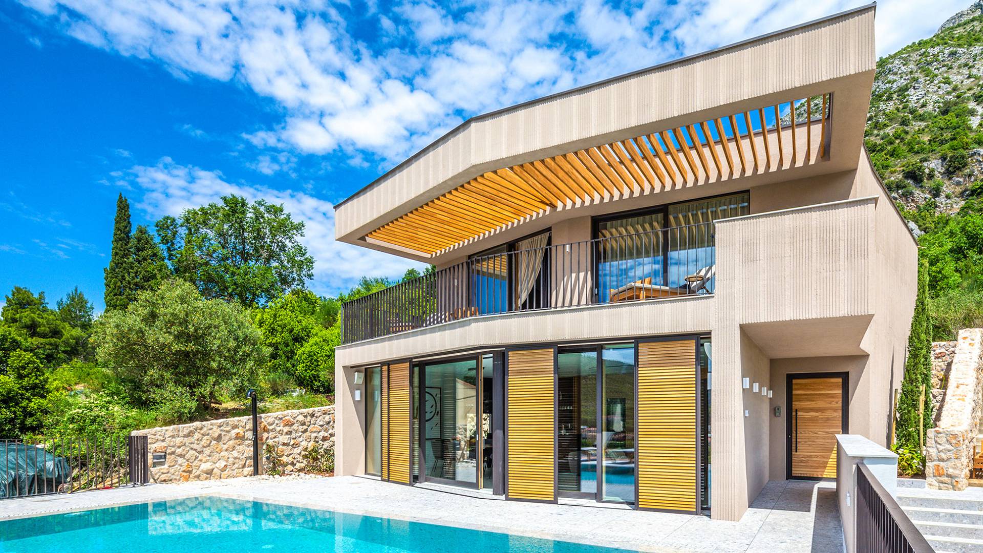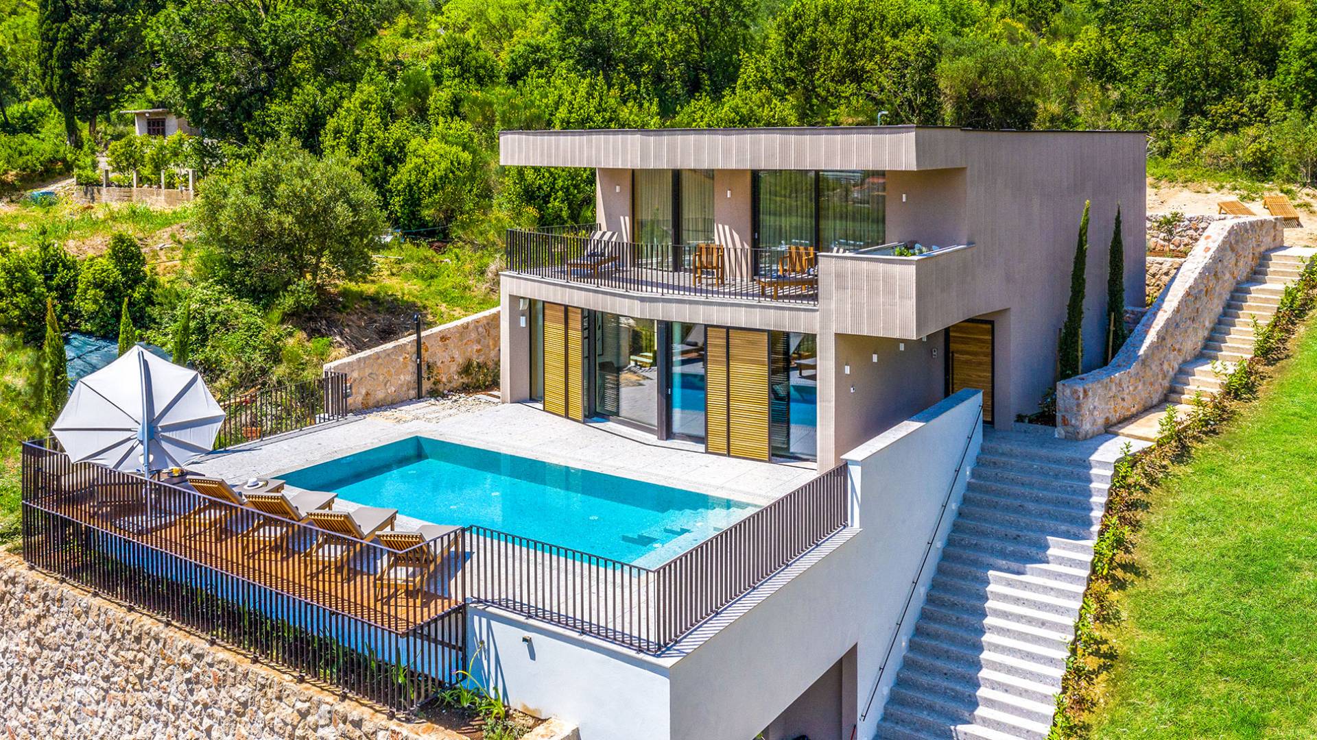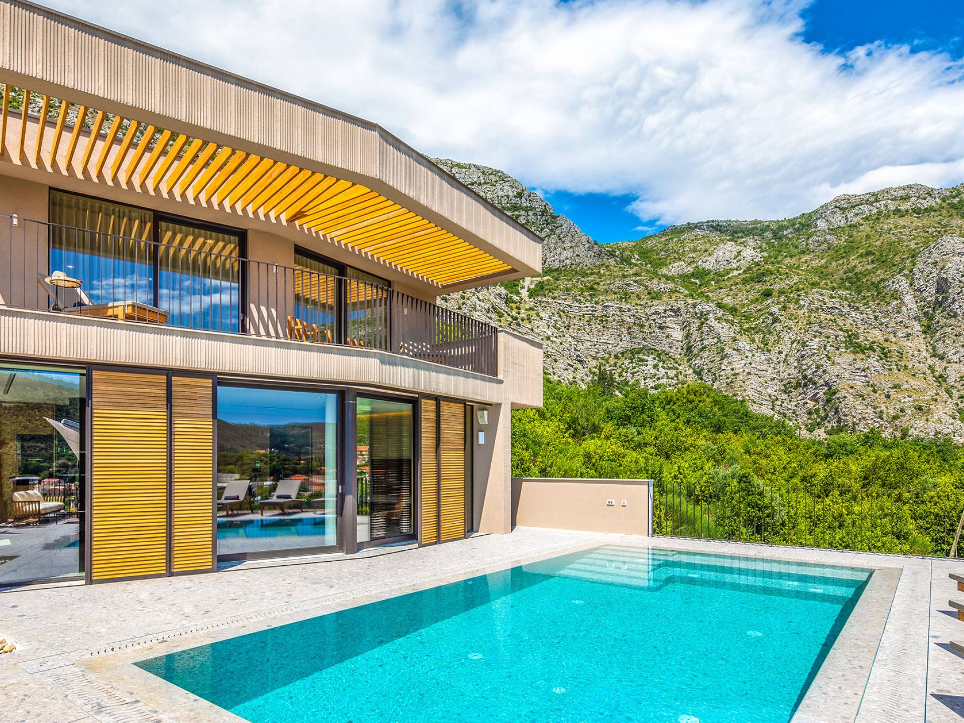 Villa Palazzo Vimbula Dubrovnik is one of the most delightful high-end luxury residences in the Dubrovnik area. Settled in a placid location in Rijeka Dubrovačka, only 22 kilometers from the airport and 6 kilometers from the Old Town, this brand new five-star luxurious villa in Dubrovnik with a pool provides the perfect holiday rental experience. Modernly equipped and elegantly furnished, the entire property offers nice views, supreme comfort, and complete privacy.