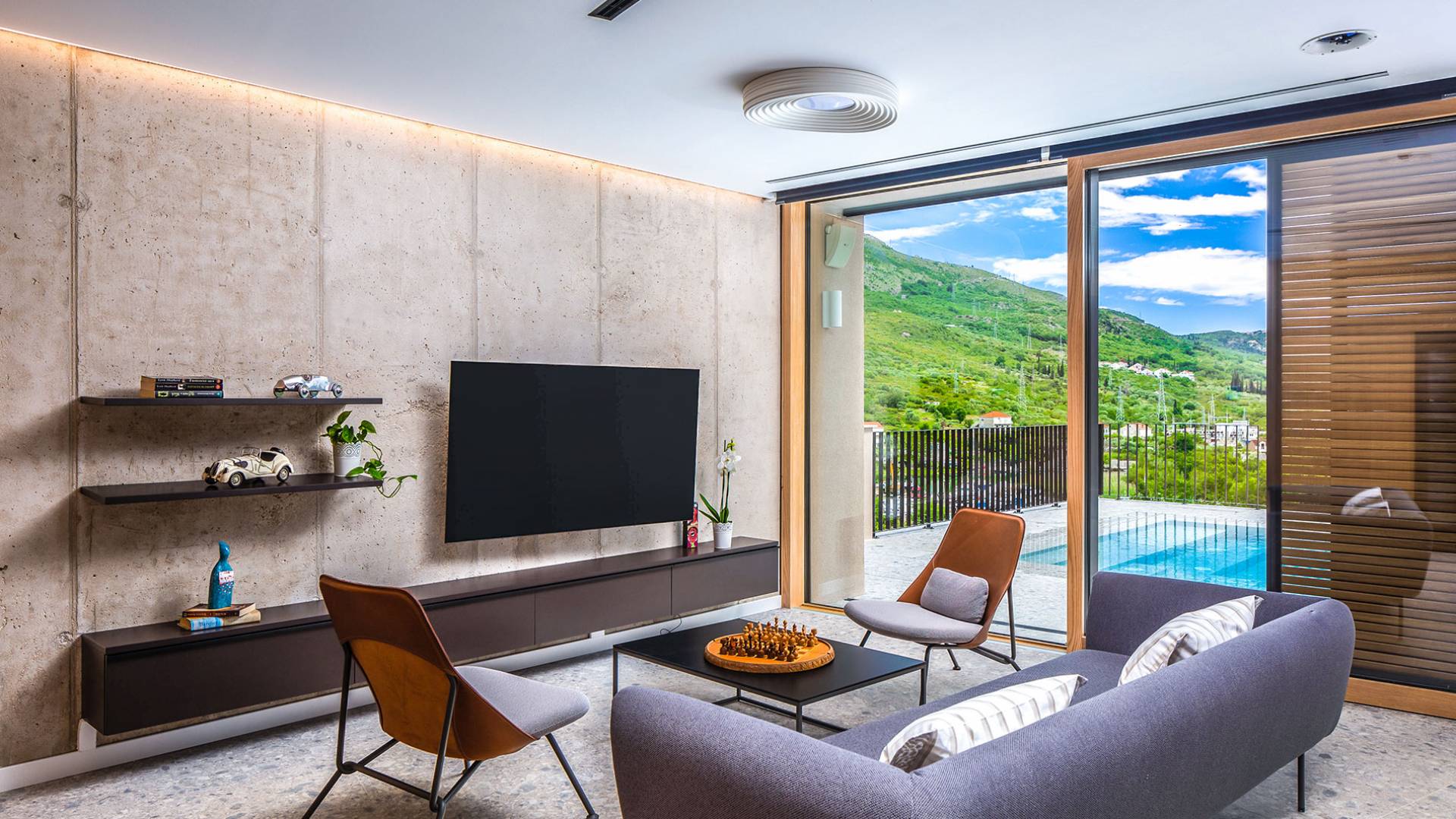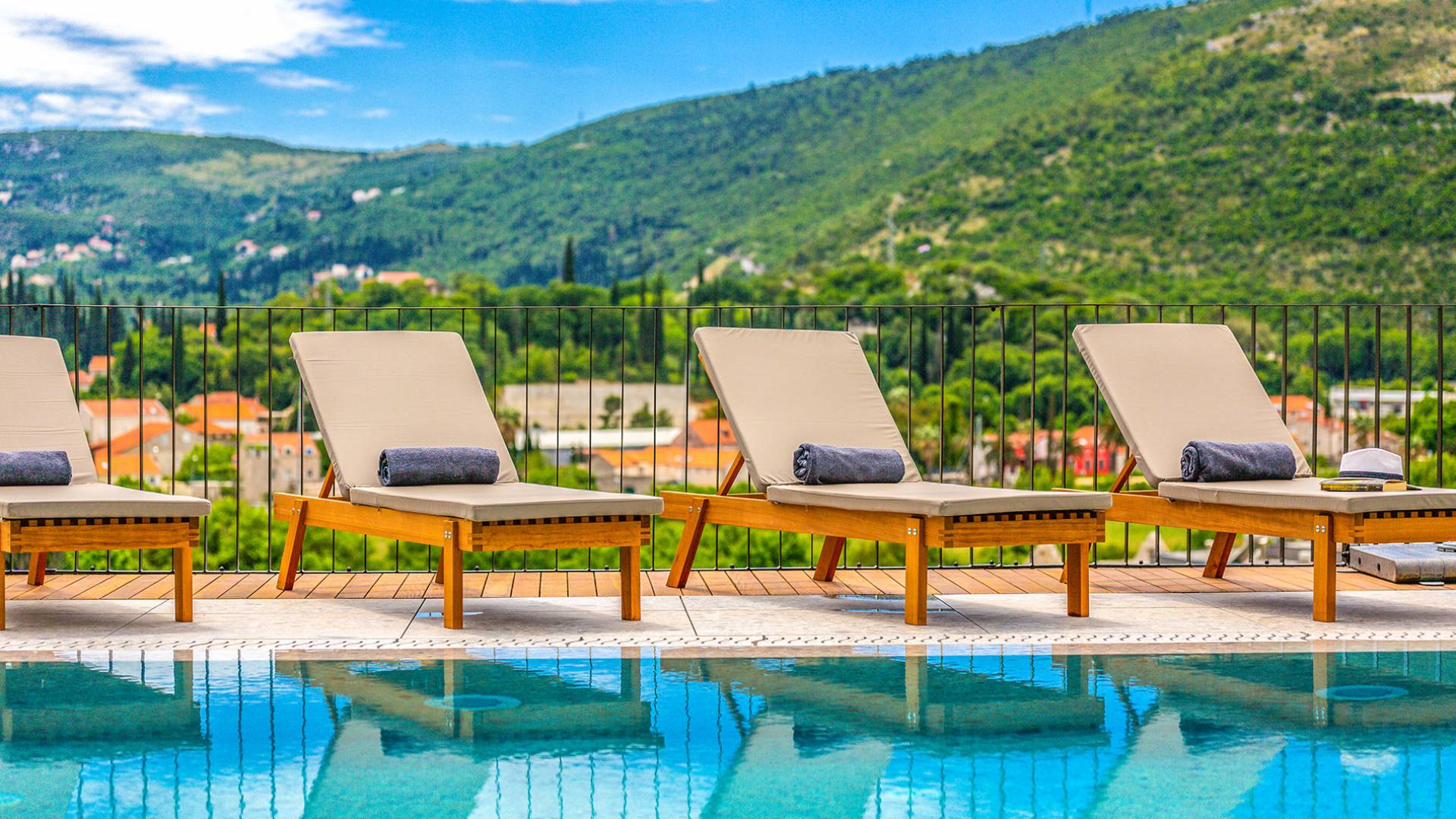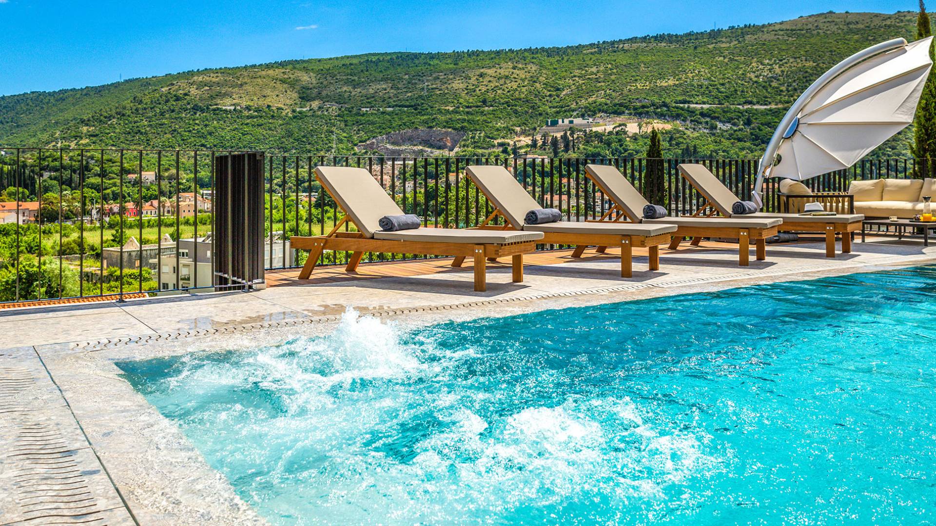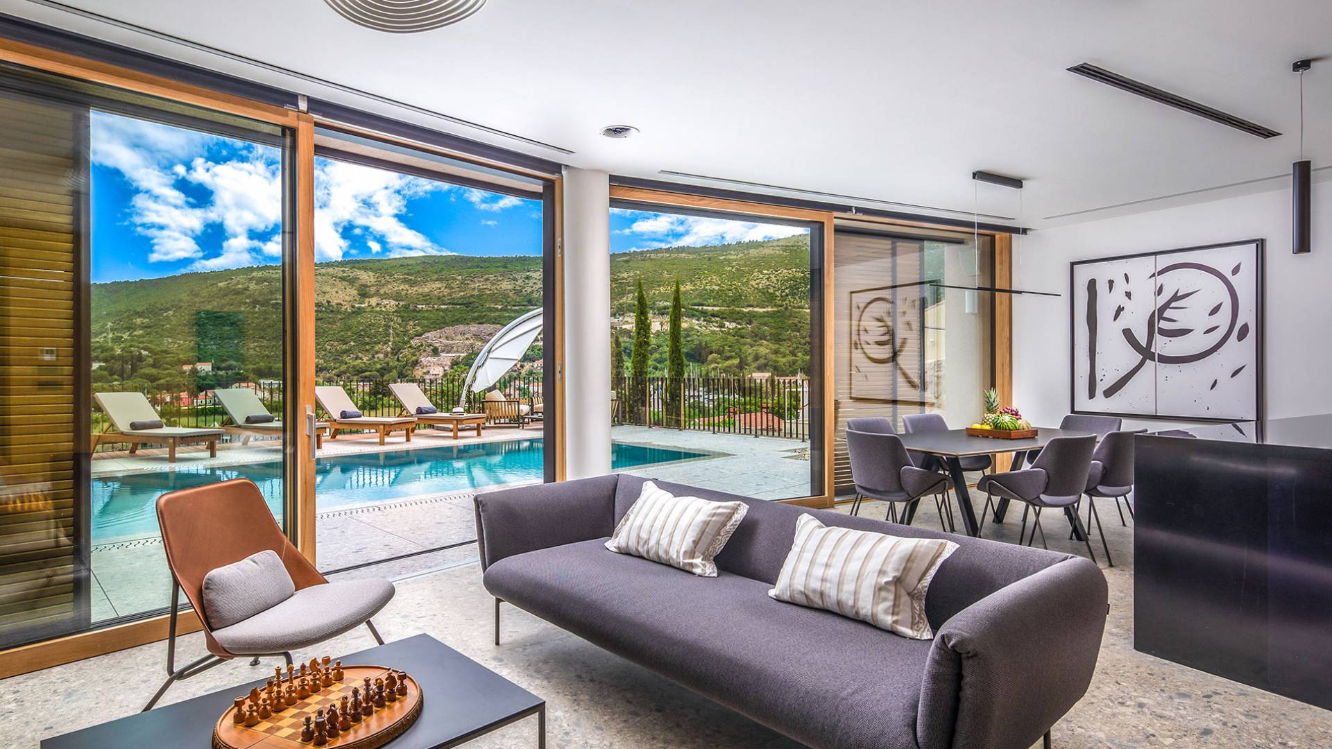 Villa Palazzo Vimbula Dubrovnik is one of the most delightful high-end luxury residences in the Dubrovnik area. Settled in a placid location in Rijeka Dubrovačka, only 22 kilometers from the airport and 6 kilometers from the Old Town, this brand new five-star luxurious villa in Dubrovnik with a pool provides the perfect holiday rental experience. Modernly equipped and elegantly furnished, the entire property offers nice views, supreme comfort, and complete privacy.