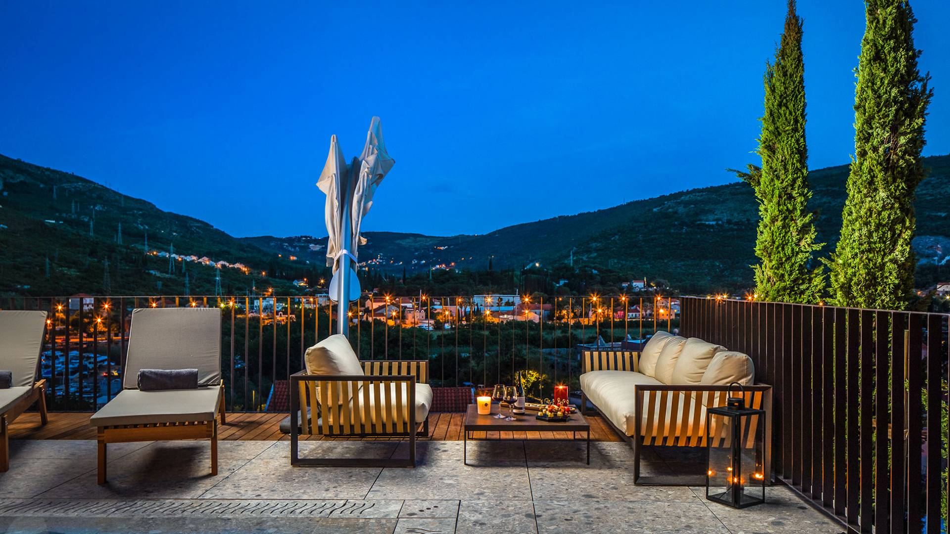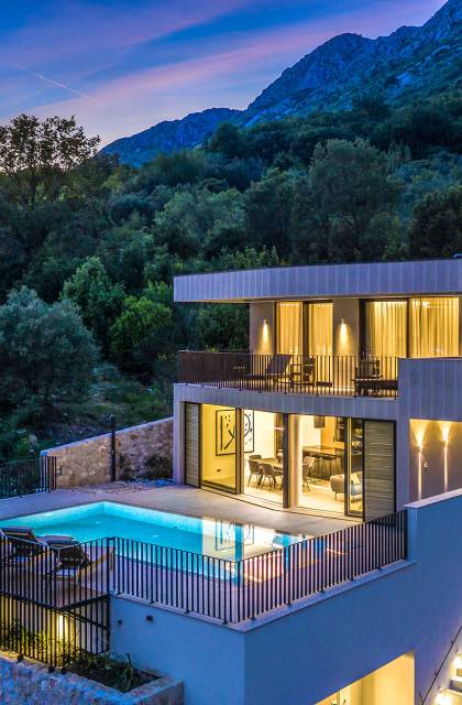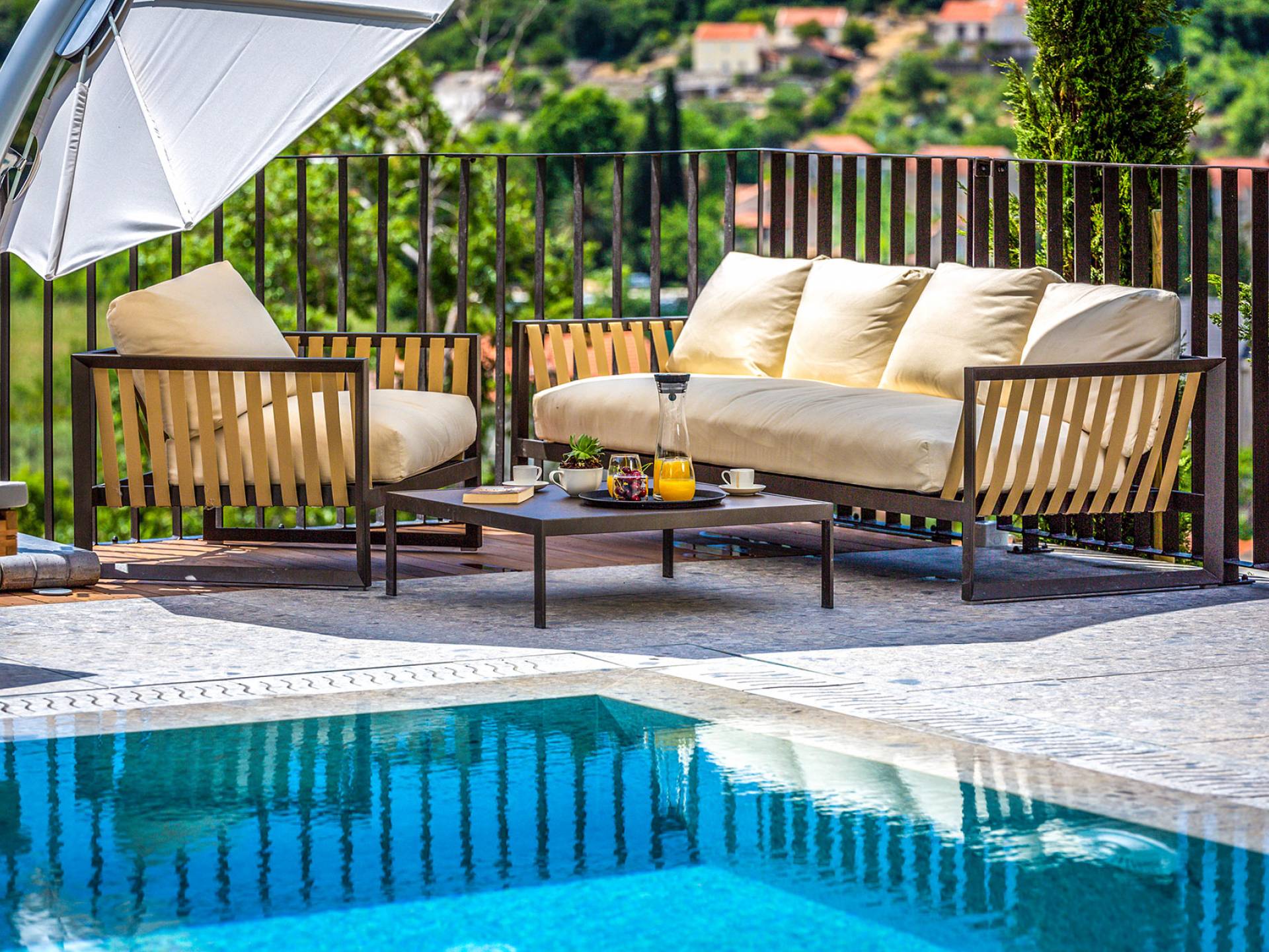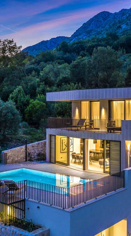 Villa Palazzo Vimbula Dubrovnik stands proudly in the fjord-like valley of Rijeka Dubrovačka, in close vicinity of the source of the Ombla river. Rich in Mediterranean vegetation and clean waters, this area used to be an exclusive location for the summer residences of the Dubrovnik aristocrats at the time of the Republic of Dubrovnik. That is why we have decided to name our villa Palazzo Vimbula. The name derives from “Palazzi di Delizie” (Palaces of Pleasure), as they used to call the area, while “Vimbula” was the Roman name for the Ombla.