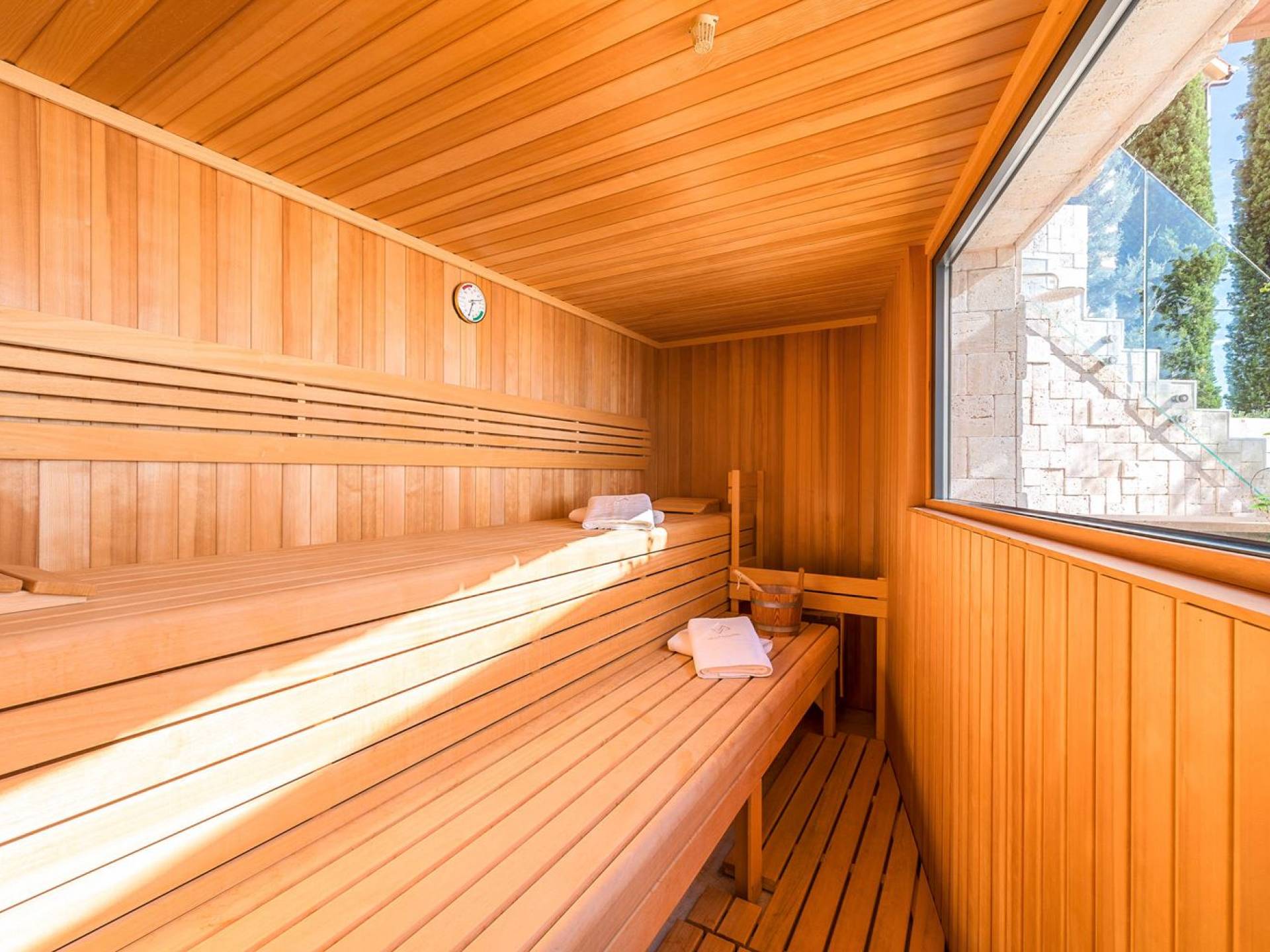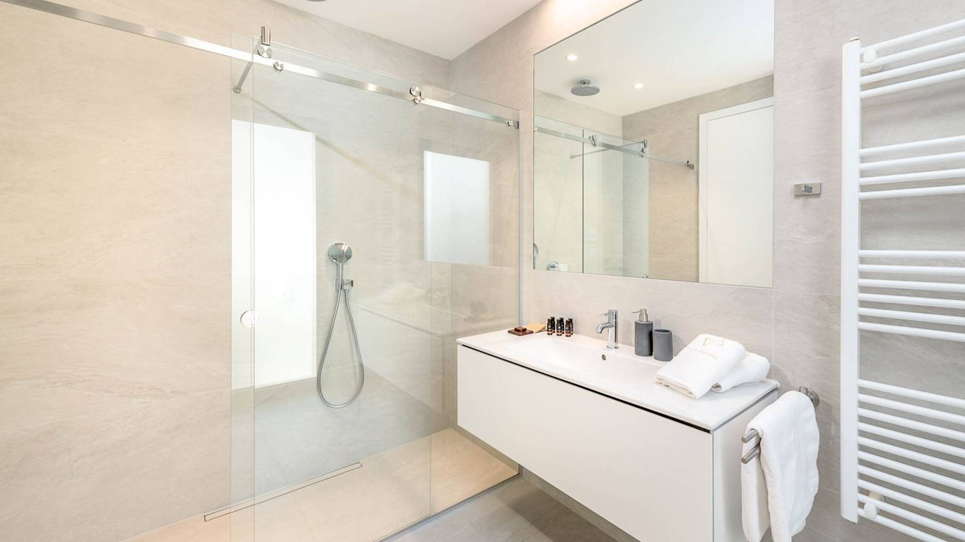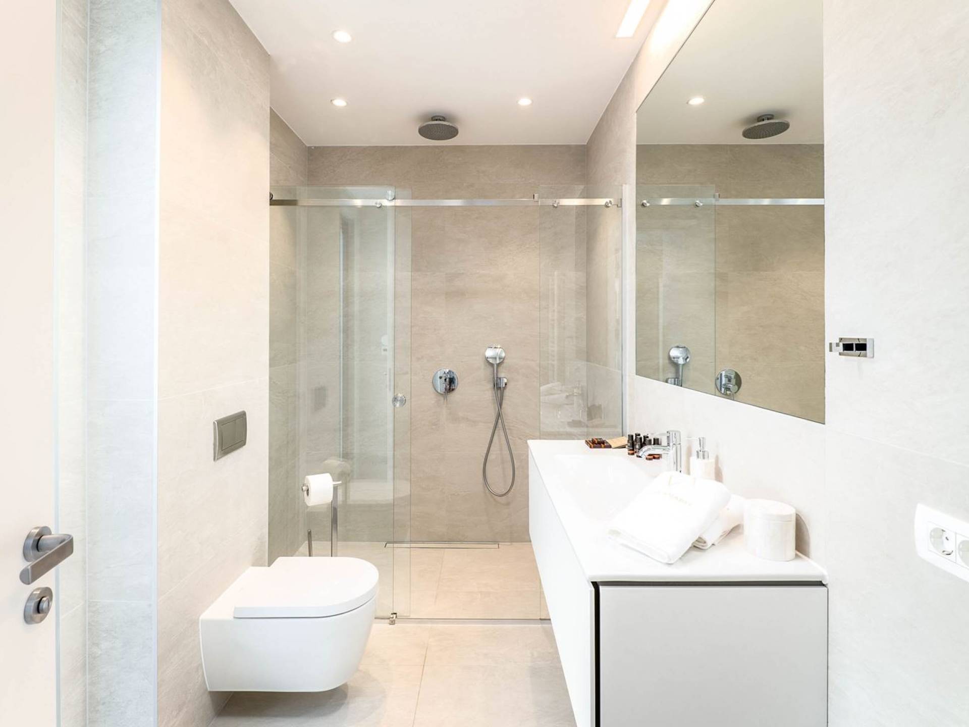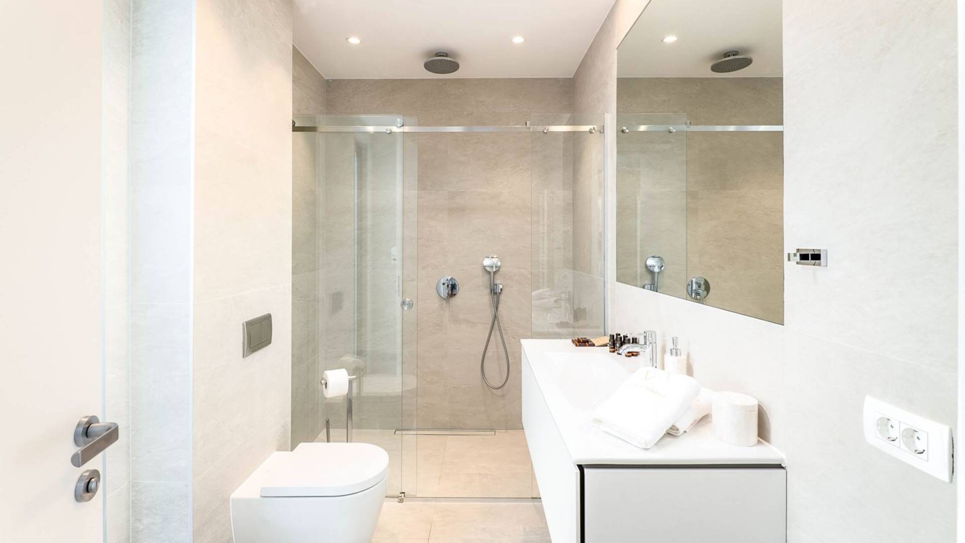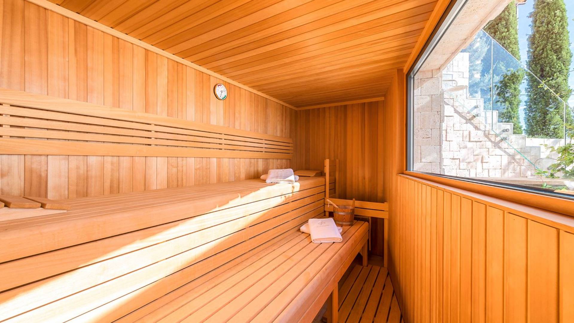 The interior of the villa is designed in white and gray tones with elements of natural and subtle dose of luxury, elegance, and comfort. The glass walls create a sense of natural beauty, opening onto a unique sea panorama, while the minimalist interior design creates a serene sense of calm for a dream vacation. Within this sensational villa, you will find a fully equipped kitchen, a living room and dining area, an area for recreation and relaxation with a sauna and gym, and 4 double bedrooms each with an en suite bathroom and three of them with a terrace. Each room is equipped with designer furniture and bedding, it is fully air-conditioned and with ultra-high definition smart TV’s and soft, feature lighting.