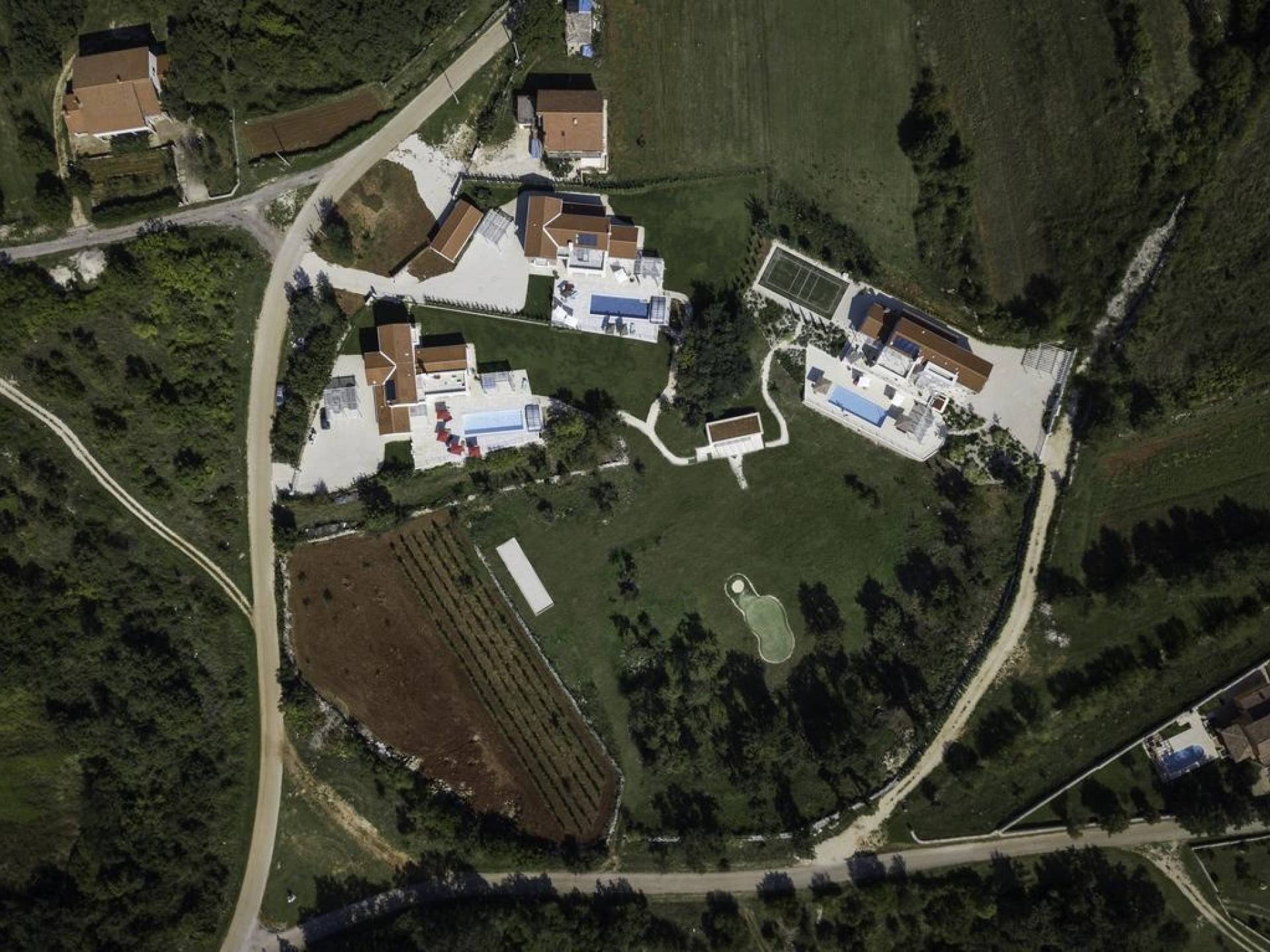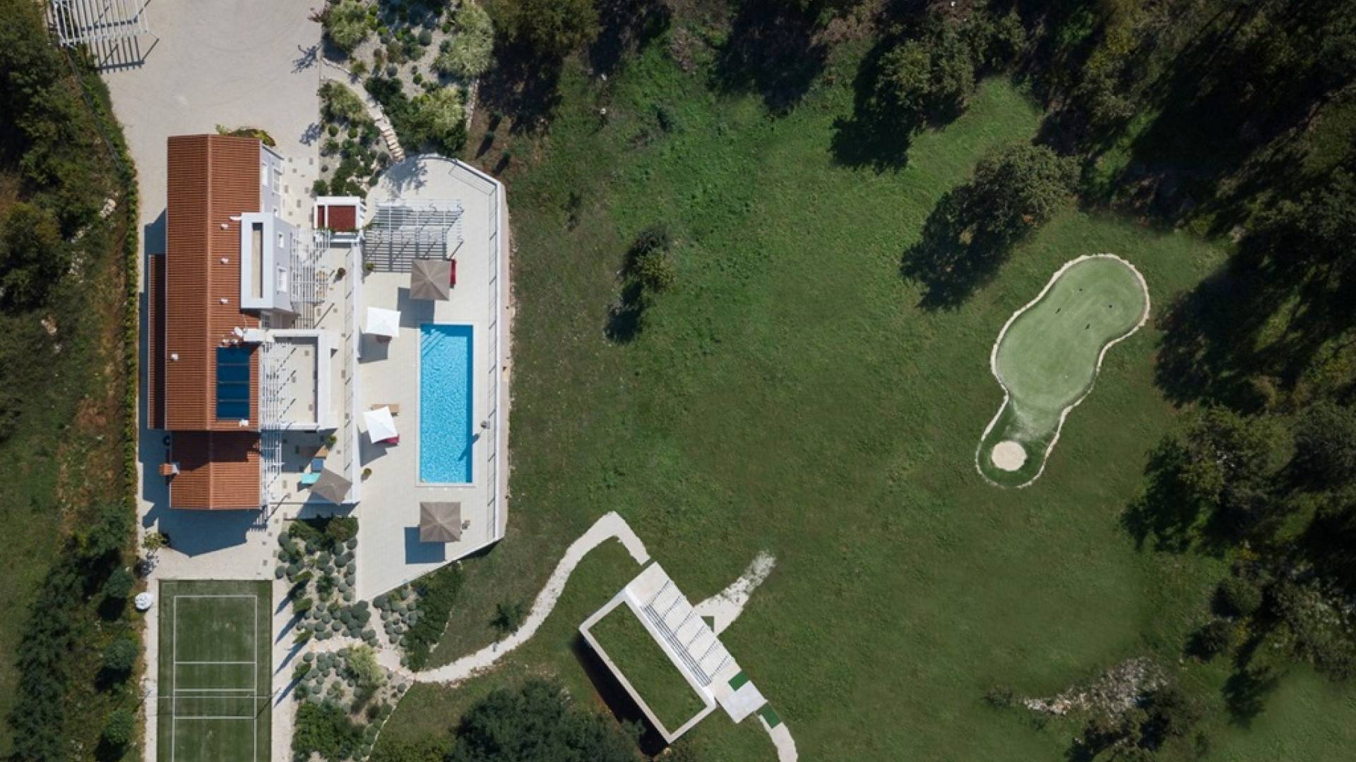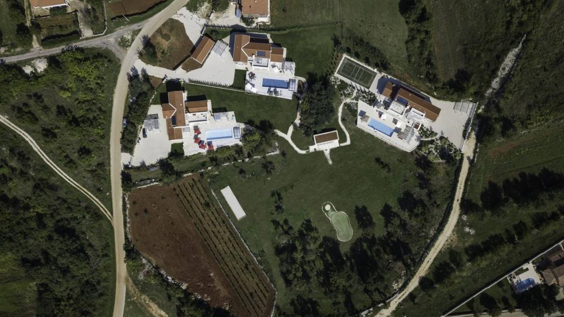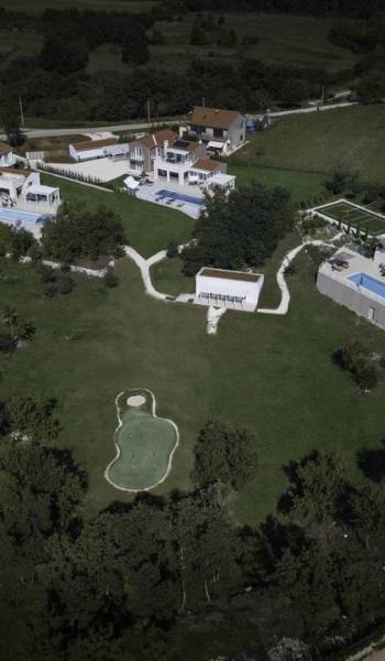 Situated in the hamlet of Rezanci, in the Svetvincenat region of central Istria, the villas occupy a plot of over 11,000 m2. Each villa is on its own 2000 m2 area and they share 5000 more m2 of forest and fields, including a golf pitching/chipping/putting area, a petanque field, and a nature walk with hammocks. A separate building, equidistant from each villa, houses a well-equipped gym with an infra-sauna and a steam bath that residents of each of the three villas can enjoy.