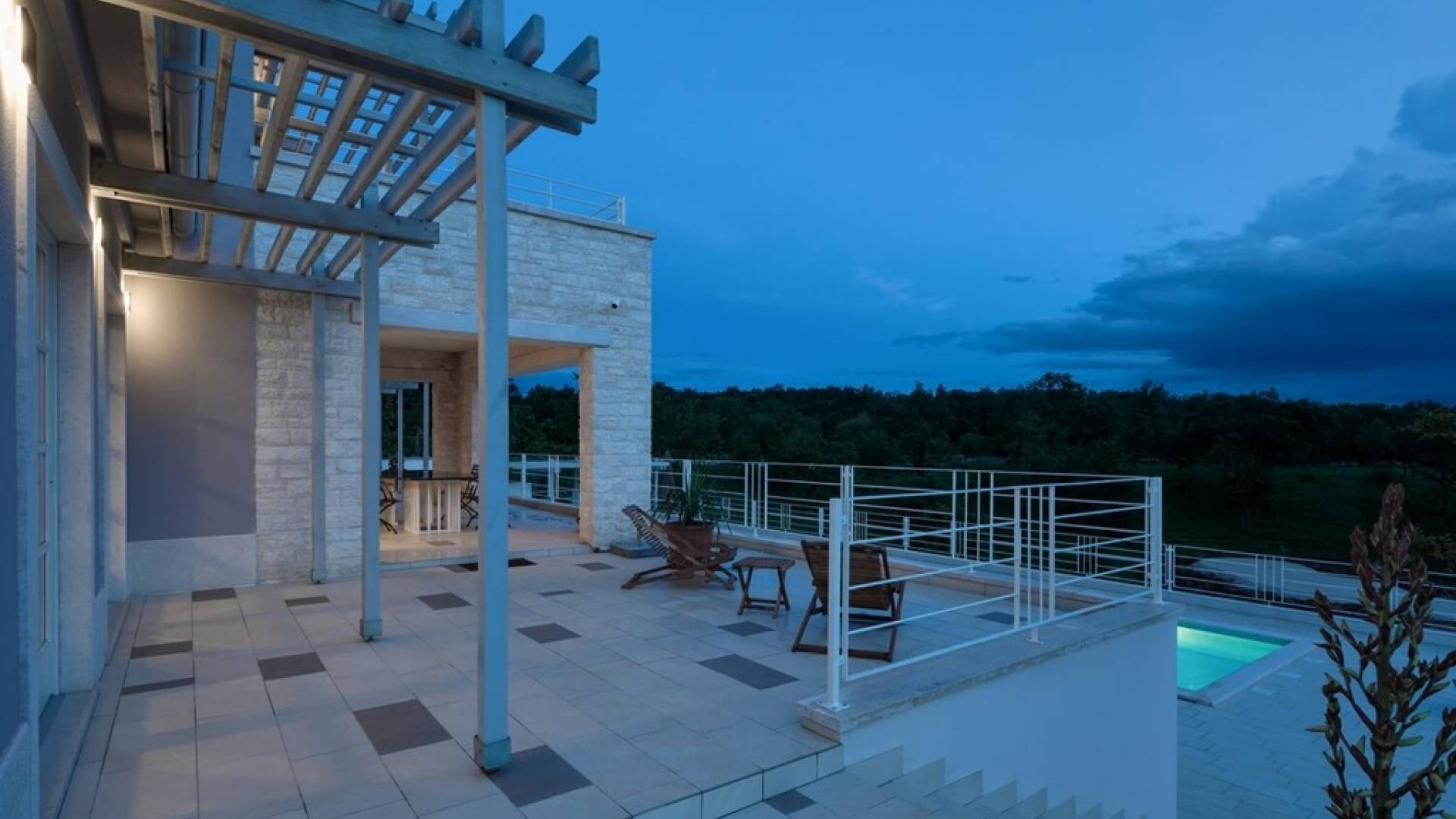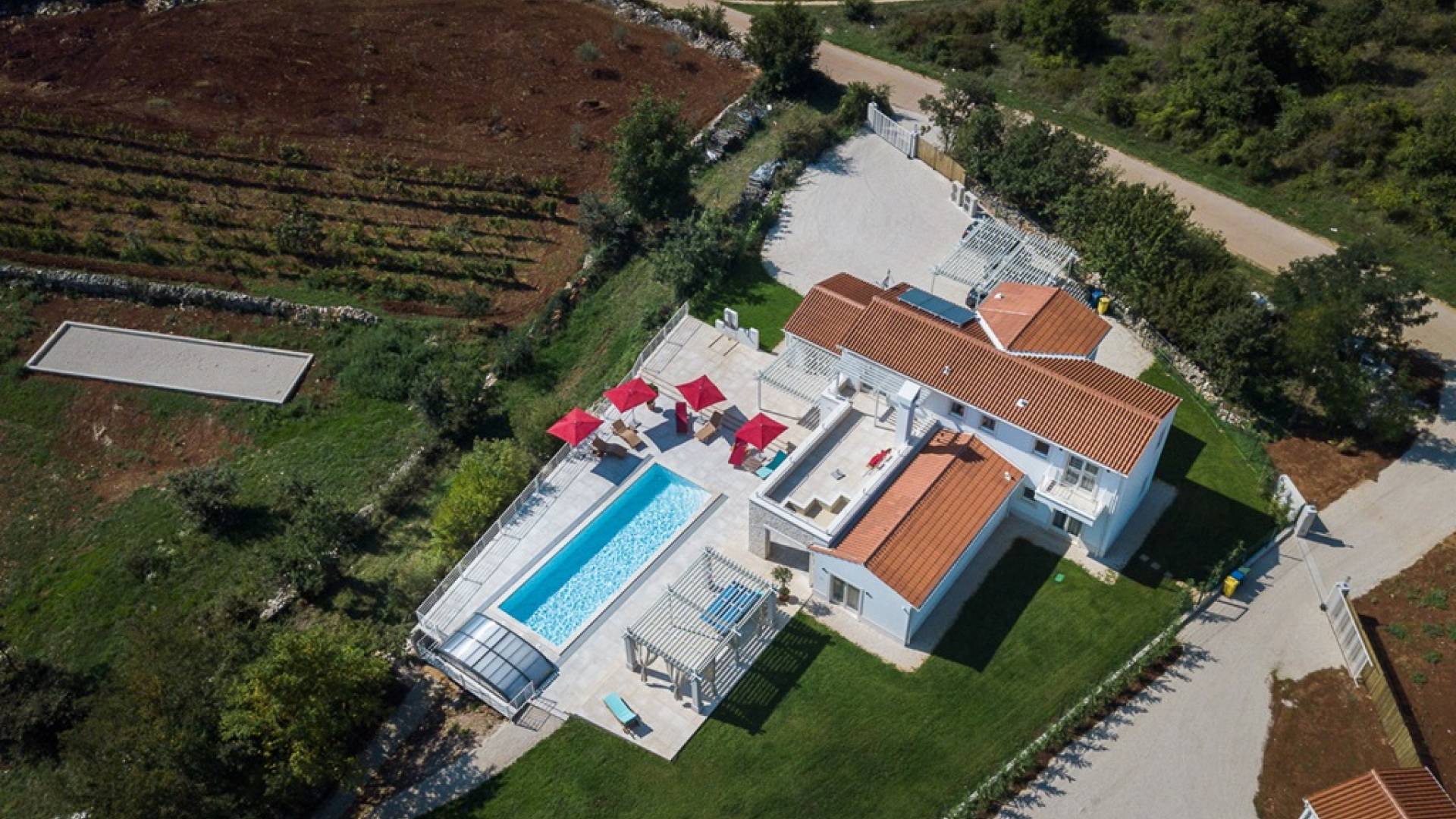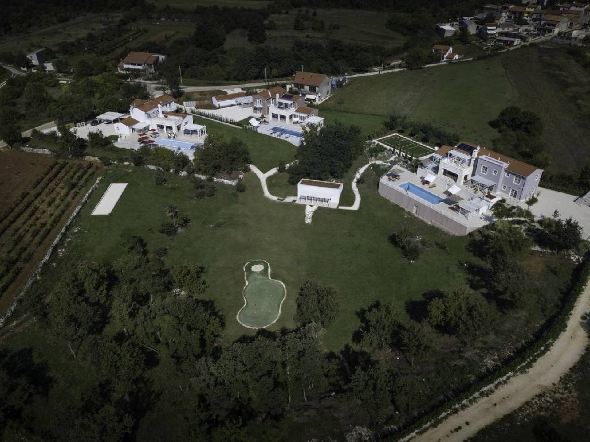 Situated in the hamlet of Rezanci, in the Svetvincenat region of central Istria, the villas occupy a plot of over 11,000 m2. Each villa is on its own 2000 m2 area and they share 5000 more m2 of forest and fields, including a golf pitching/chipping/putting area, a petanque field, and a nature walk with hammocks. A separate building, equidistant from each villa, houses a well-equipped gym with an infra-sauna and a steam bath that residents of each of the three villas can enjoy.