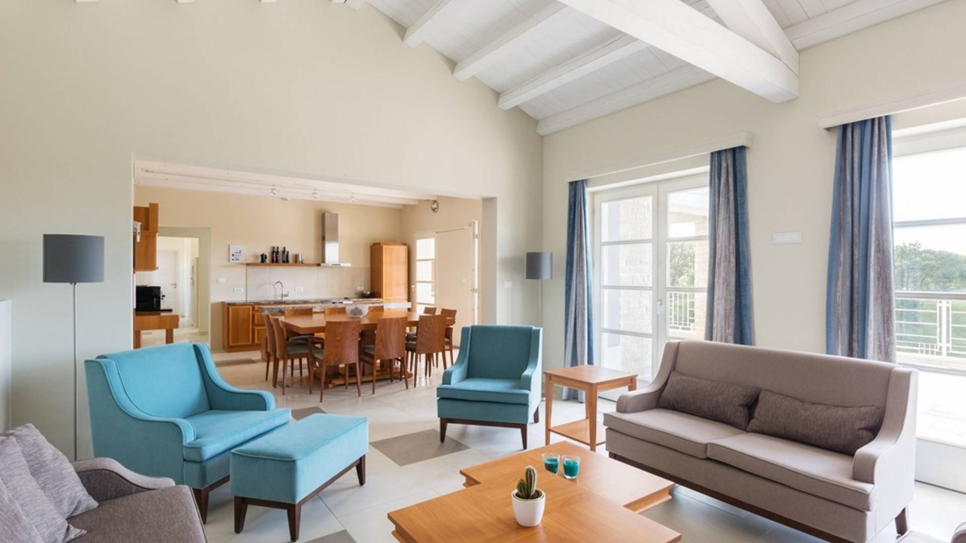 The three villas can accommodate up to 30 people. The en suite bedrooms have king-sized beds that can be separated into two single beds, to accommodate various types of groups. The villas can be rented individually or as a group of two or three.