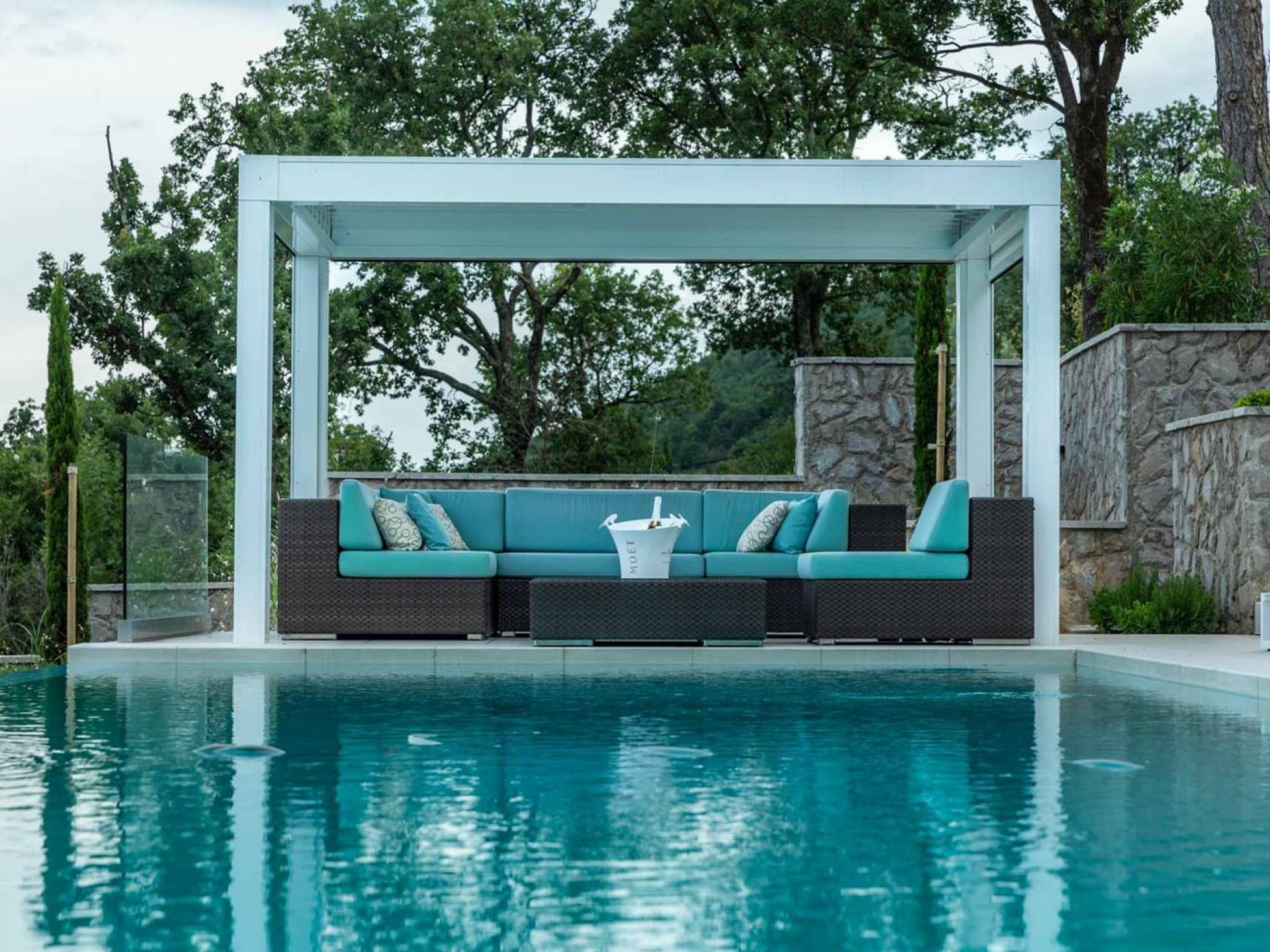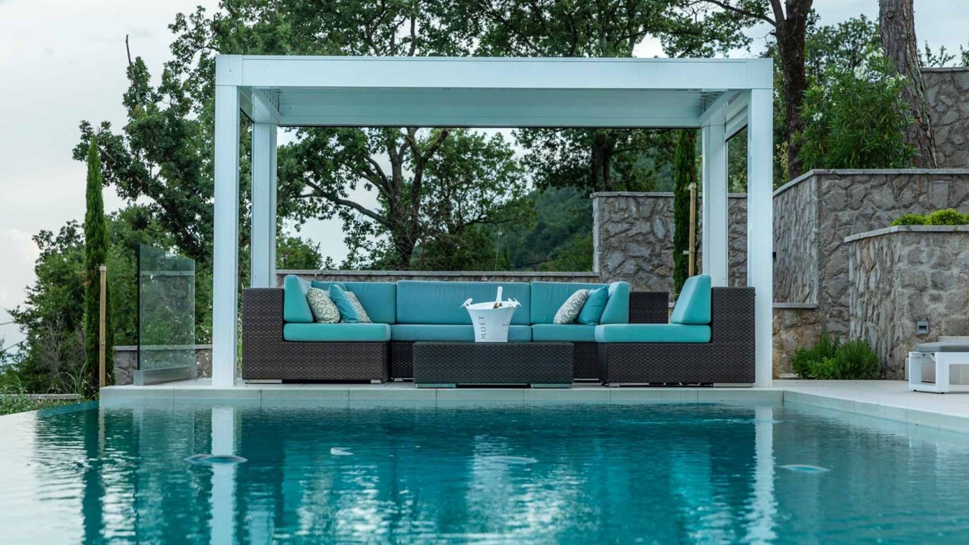 Not far from the Opatija, up in the hills above Kvarner bay you can find a little piece of heaven – Villa Aura Istria. This exclusive villa is located in Medveja and is close to the outstanding restaurants, bars, shops and recreational facilities along the famous Medveja beach. The entire area is surrounded by hiking and cycling trails ideal for outdoor athletes and nature lovers. If you want to change area, Mošćenička Draga, Lovran and Opatija are nearby.