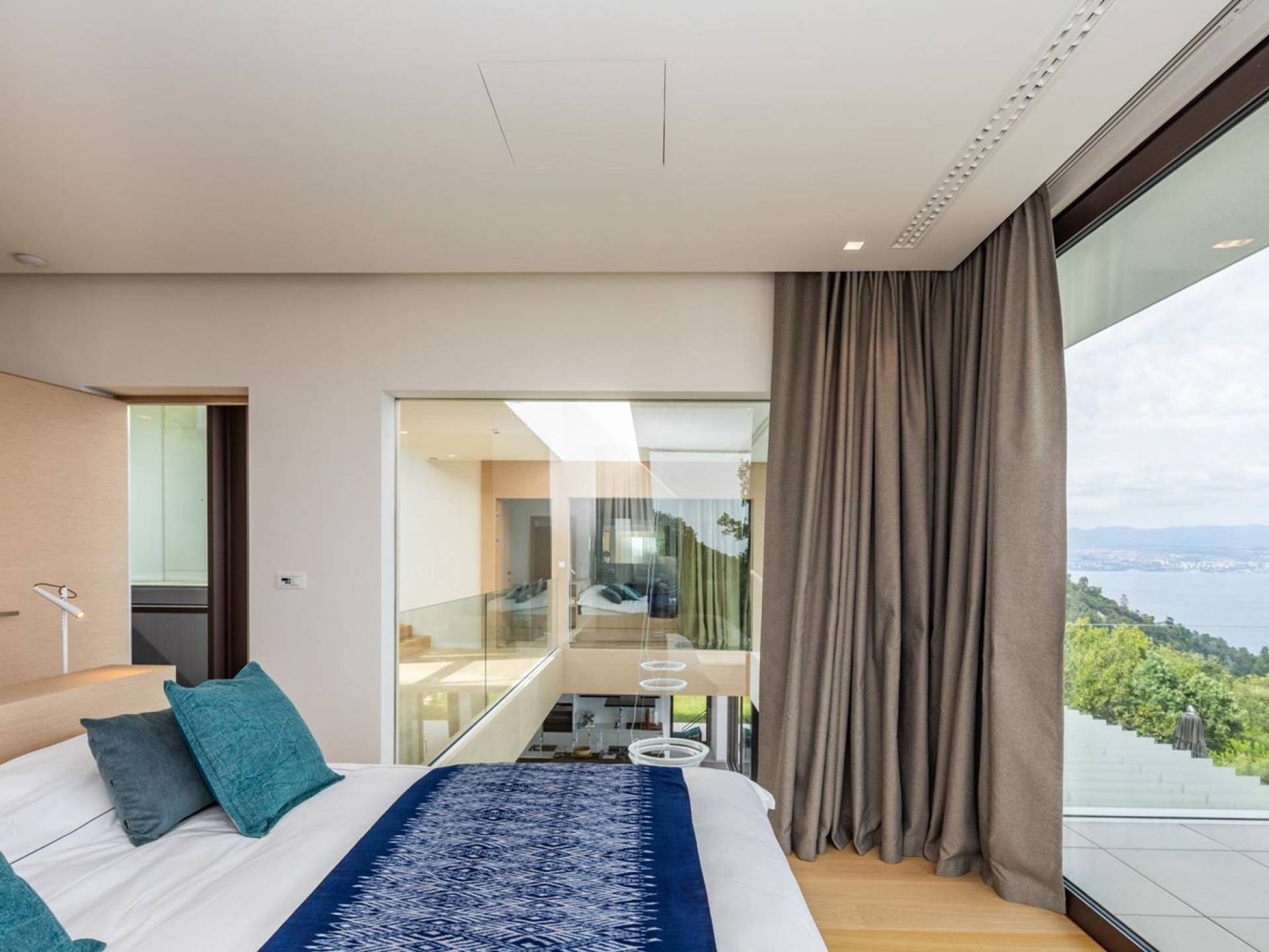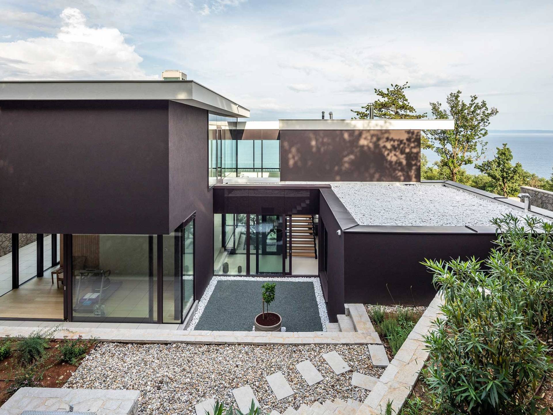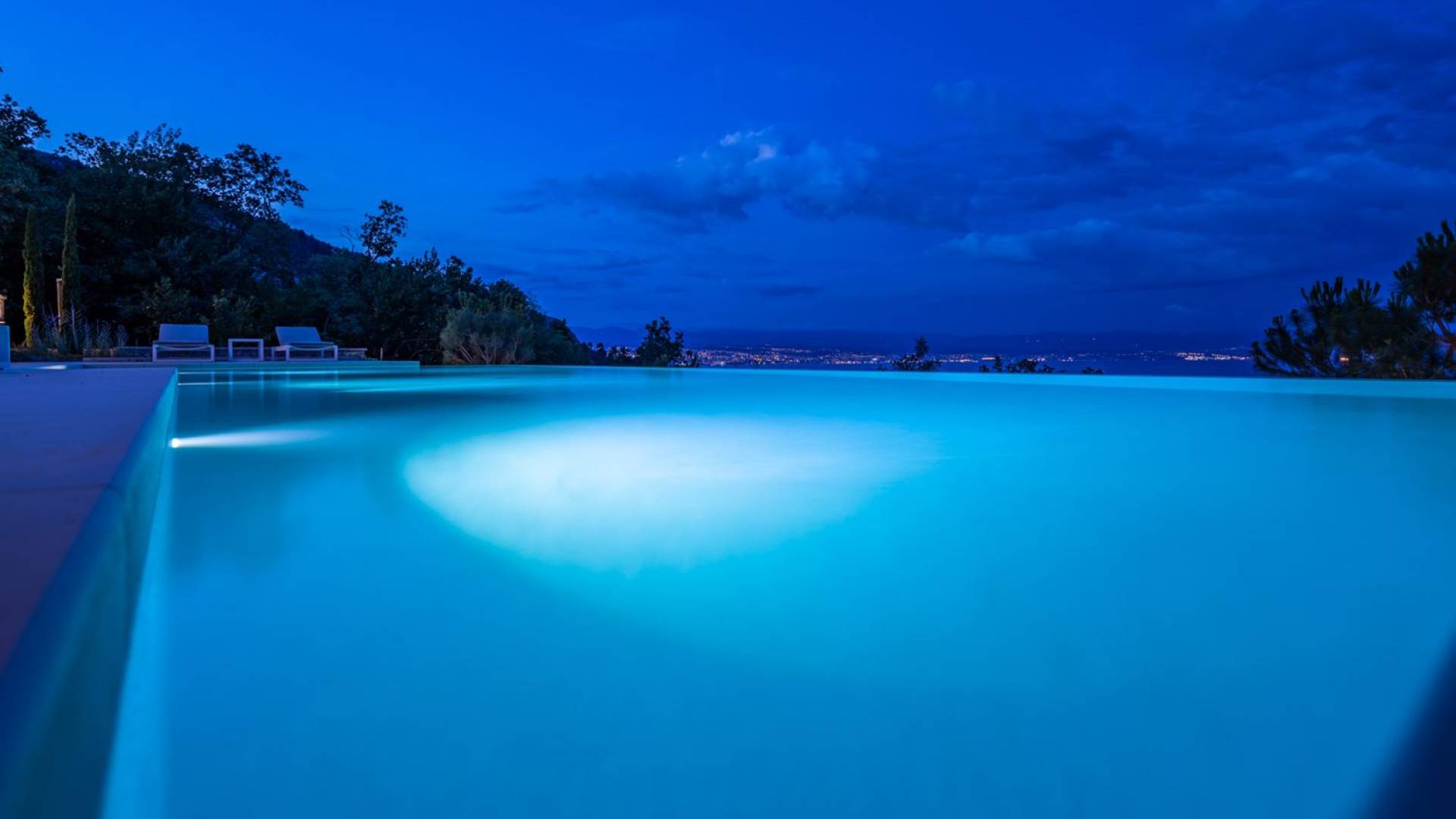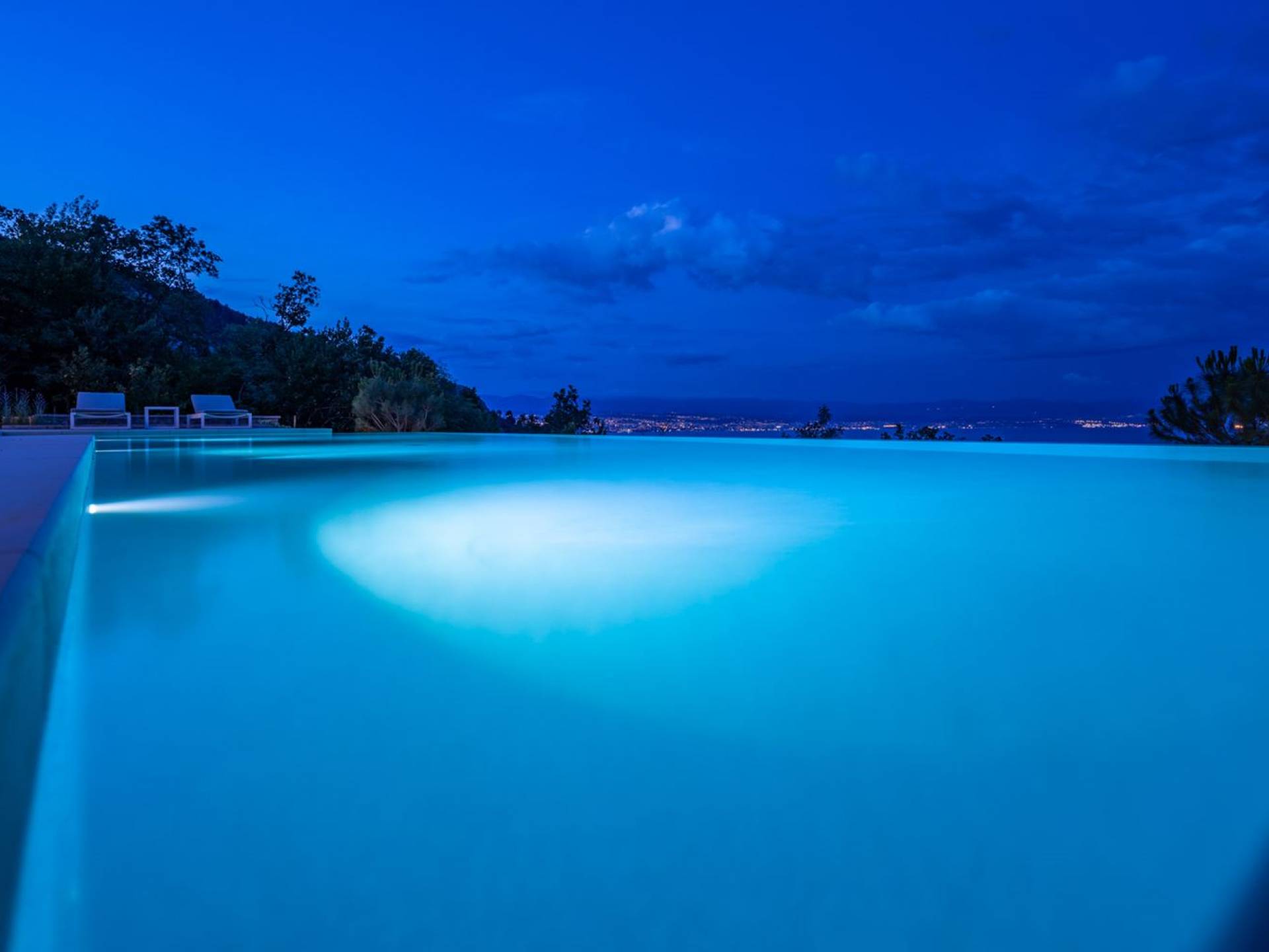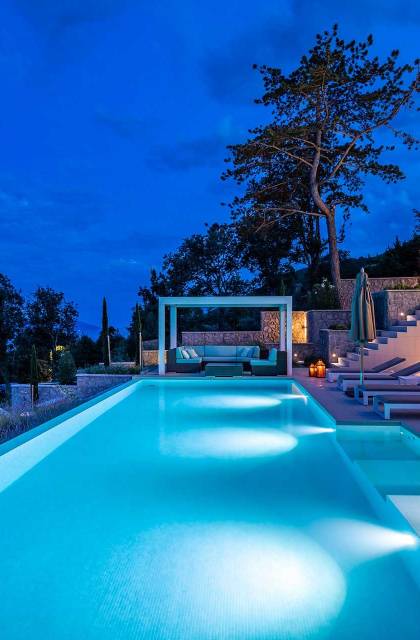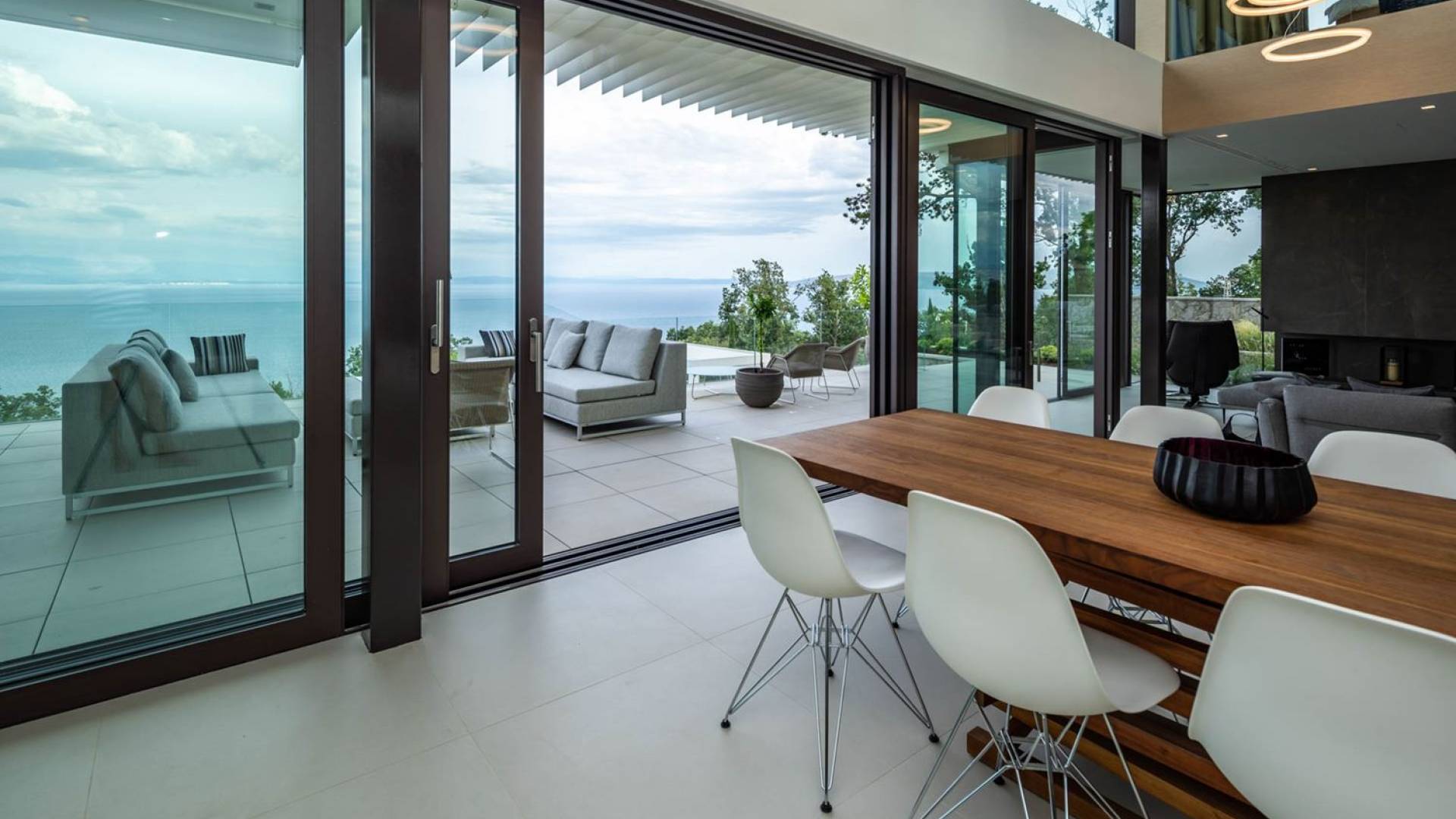 This newly built villa is a wonderful example of modern and innovative architecture; is spacious and airy, and high ceilings and glass walls give the feeling of freedom and open the view of the Kvarner islands from which you are breathtaking. Opposites, ie the islands and the Adriatic Sea on one side and the surrounding hills on the other make the Kvarner unique. And the beauty of this landscape is reflected in this villa because its unique location, architecture, and landscaping design are in complete harmony with the environment. Amidst a beautiful natural landscape, built on an elevated hillside, the villa provides a high degree of privacy and a fantastic view over the sea and the surrounding coastline. The villa with its high-quality furnishings has been integrated perfectly into the Mediterranean hillside landscape and built on multi-level terraces.