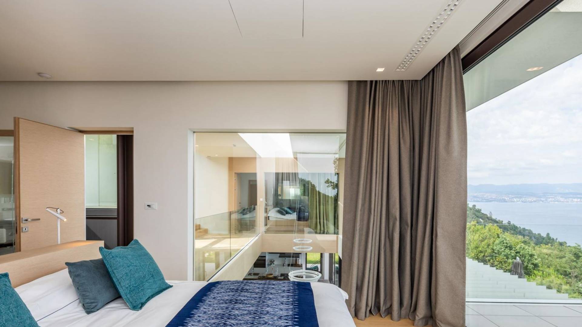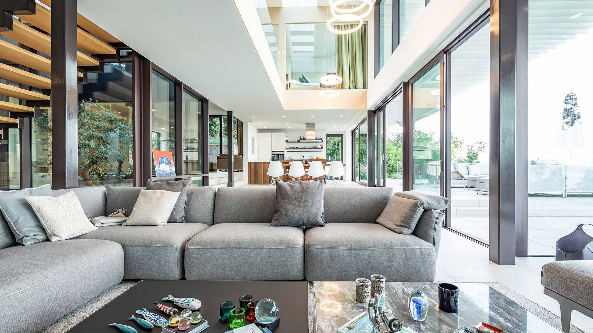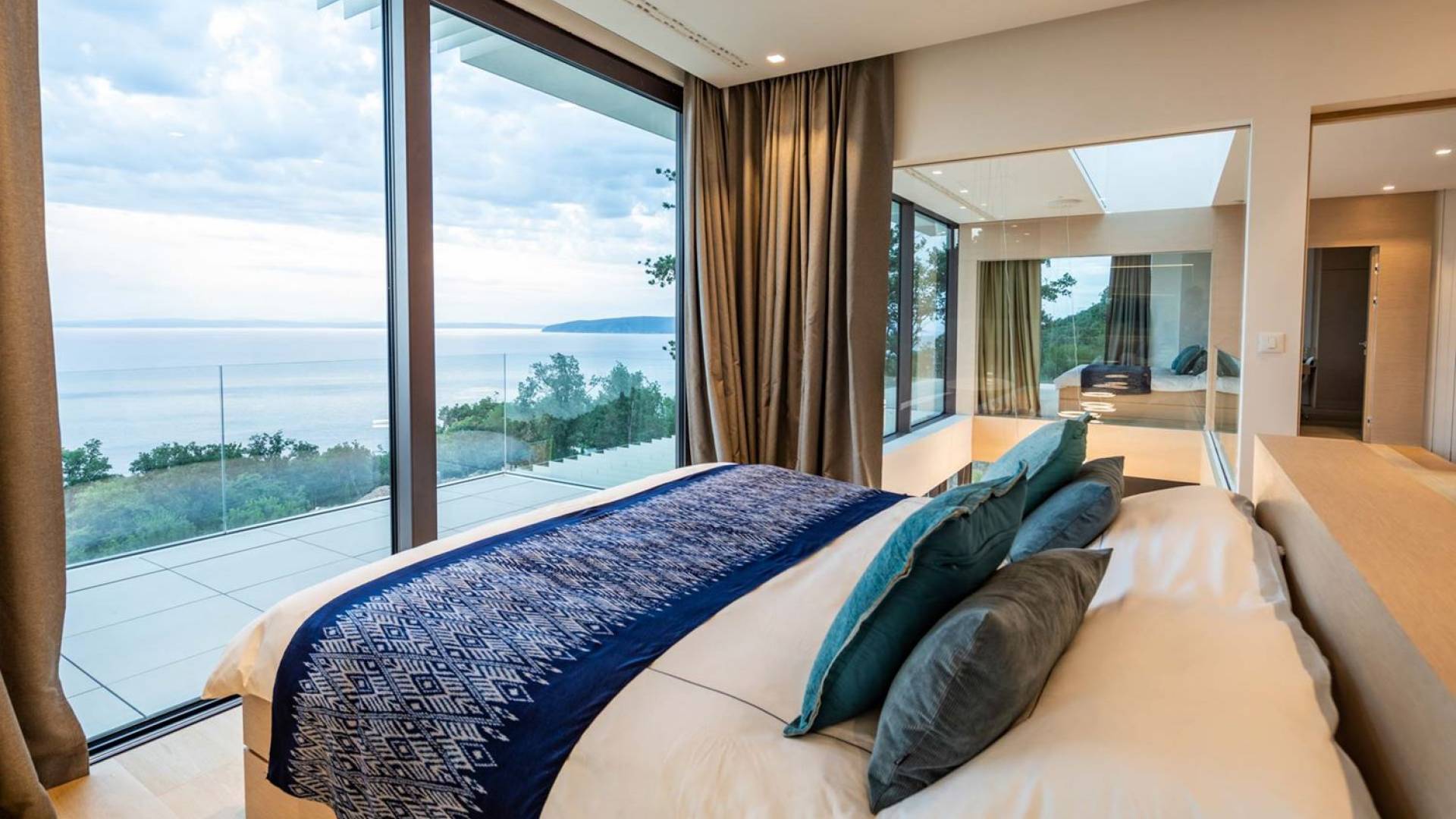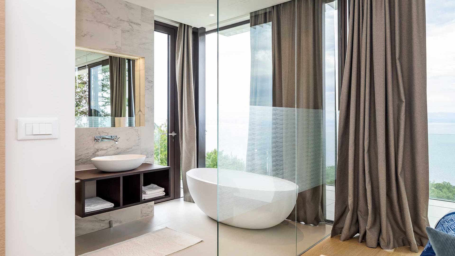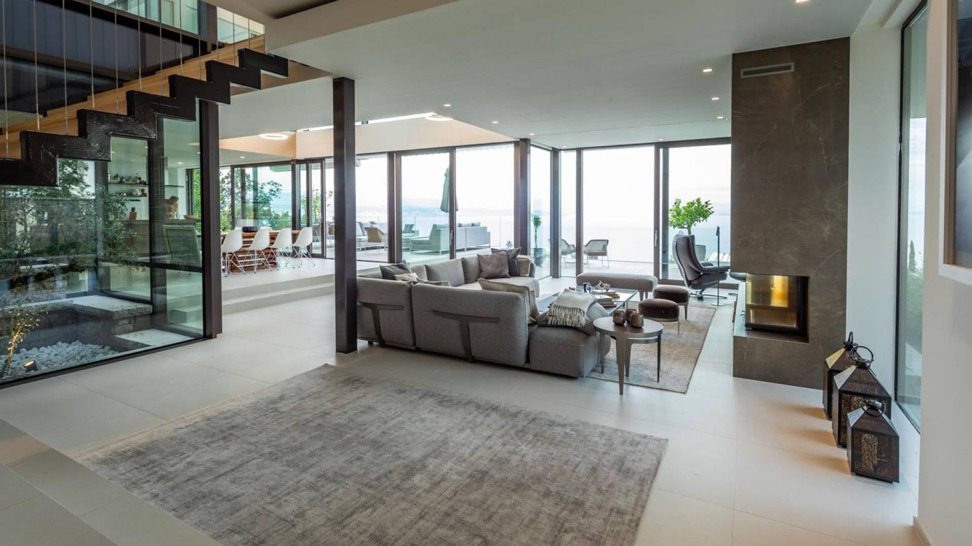 This newly built villa is a wonderful example of modern and innovative architecture; is spacious and airy, and high ceilings and glass walls give the feeling of freedom and open the view of the Kvarner islands from which you are breathtaking. Opposites, ie the islands and the Adriatic Sea on one side and the surrounding hills on the other make the Kvarner unique. And the beauty of this landscape is reflected in this villa because its unique location, architecture, and landscaping design are in complete harmony with the environment. Amidst a beautiful natural landscape, built on an elevated hillside, the villa provides a high degree of privacy and a fantastic view over the sea and the surrounding coastline. The villa with its high-quality furnishings has been integrated perfectly into the Mediterranean hillside landscape and built on multi-level terraces.