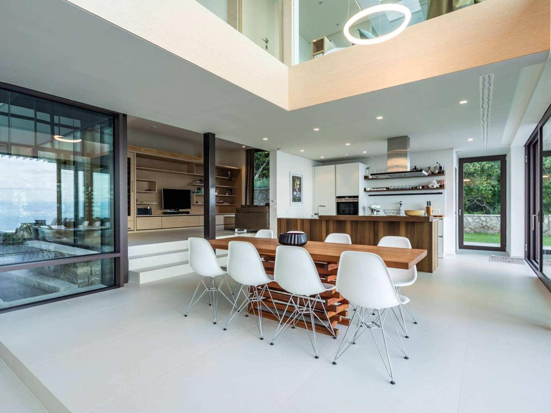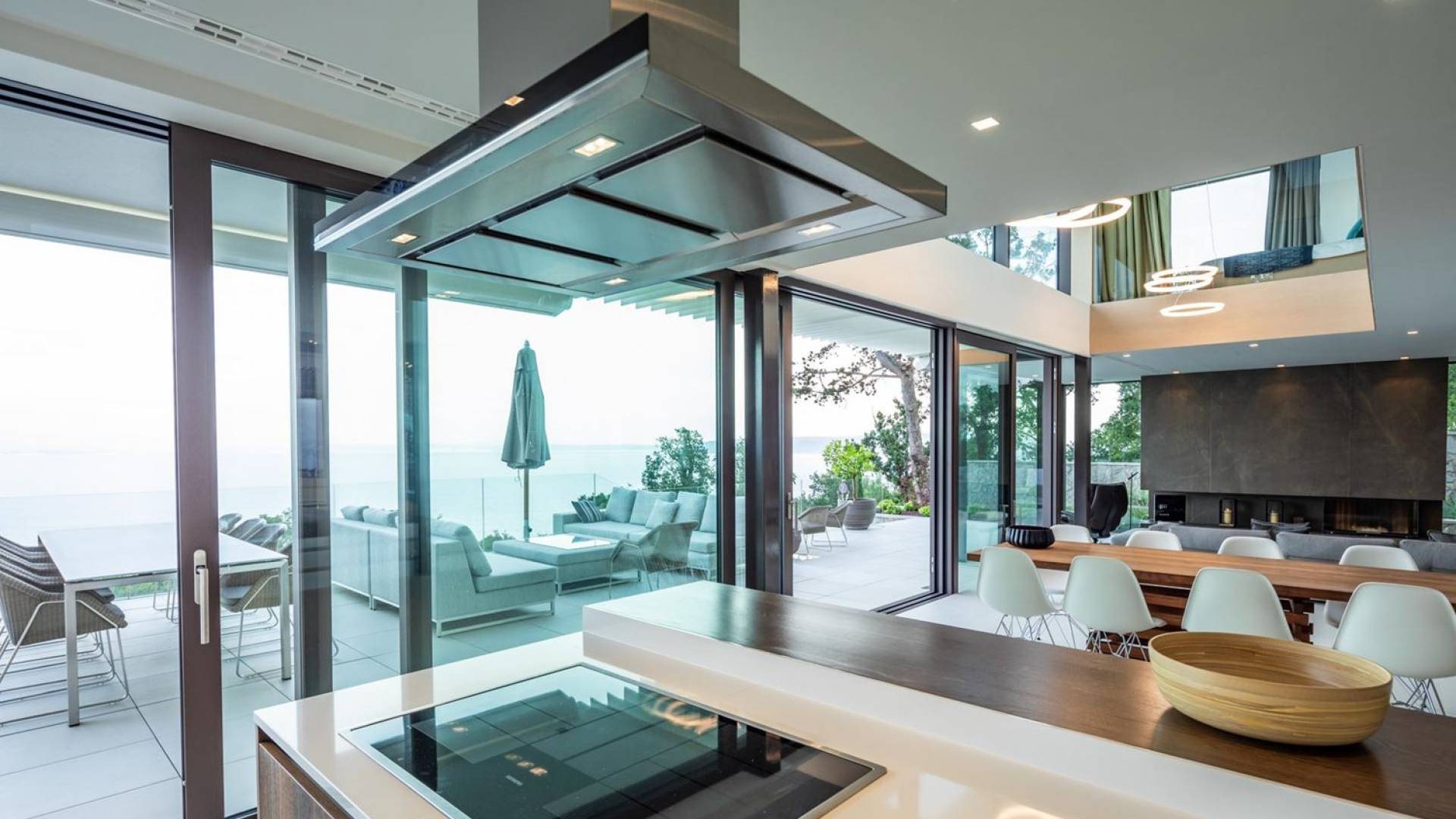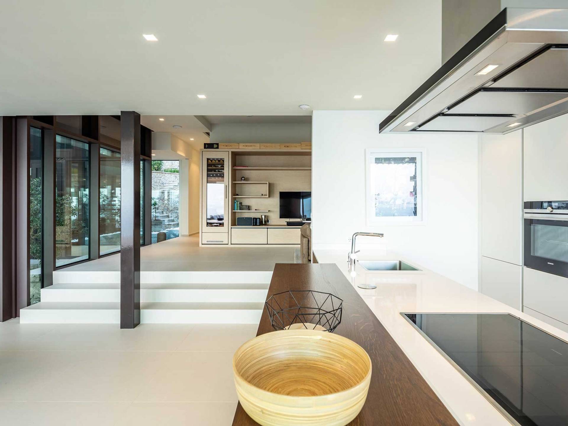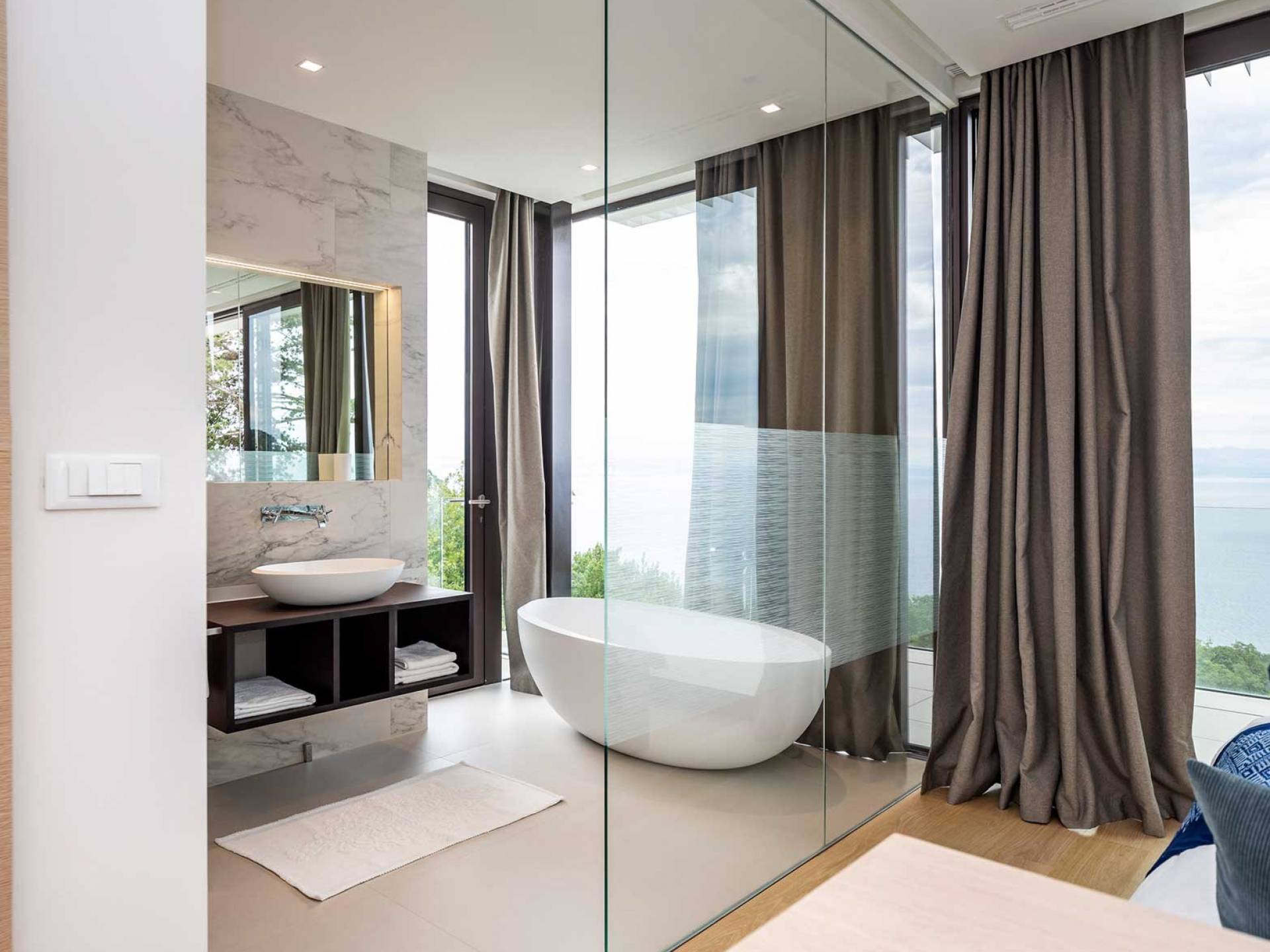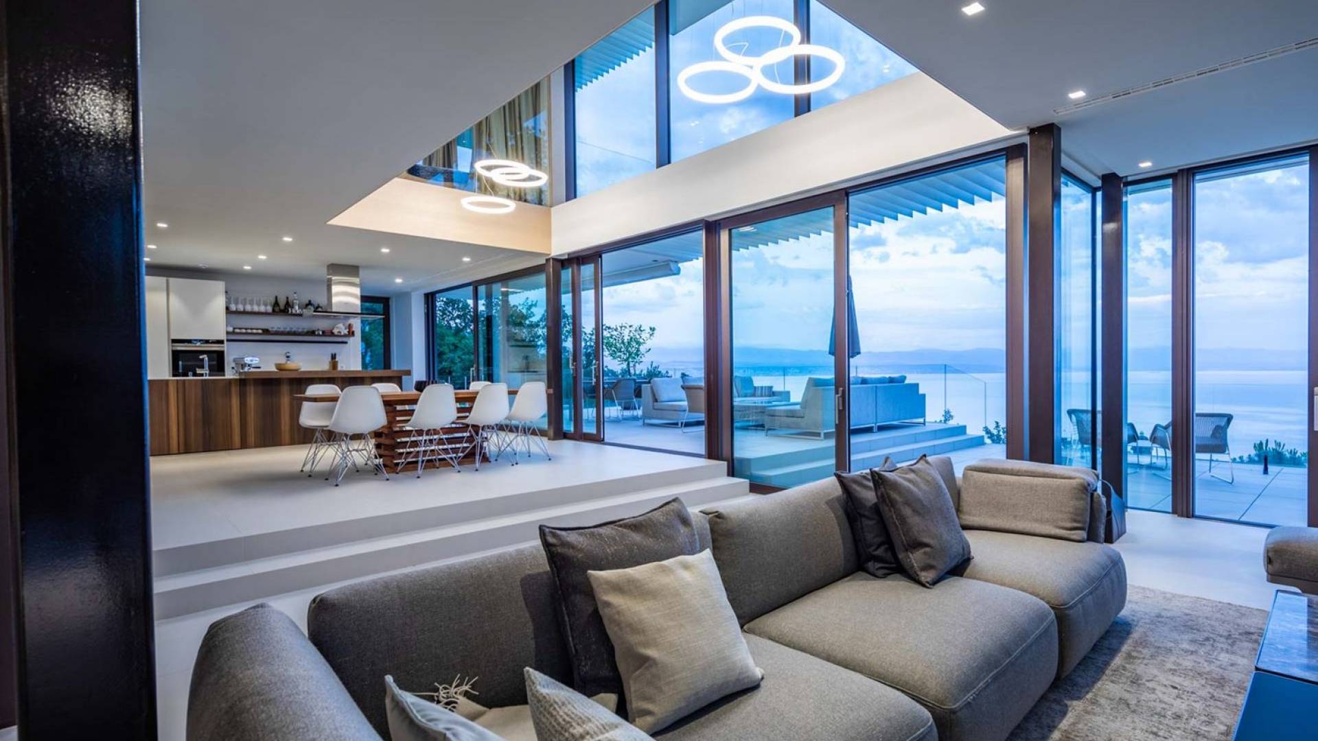 This newly built villa is a wonderful example of modern and innovative architecture; is spacious and airy, and high ceilings and glass walls give the feeling of freedom and open the view of the Kvarner islands from which you are breathtaking. Opposites, ie the islands and the Adriatic Sea on one side and the surrounding hills on the other make the Kvarner unique. And the beauty of this landscape is reflected in this villa because its unique location, architecture, and landscaping design are in complete harmony with the environment. Amidst a beautiful natural landscape, built on an elevated hillside, the villa provides a high degree of privacy and a fantastic view over the sea and the surrounding coastline. The villa with its high-quality furnishings has been integrated perfectly into the Mediterranean hillside landscape and built on multi-level terraces.