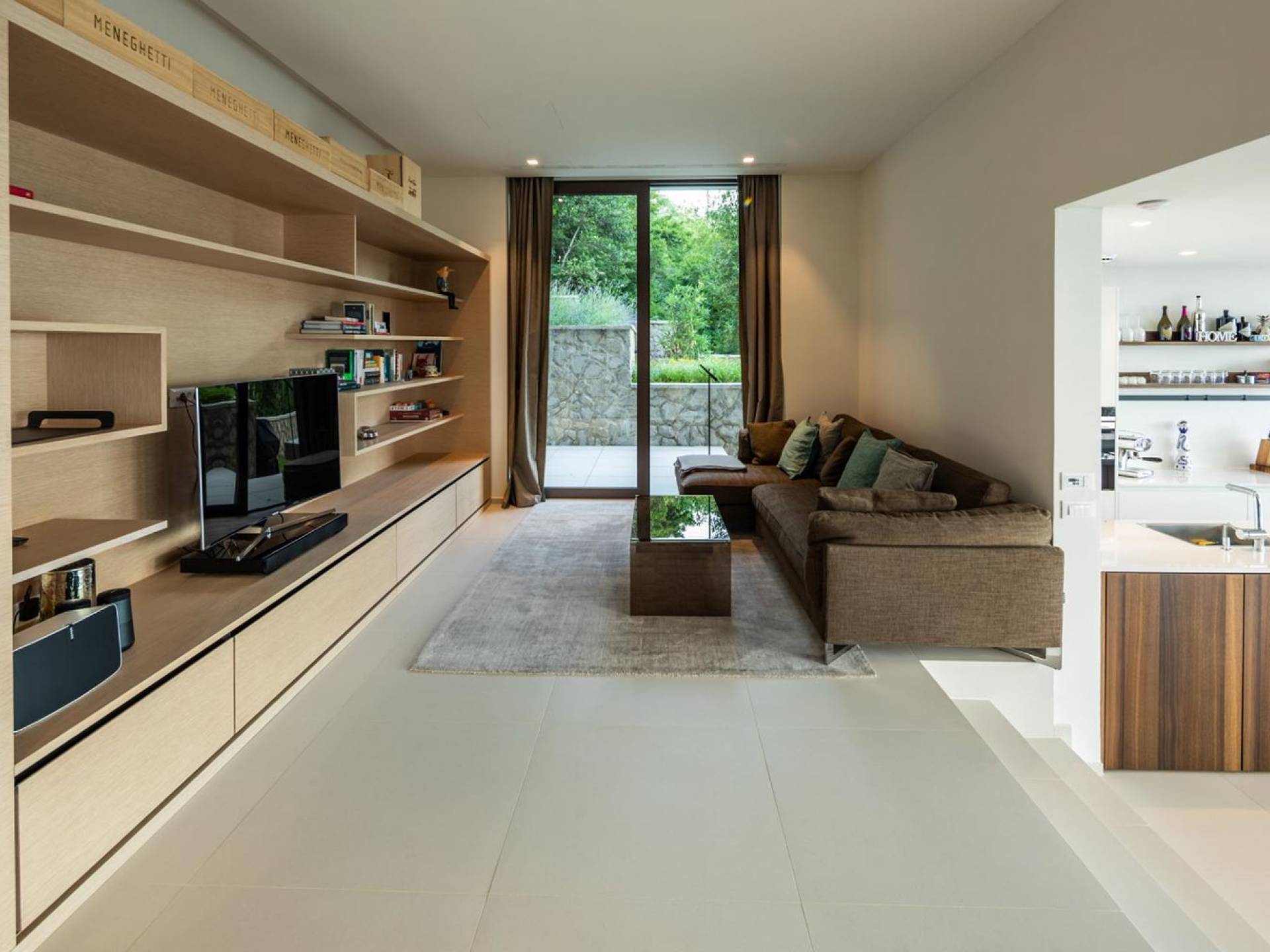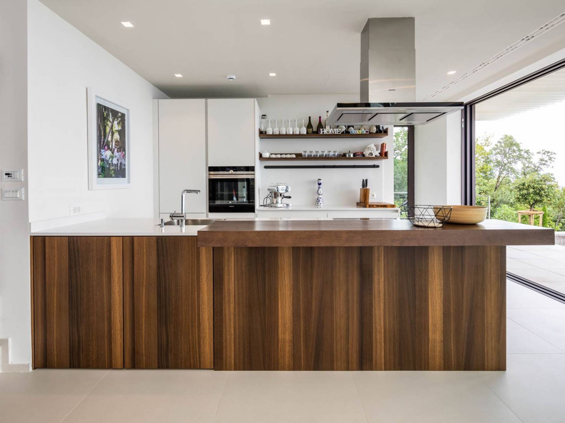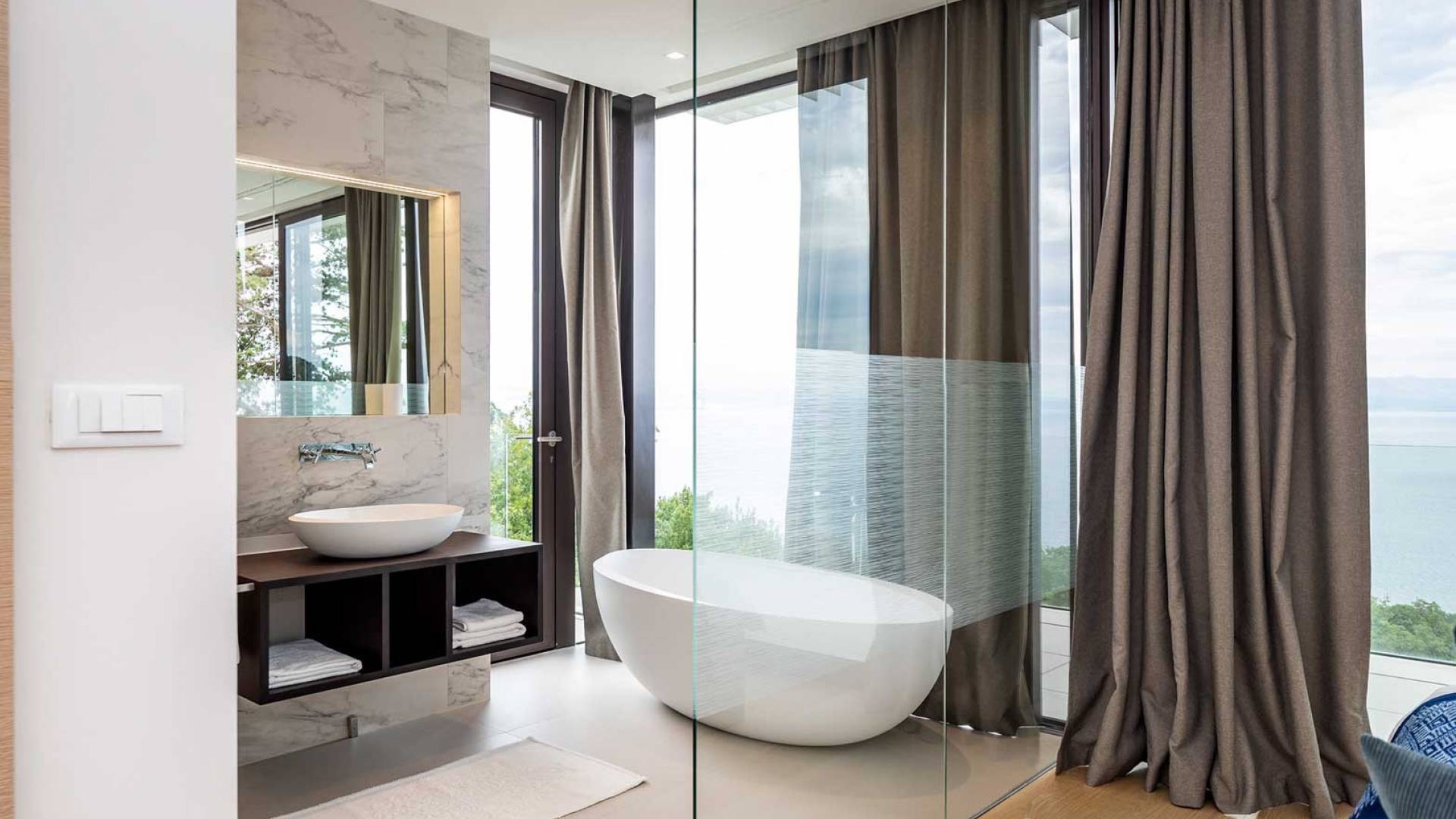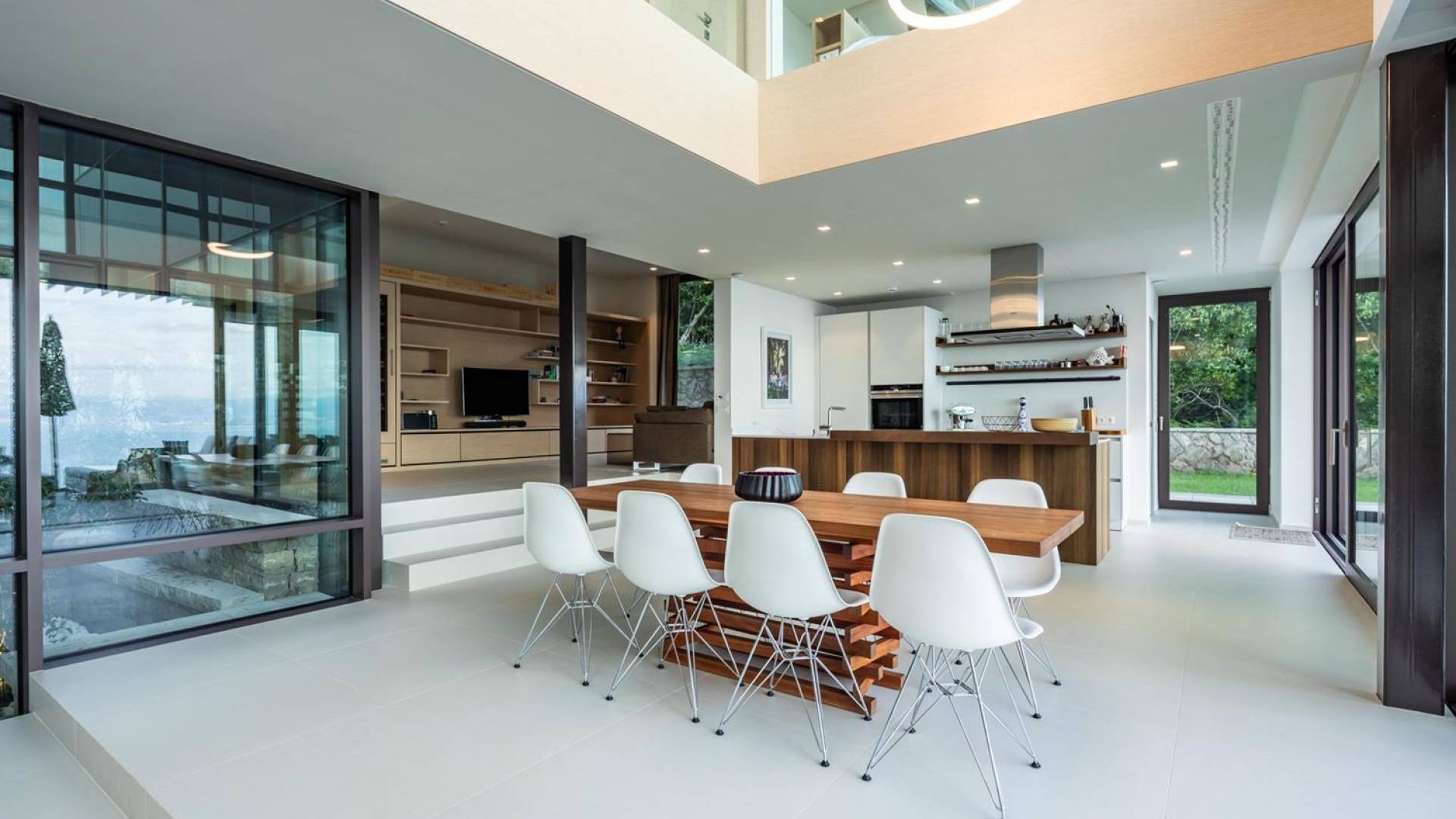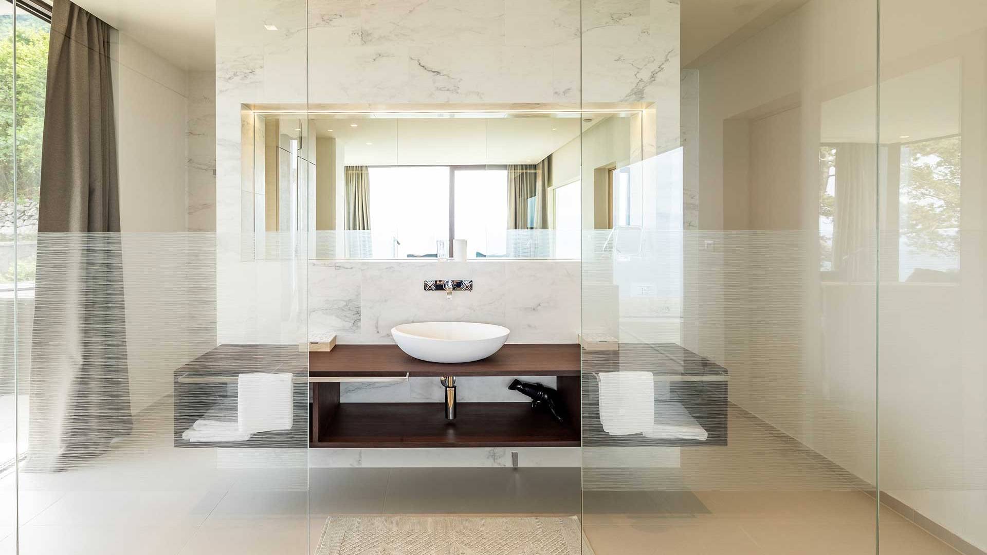 This newly built villa is a wonderful example of modern and innovative architecture; is spacious and airy, and high ceilings and glass walls give the feeling of freedom and open the view of the Kvarner islands from which you are breathtaking. Opposites, ie the islands and the Adriatic Sea on one side and the surrounding hills on the other make the Kvarner unique. And the beauty of this landscape is reflected in this villa because its unique location, architecture, and landscaping design are in complete harmony with the environment. Amidst a beautiful natural landscape, built on an elevated hillside, the villa provides a high degree of privacy and a fantastic view over the sea and the surrounding coastline. The villa with its high-quality furnishings has been integrated perfectly into the Mediterranean hillside landscape and built on multi-level terraces.