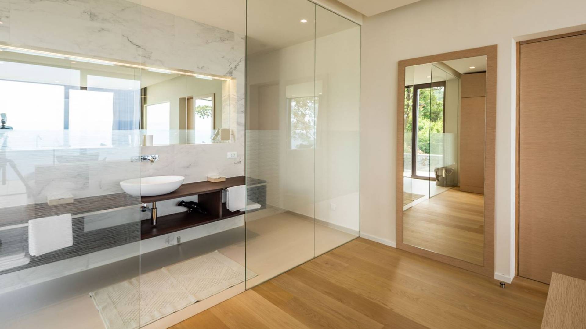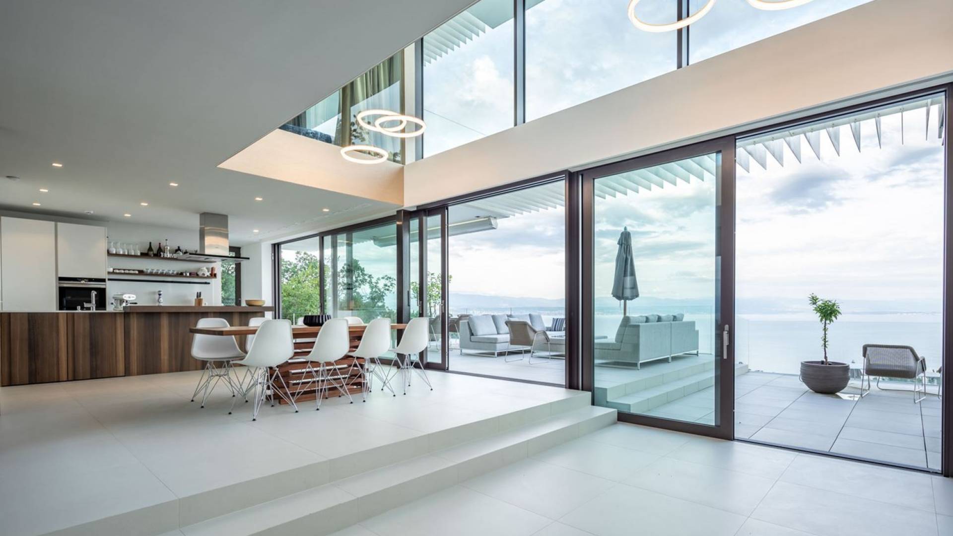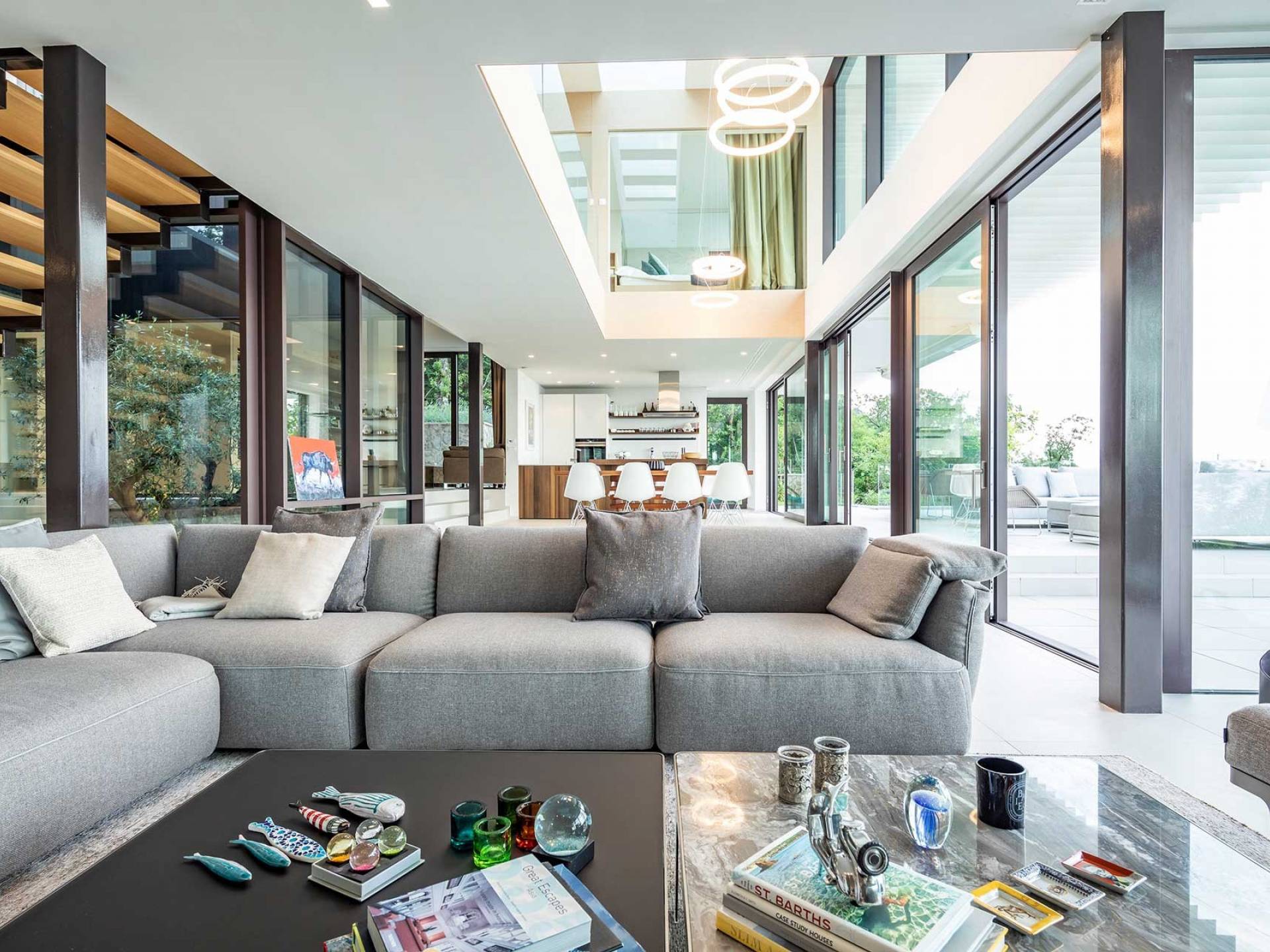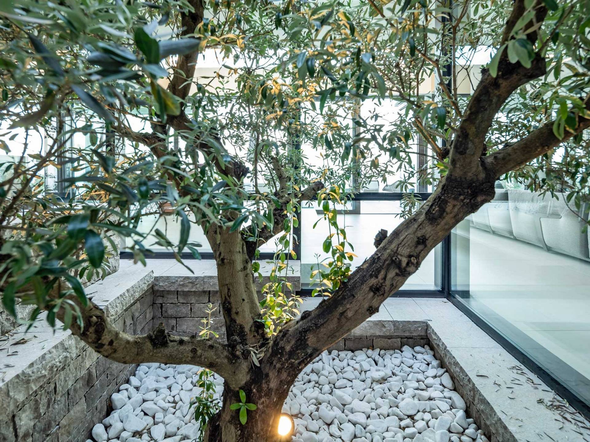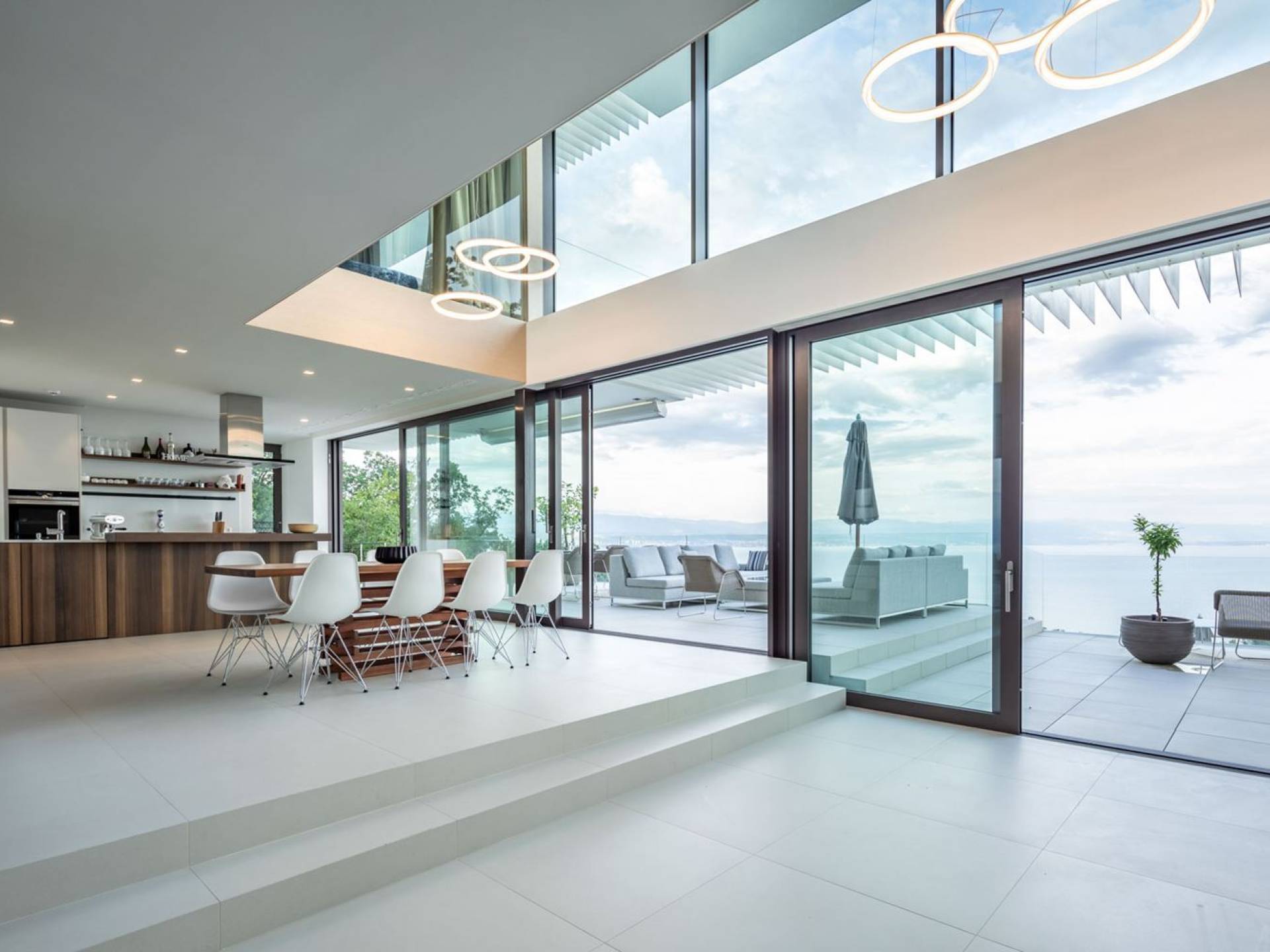 This newly built villa is a wonderful example of modern and innovative architecture; is spacious and airy, and high ceilings and glass walls give the feeling of freedom and open the view of the Kvarner islands from which you are breathtaking. Opposites, ie the islands and the Adriatic Sea on one side and the surrounding hills on the other make the Kvarner unique. And the beauty of this landscape is reflected in this villa because its unique location, architecture, and landscaping design are in complete harmony with the environment. Amidst a beautiful natural landscape, built on an elevated hillside, the villa provides a high degree of privacy and a fantastic view over the sea and the surrounding coastline. The villa with its high-quality furnishings has been integrated perfectly into the Mediterranean hillside landscape and built on multi-level terraces.